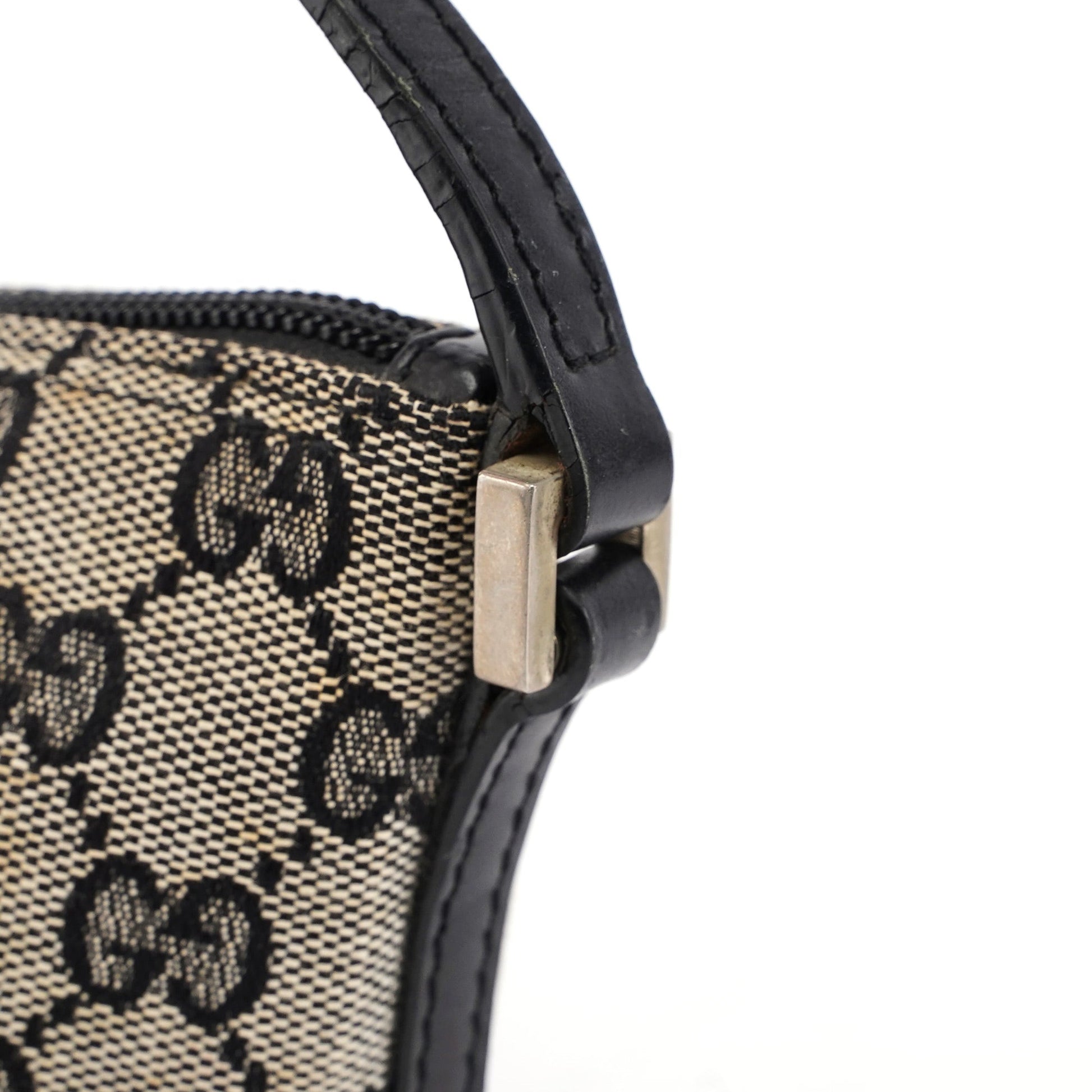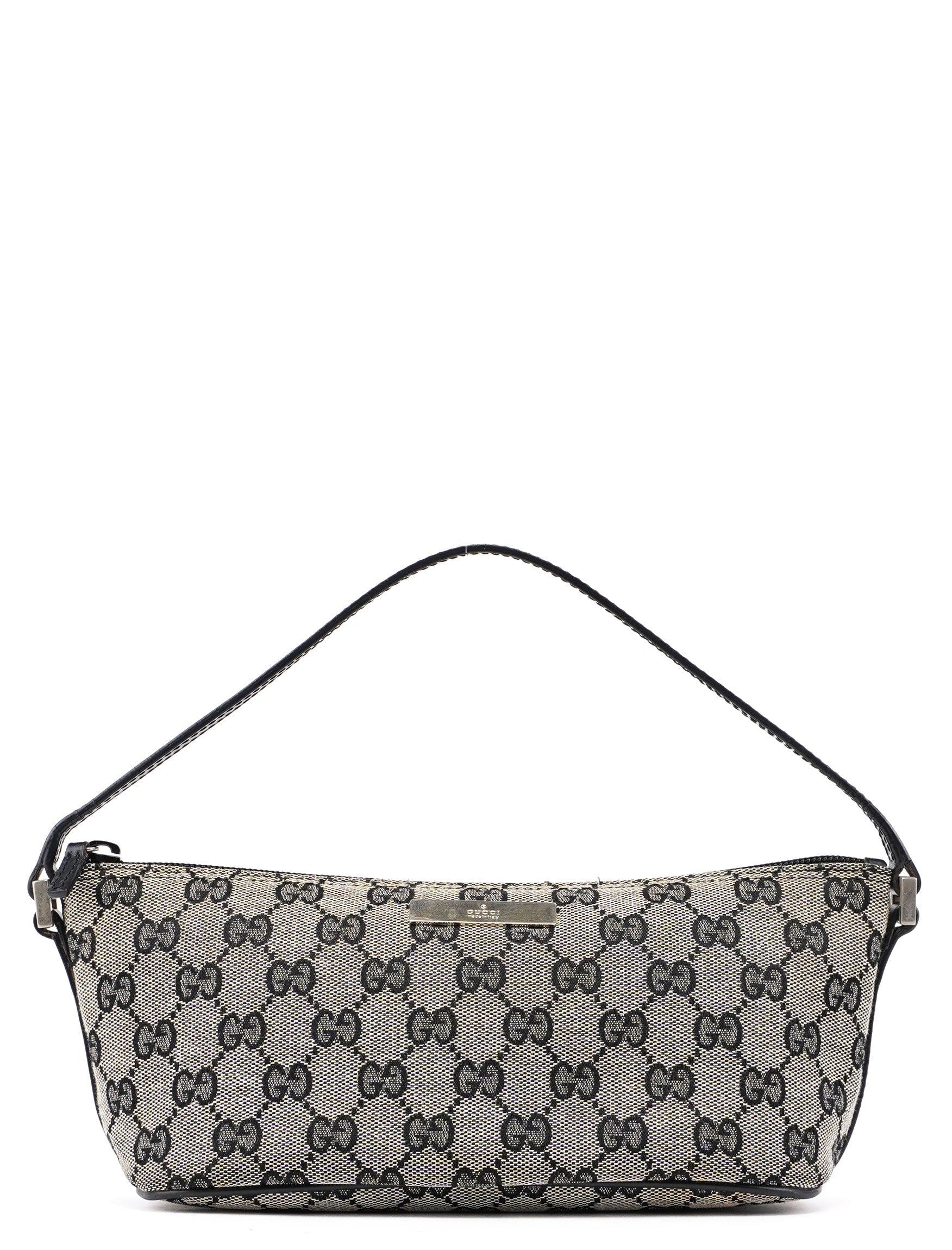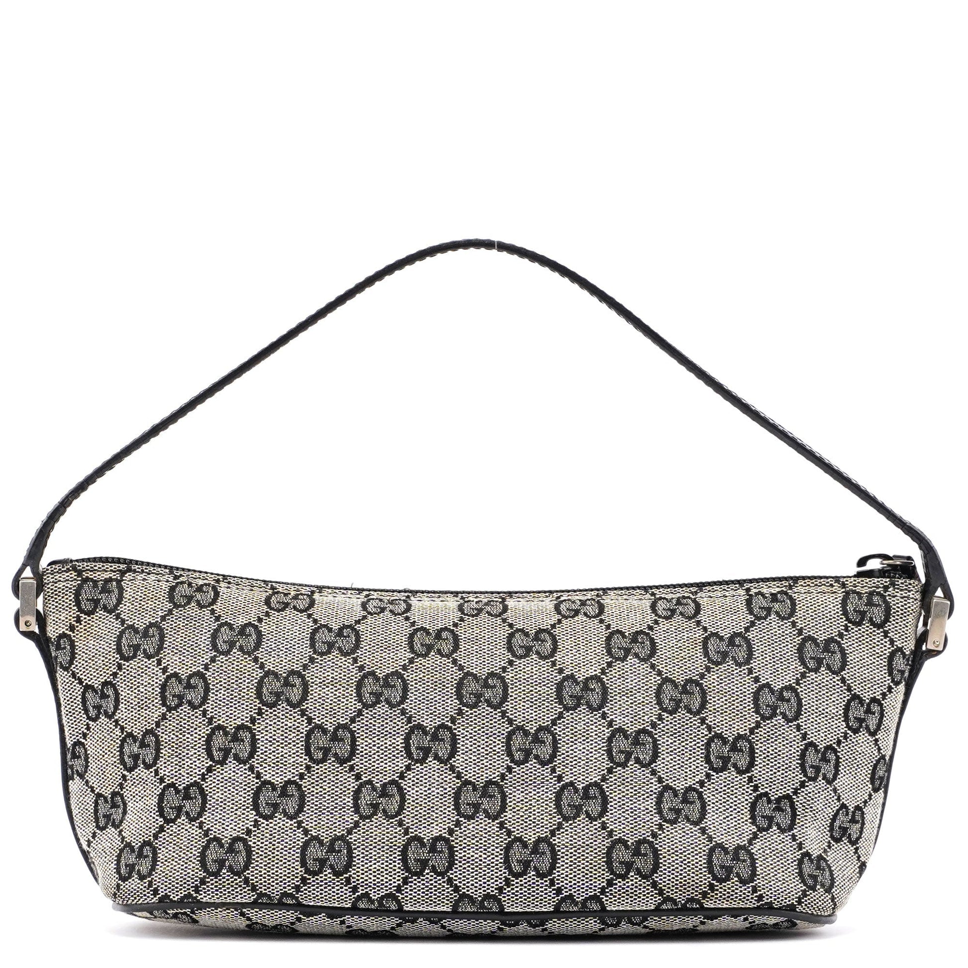 Explore timeless elegance with the Gucci GG Boat Pochette by Tom Ford, circa late 1990s. This exquisite piece combines grey GG monogram with black leather trim and silver-tone hardware. Its secure zip closure and satin-lined interior offer luxury and practicality, while the subtle Gucci plaque adds a touch of heritage.