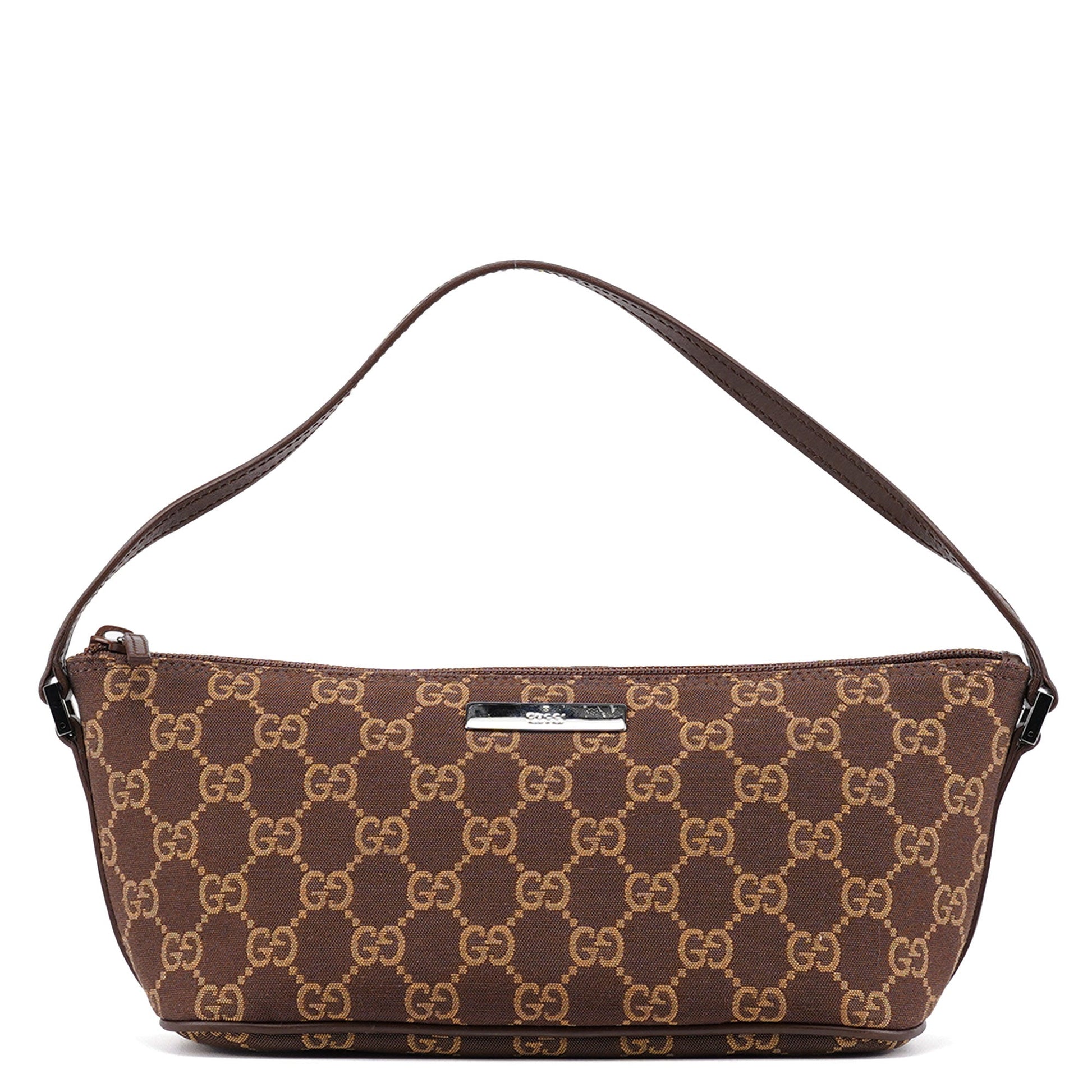 Explore timeless elegance with the Gucci GG Boat Pochette by Tom Ford, circa late 1990s. This exquisite piece combines brown GG monogram with tonal leather trim and silver-tone hardware. Its secure zip closure and satin-lined interior offer luxury and practicality, while the subtle Gucci plaque adds a touch of heritage.