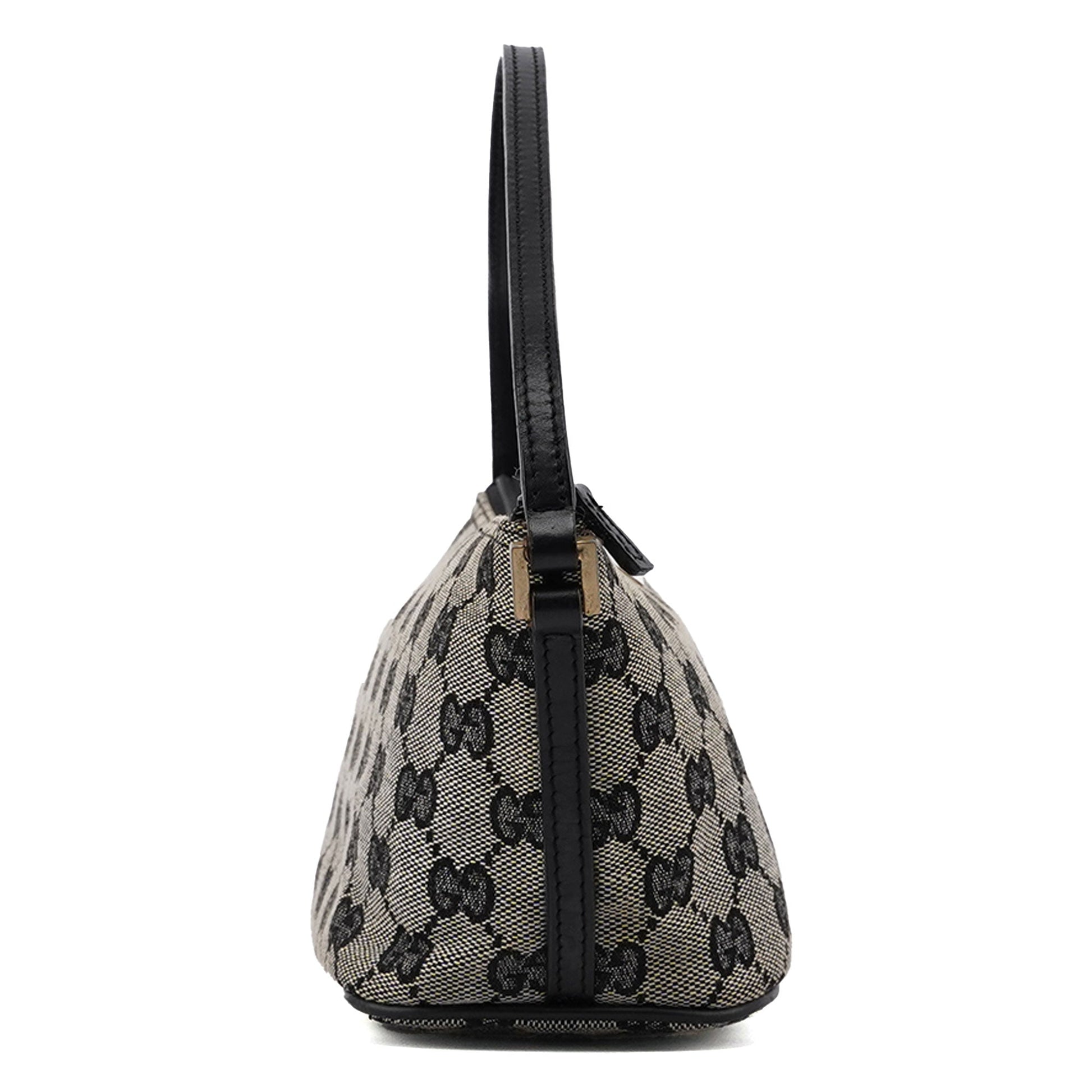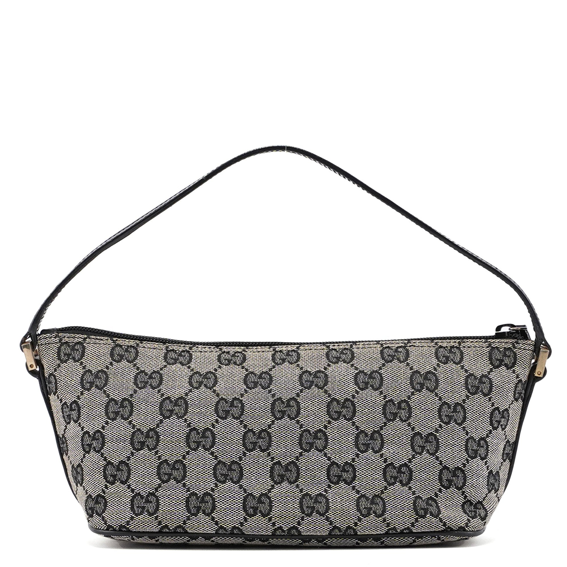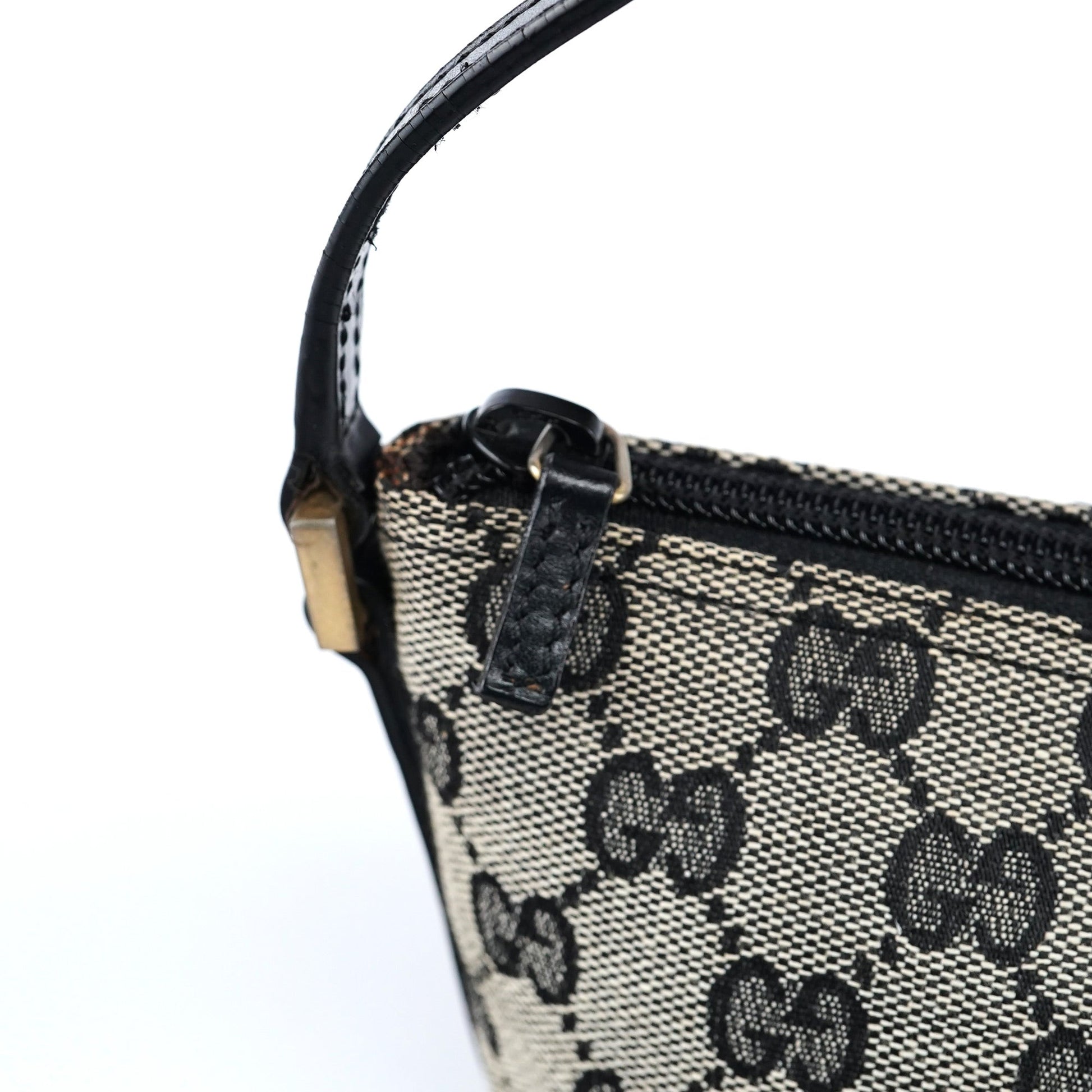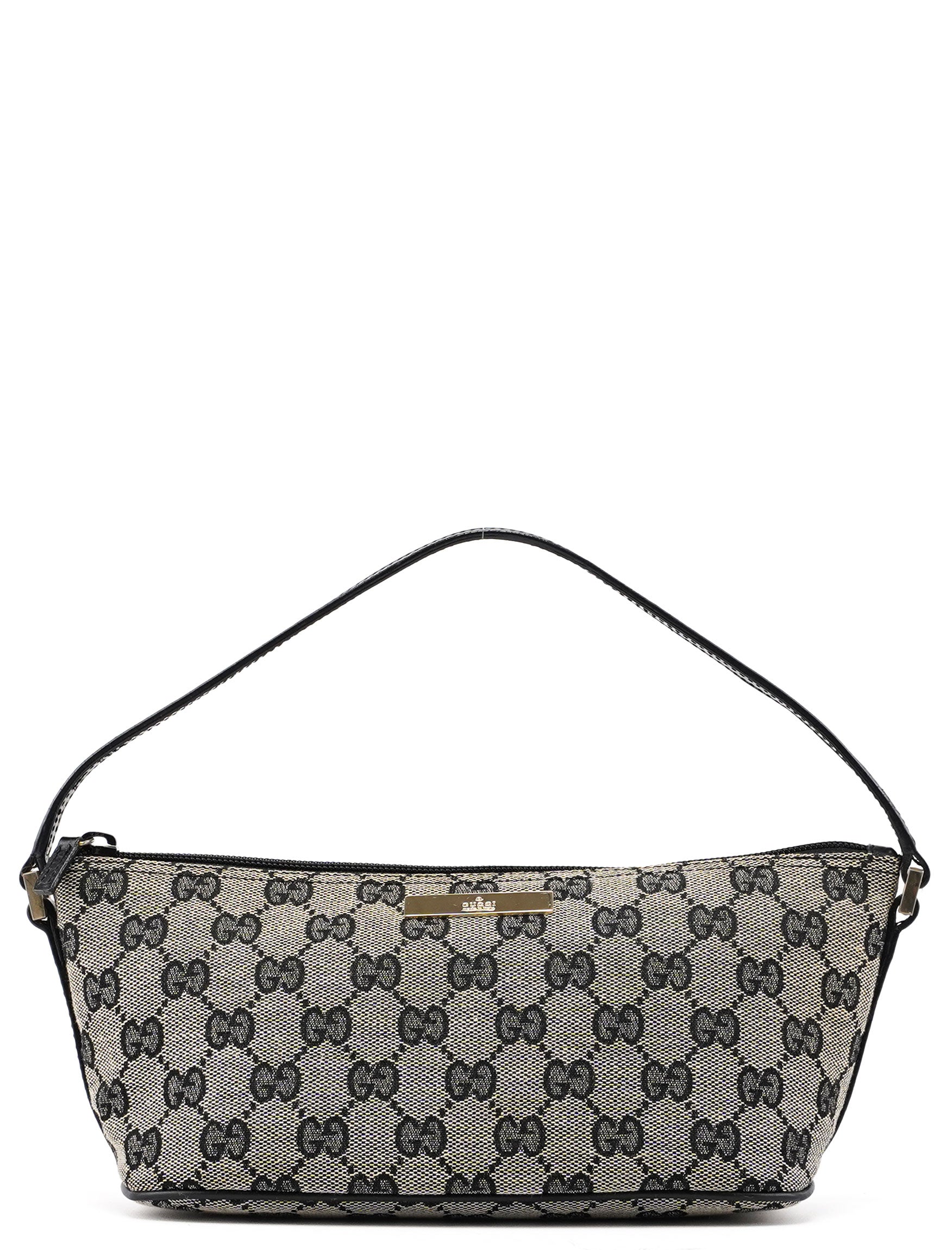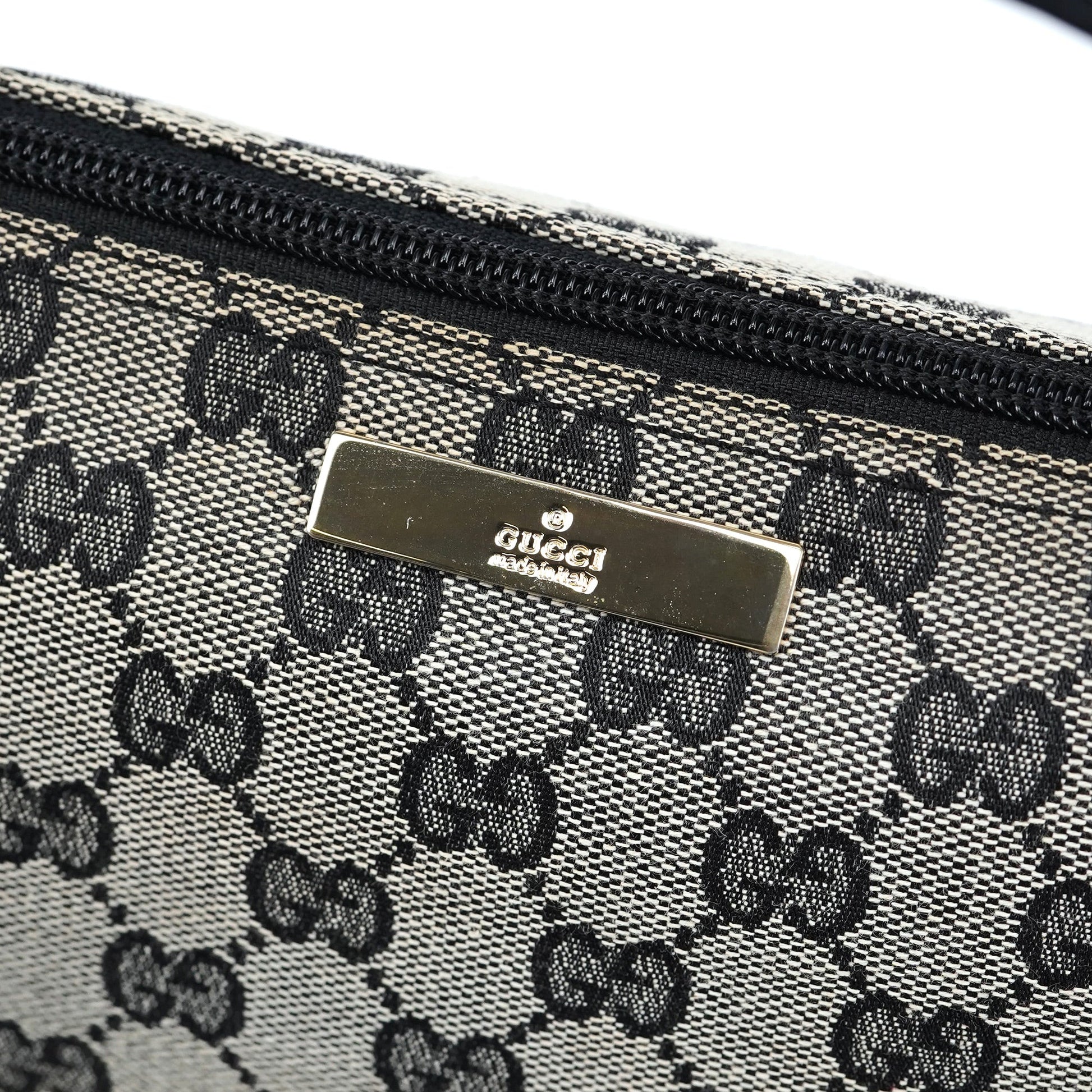 Explore timeless elegance with the Gucci GG Boat Pochette by Tom Ford, circa late 1990s. This exquisite piece combines grey GG monogram with black leather trim and silver-tone hardware. Its secure zip closure and satin-lined interior offer luxury and practicality, while the subtle Gucci plaque adds a touch of heritage.