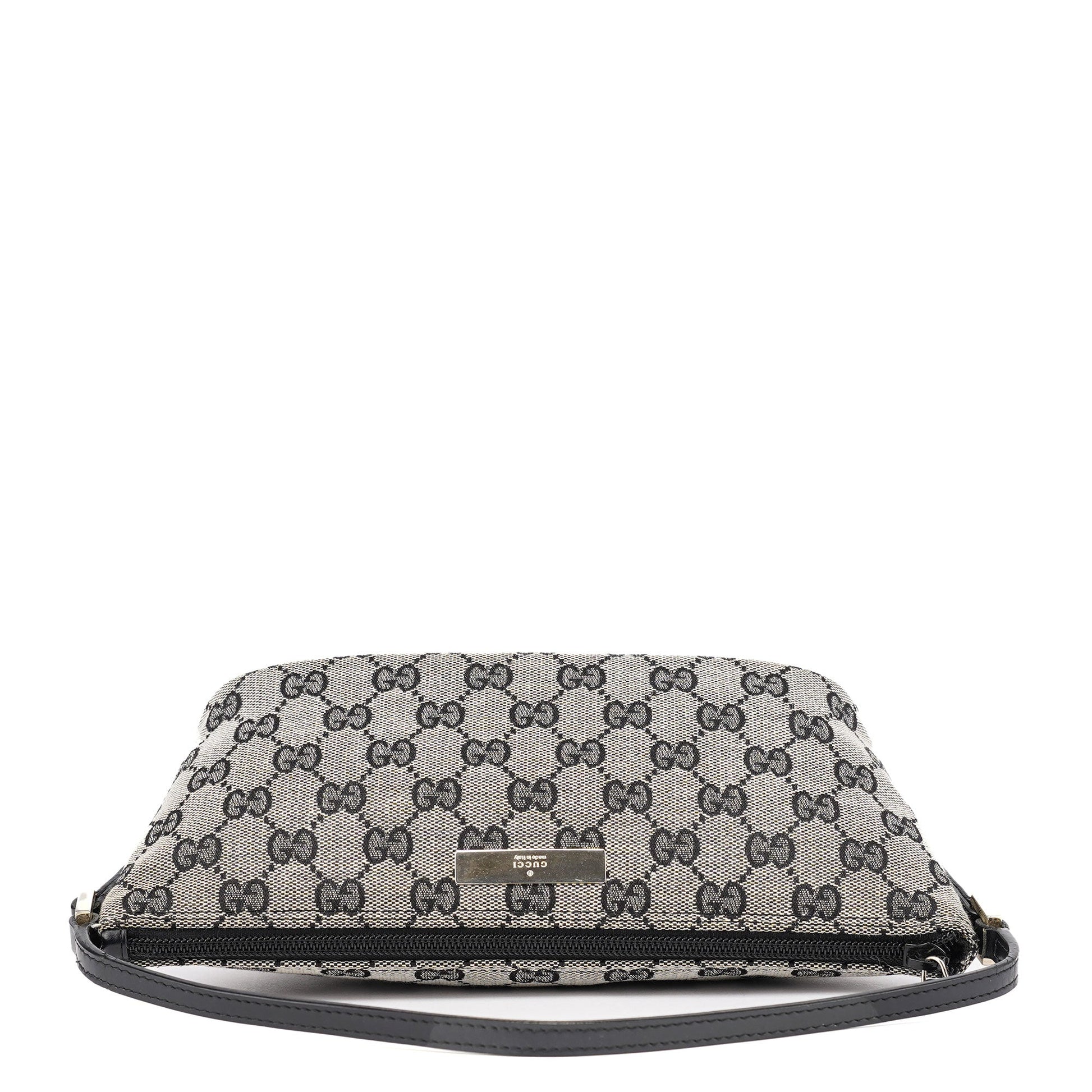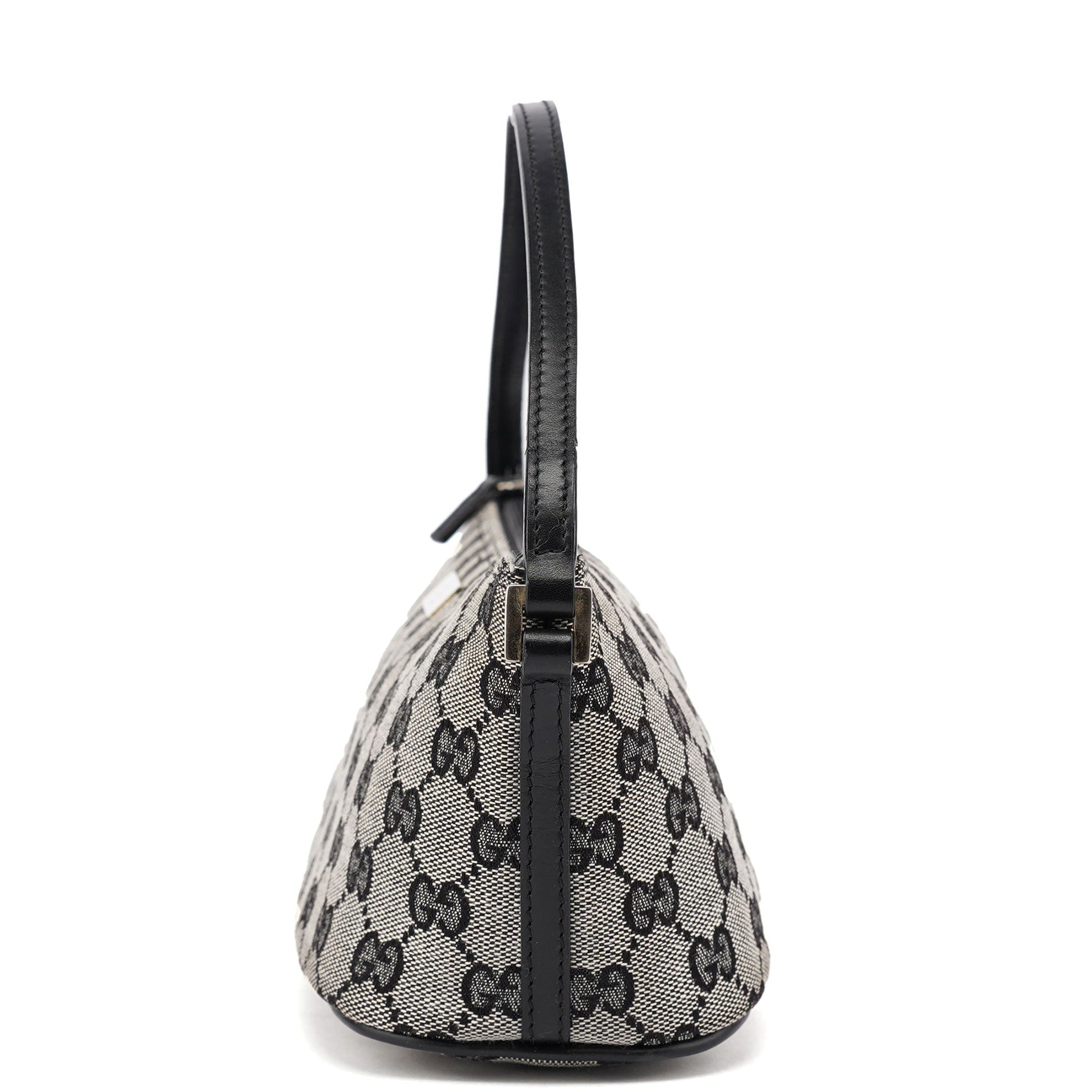 Explore timeless elegance with the Gucci GG Boat Pochette by Tom Ford, circa late 1990s. This exquisite piece combines grey GG monogram with black leather trim and silver-tone hardware. Its secure zip closure and satin-lined interior offer luxury and practicality, while the subtle Gucci plaque adds a touch of heritage.