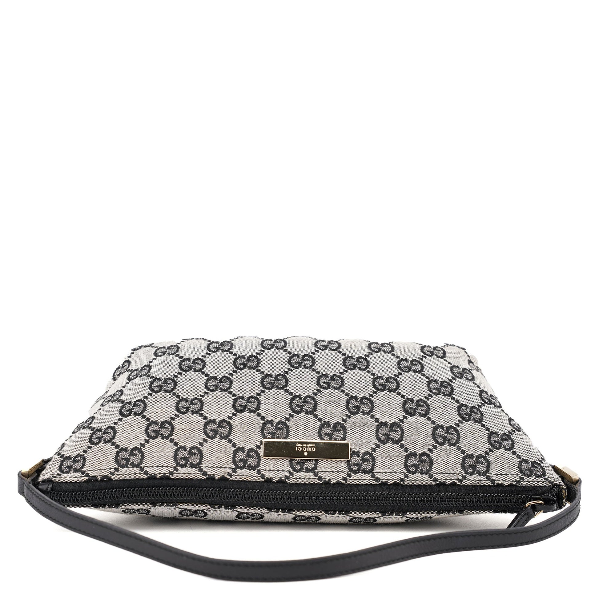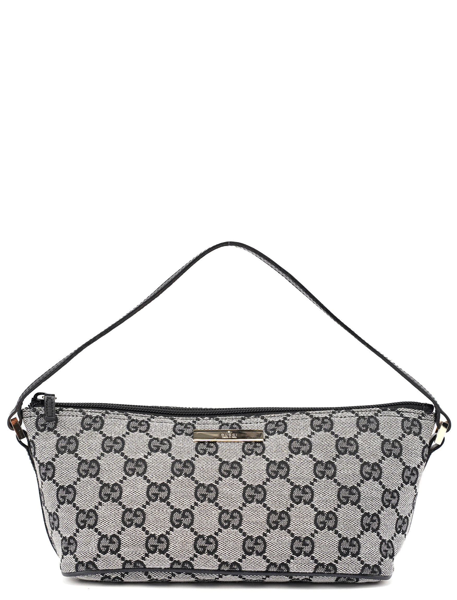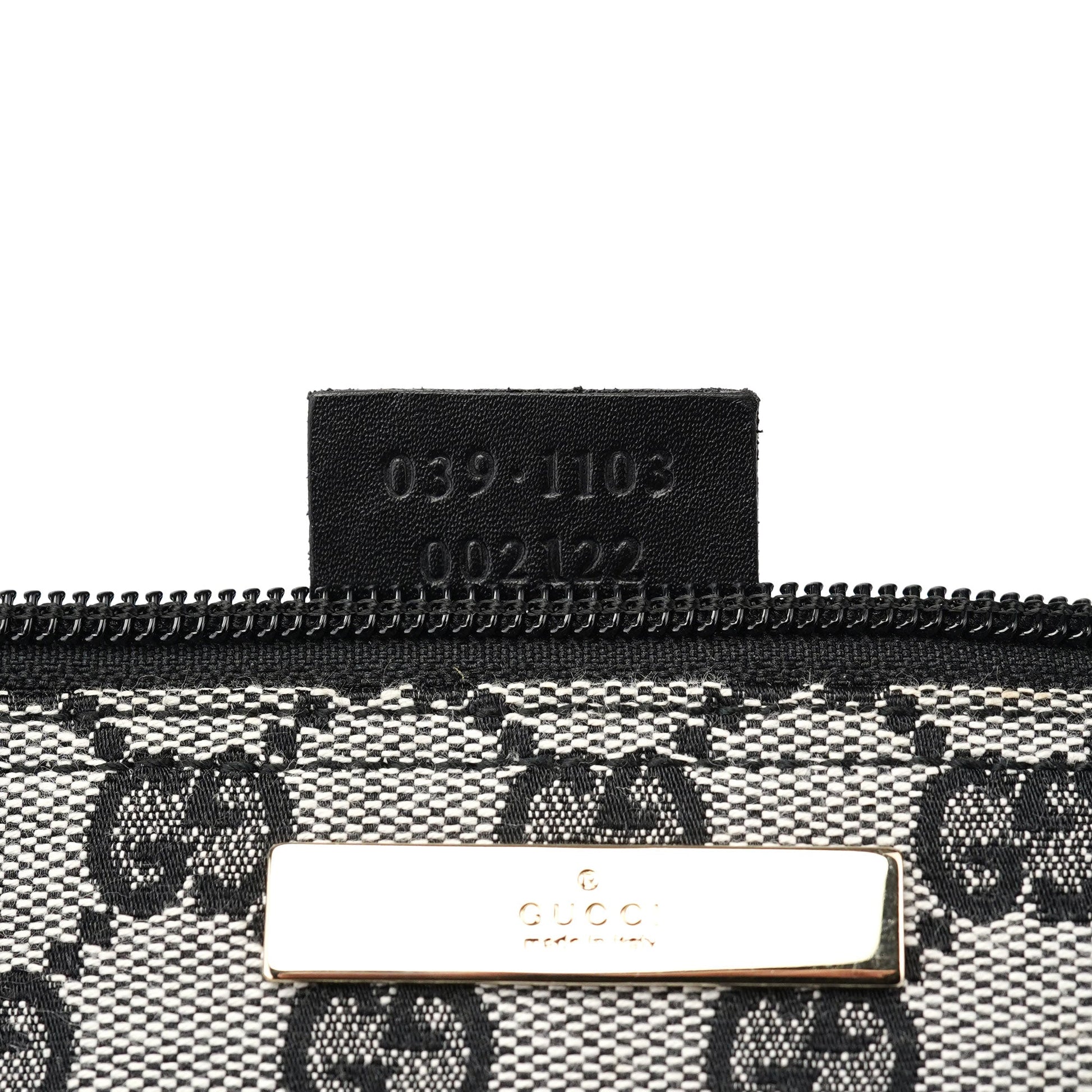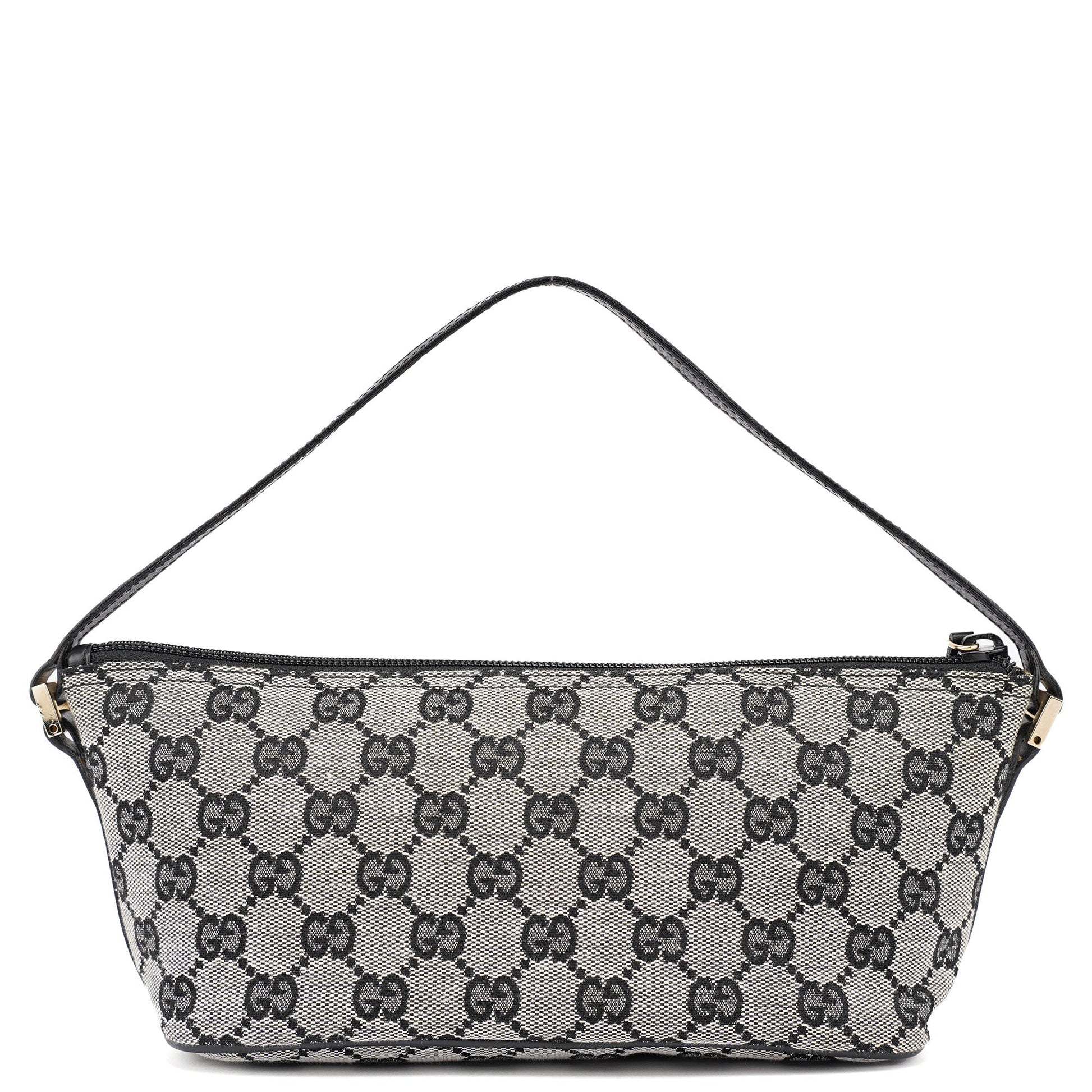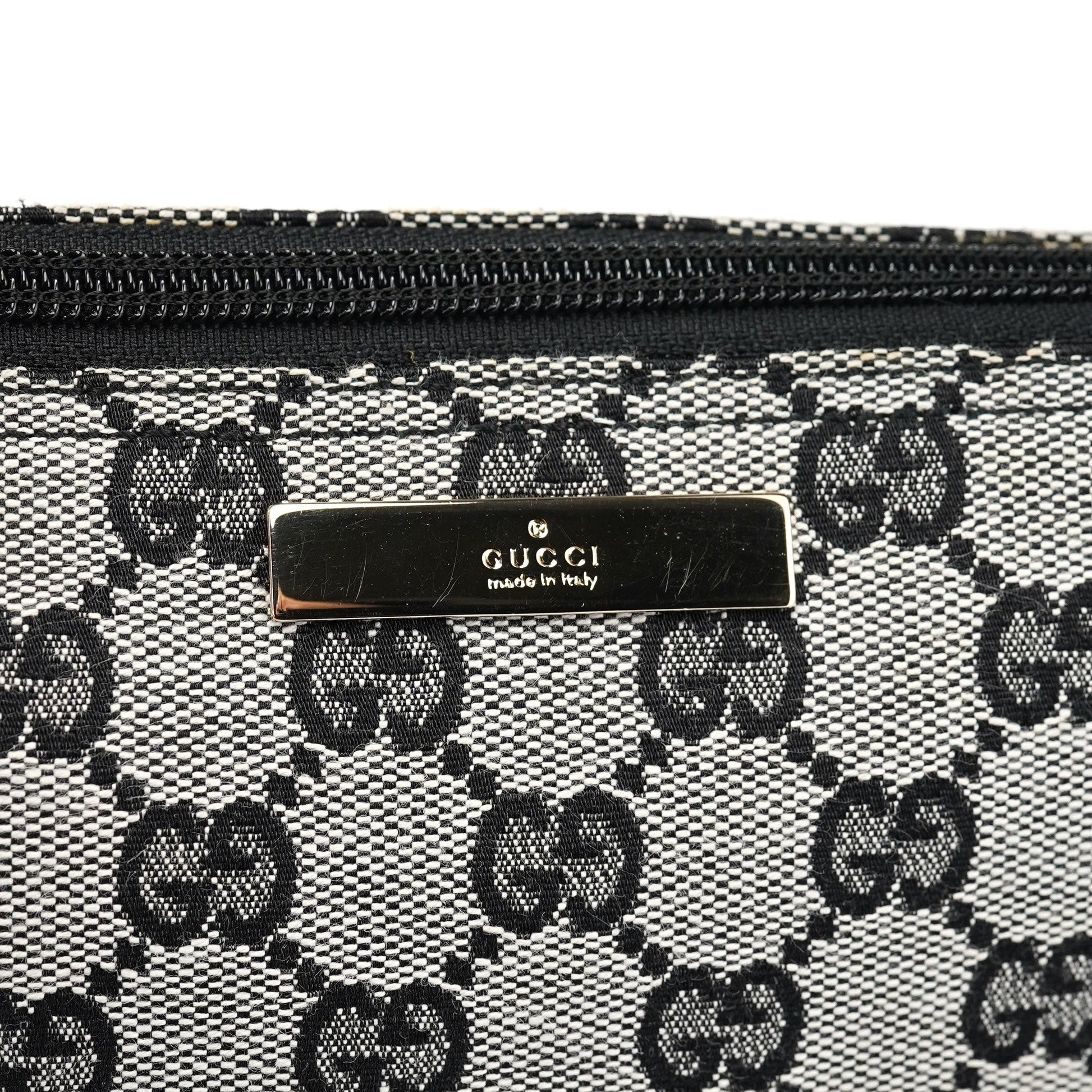 Explore timeless elegance with the Gucci GG Boat Pochette by Tom Ford, circa late 1990s. This exquisite piece combines grey GG monogram with black leather trim and silver-tone hardware. Its secure zip closure and satin-lined interior offer luxury and practicality, while the subtle Gucci plaque adds a touch of heritage.