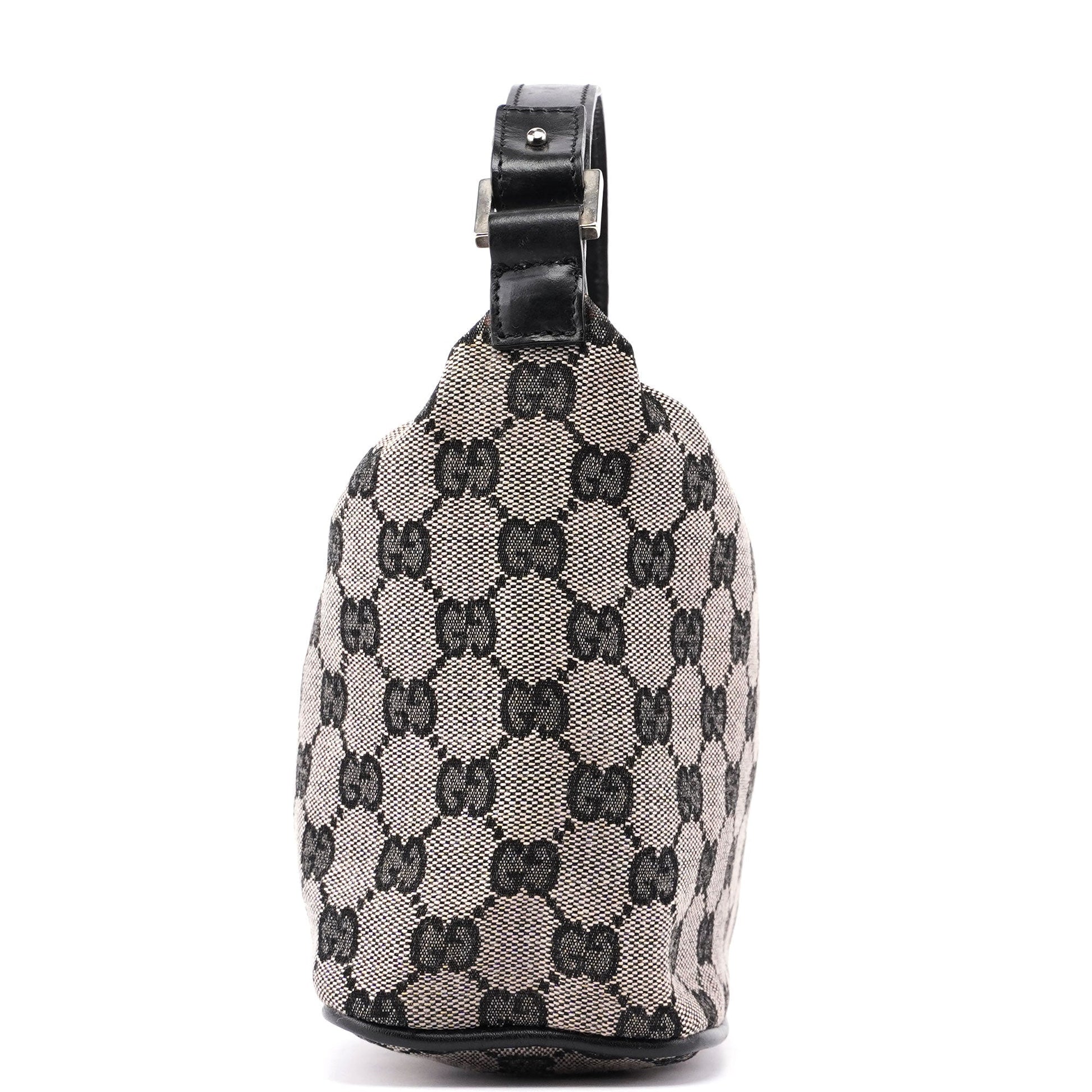 Designed by Tom Ford in the late 1990's, this Gucci GG shoulder bag is crafted from the iconic beige GG monogram canvas with black leather trim. Its silver-tone hardware adds a touch of elegance, while the satin-lined interior features a convenient pocket for organization.