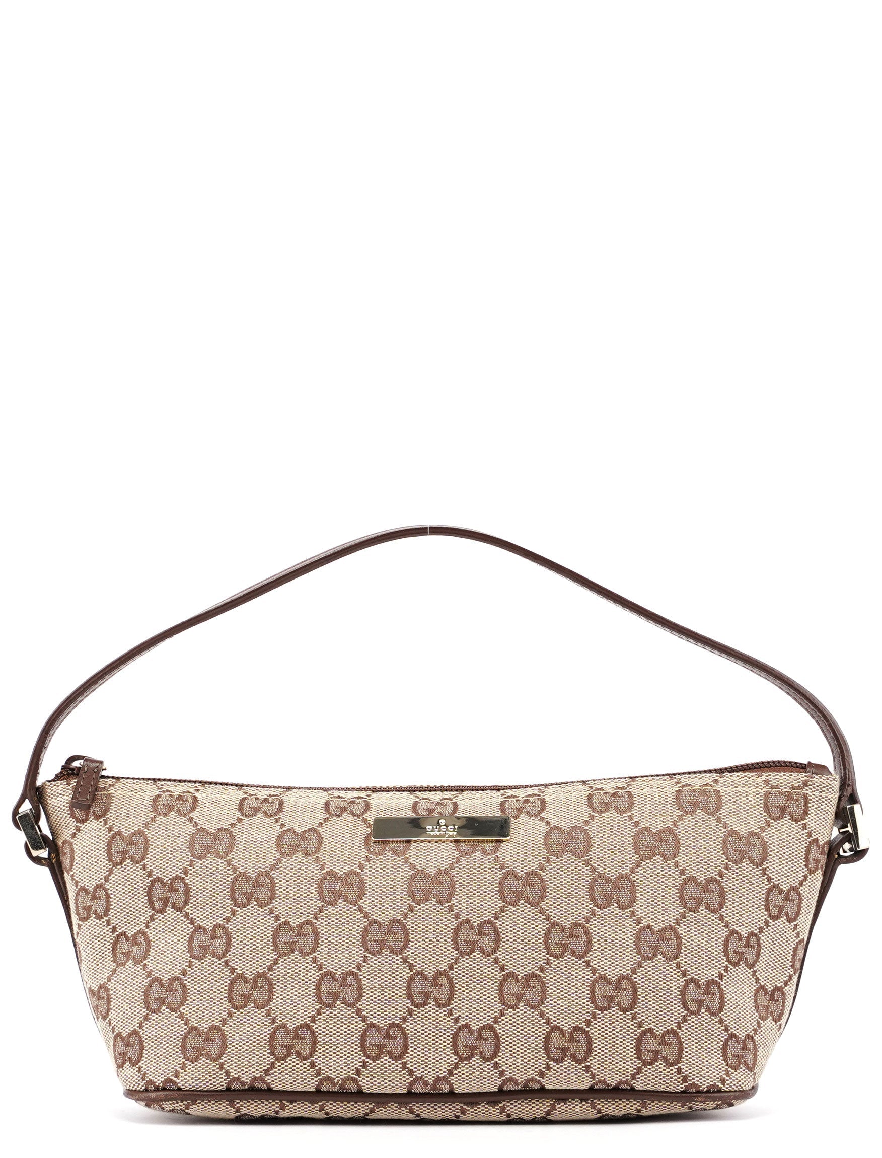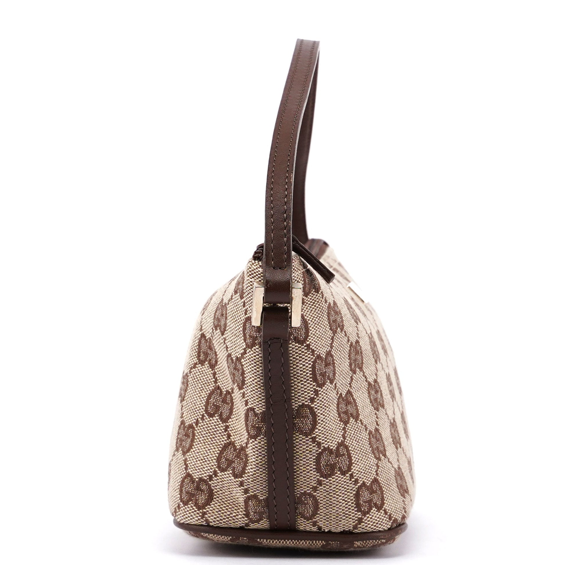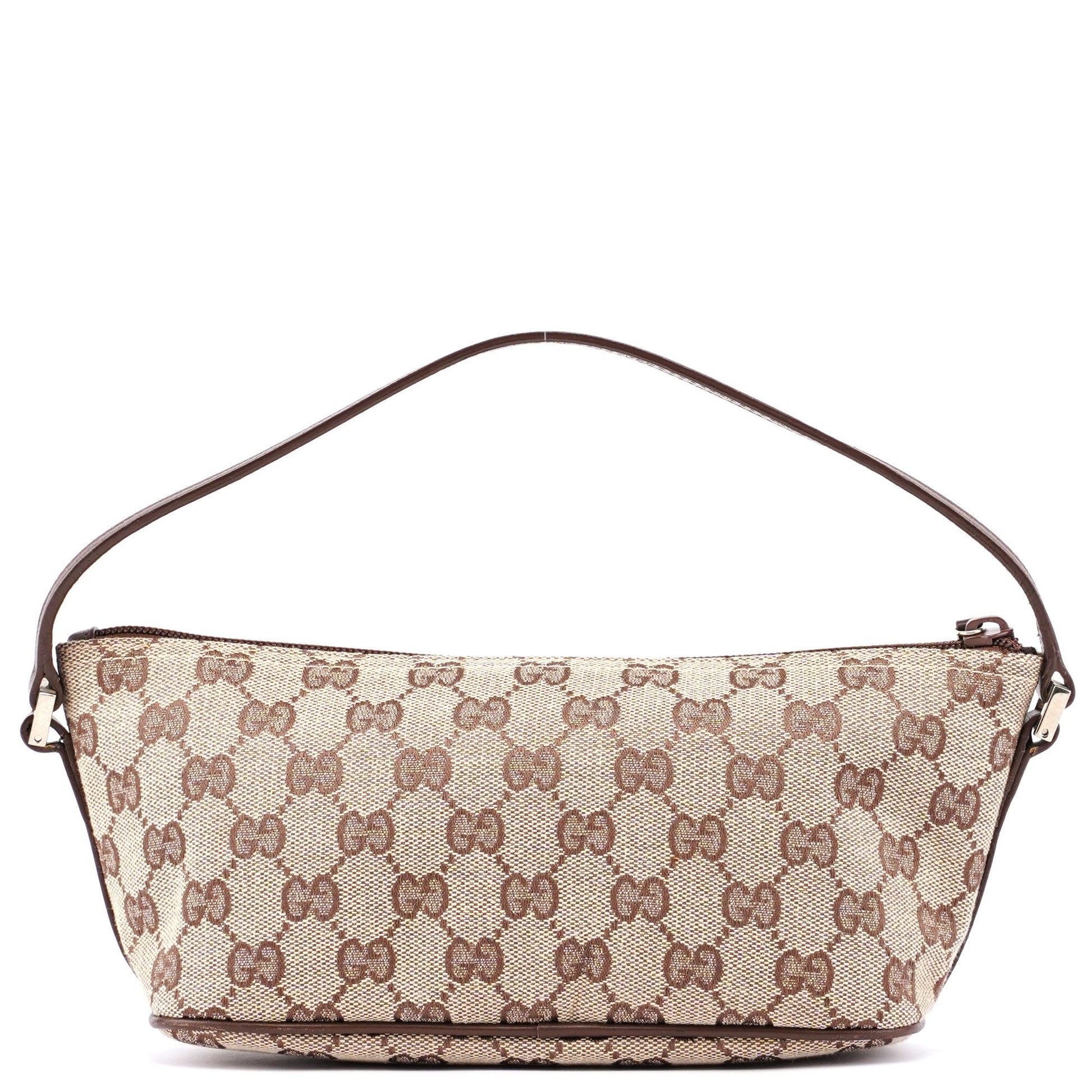 Explore timeless elegance with the Gucci GG Boat Pochette by Tom Ford, circa late 1990s. This exquisite piece combines beige GG canvas with brown leather trim and silver-tone hardware. Its secure zip closure and satin-lined interior offer luxury and practicality, while the subtle Gucci plaque adds a touch of heritage. A perfect blend of vintage charm and sophistication.