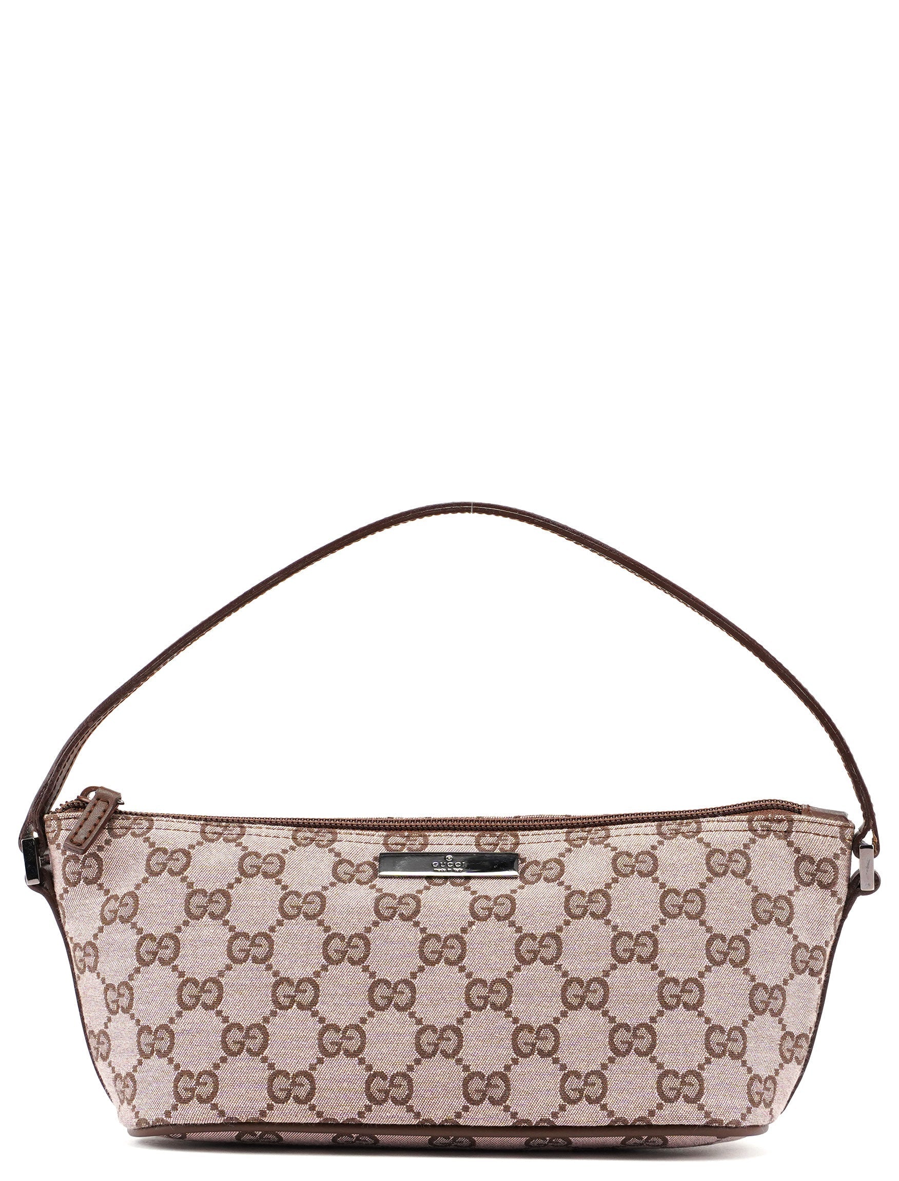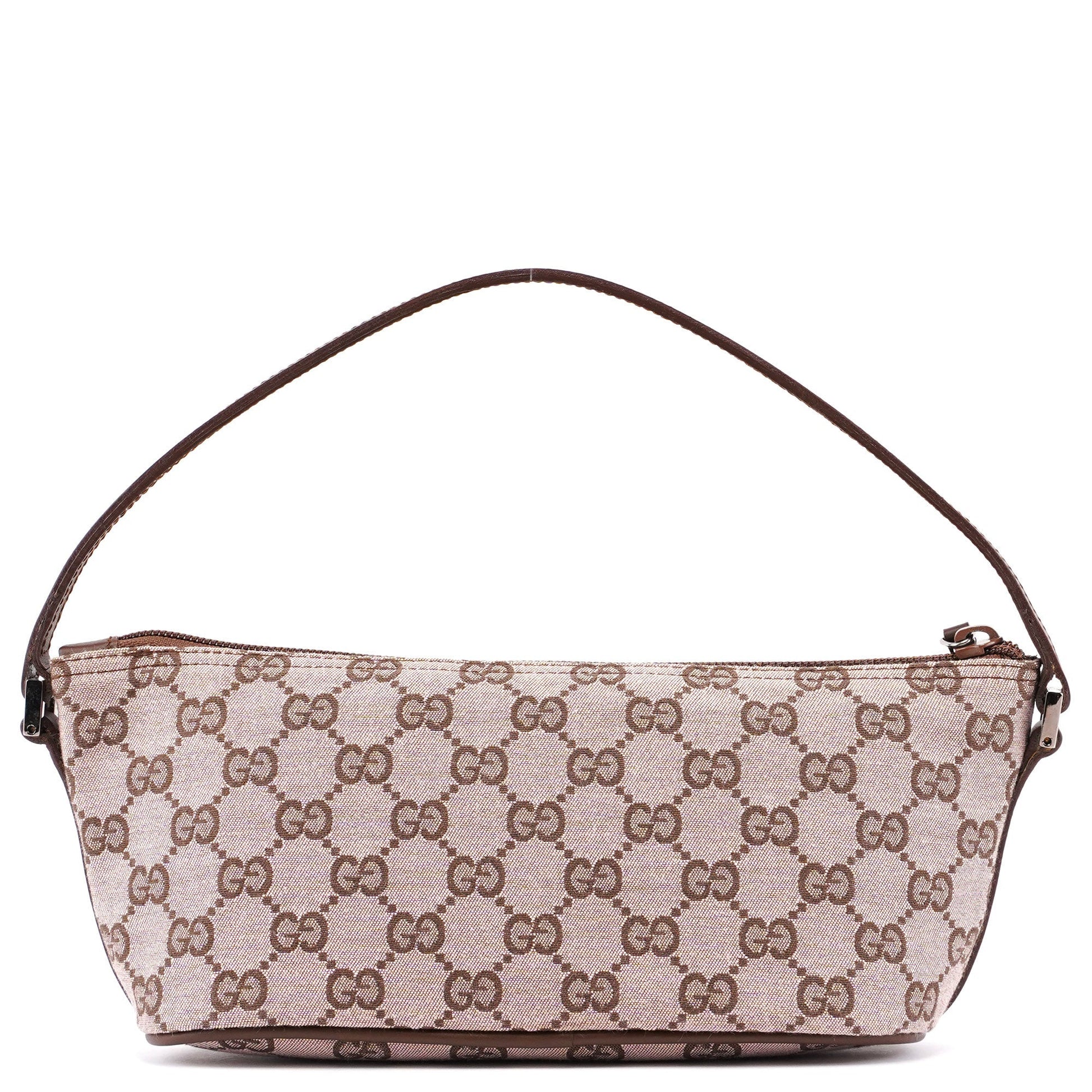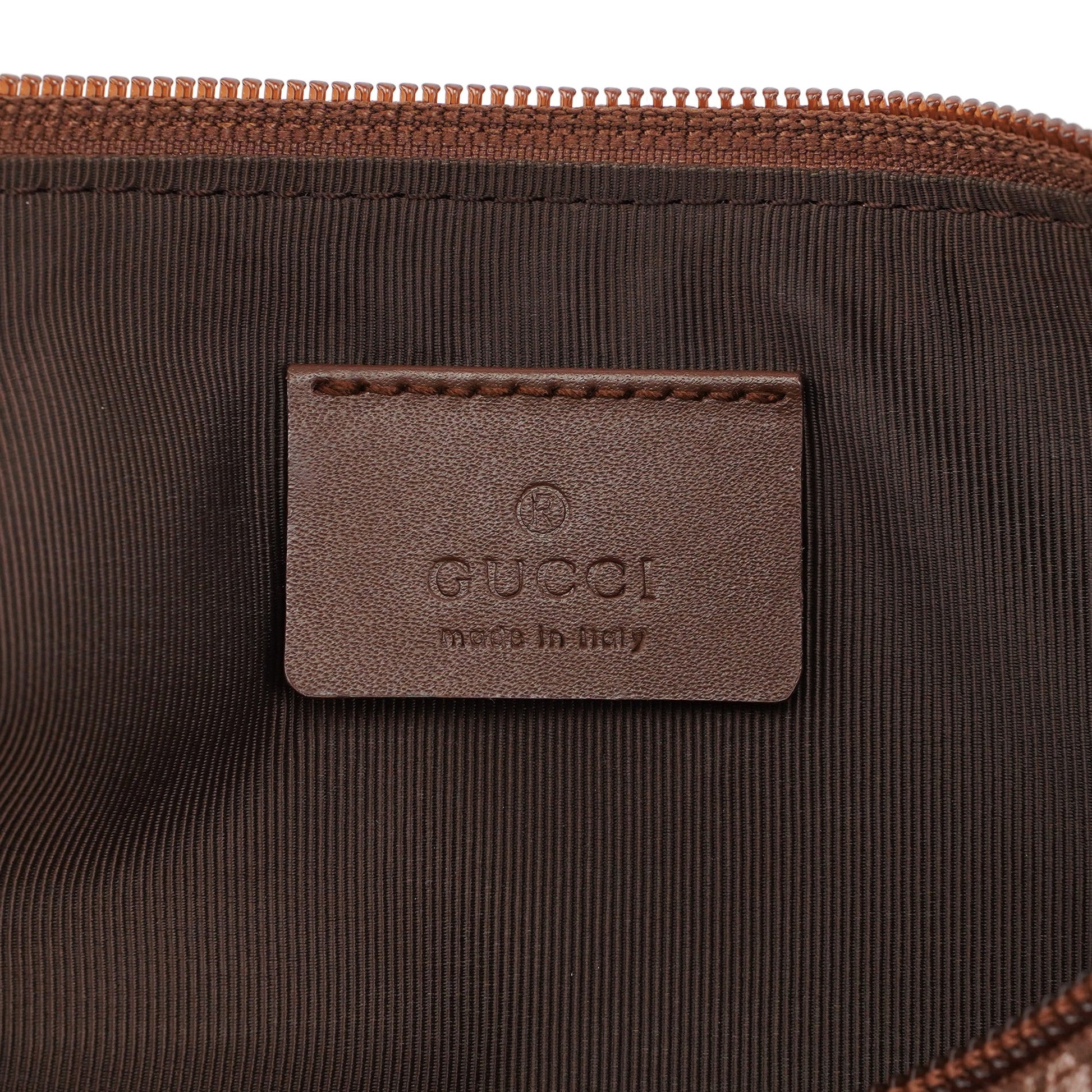 Explore timeless elegance with the Gucci GG Boat Pochette by Tom Ford, circa late 1990s. This exquisite piece combines beige GG canvas with brown leather trim and silver-tone hardware. Its secure zip closure and satin-lined interior offer luxury and practicality, while the subtle Gucci plaque adds a touch of heritage.