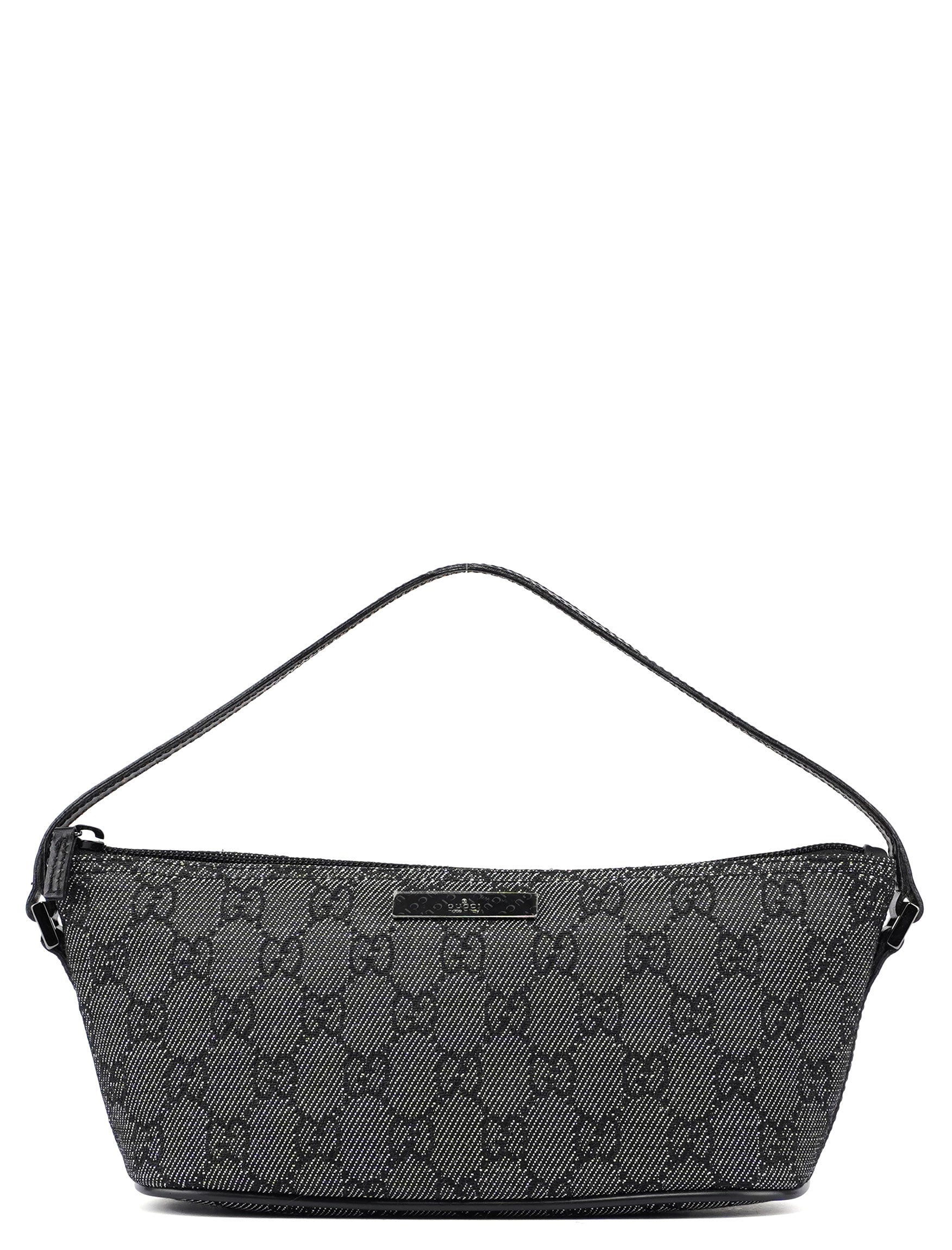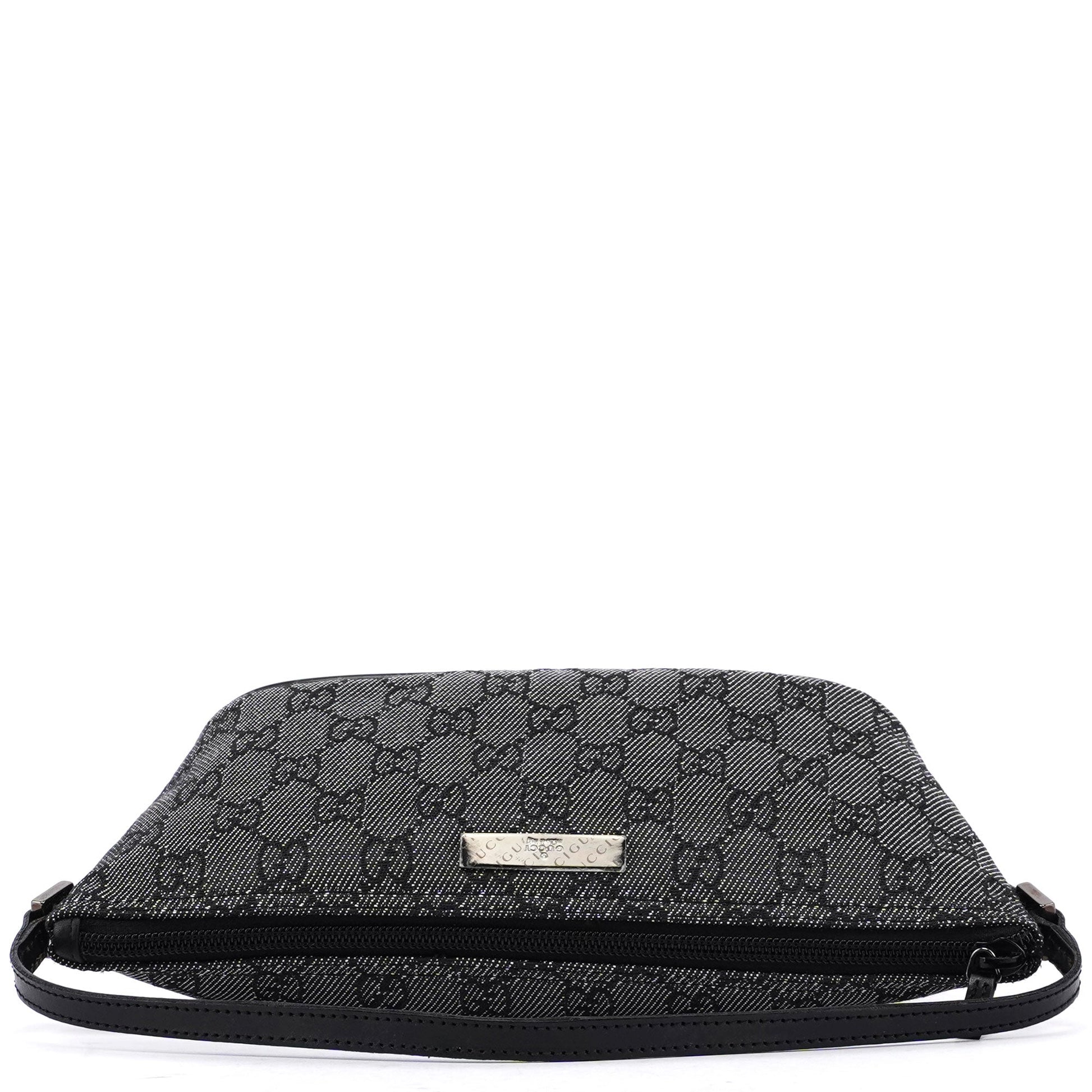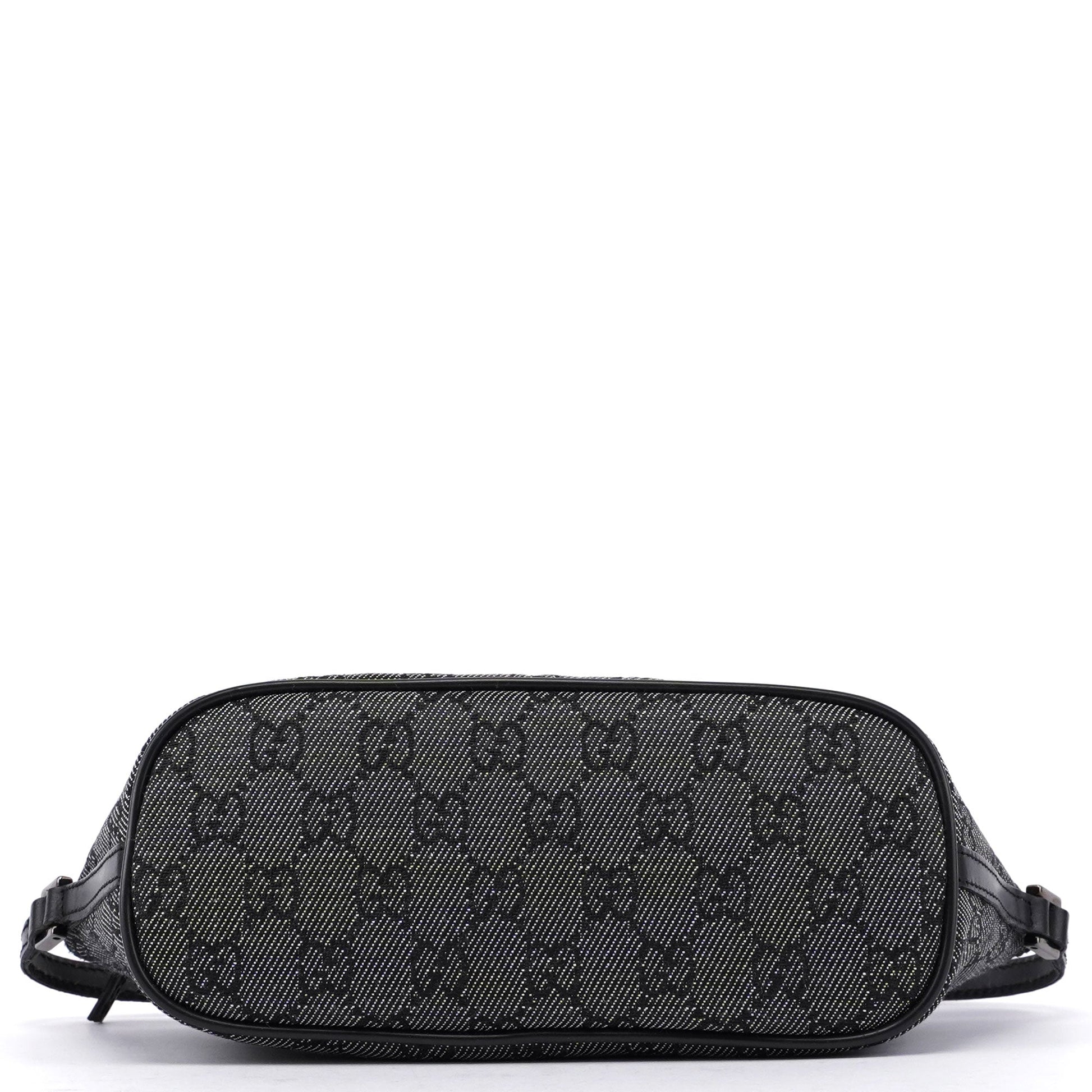 Explore timeless elegance with the Gucci GG Boat Pochette designed by Tom Ford, circa late 1990s. This exquisite piece combines anthracite GG denim with black leather trim and silver-tone hardware. Its secure zip closure and satin-lined interior offer luxury and practicality, while the subtle Gucci plaque adds a touch of heritage. A perfect blend of vintage charm and sophistication.