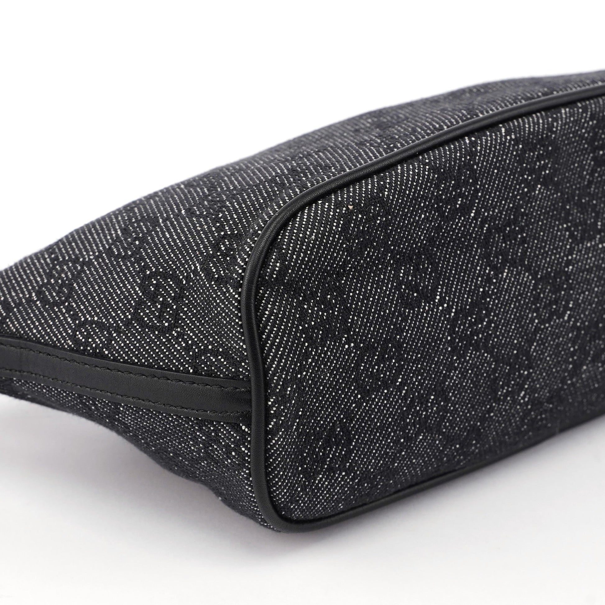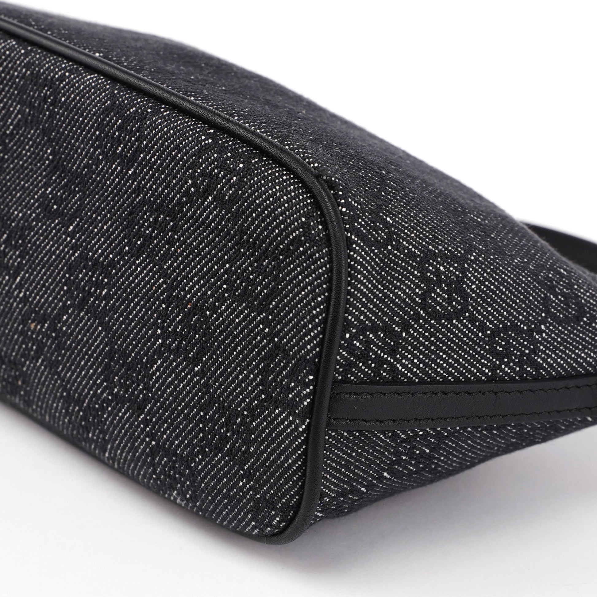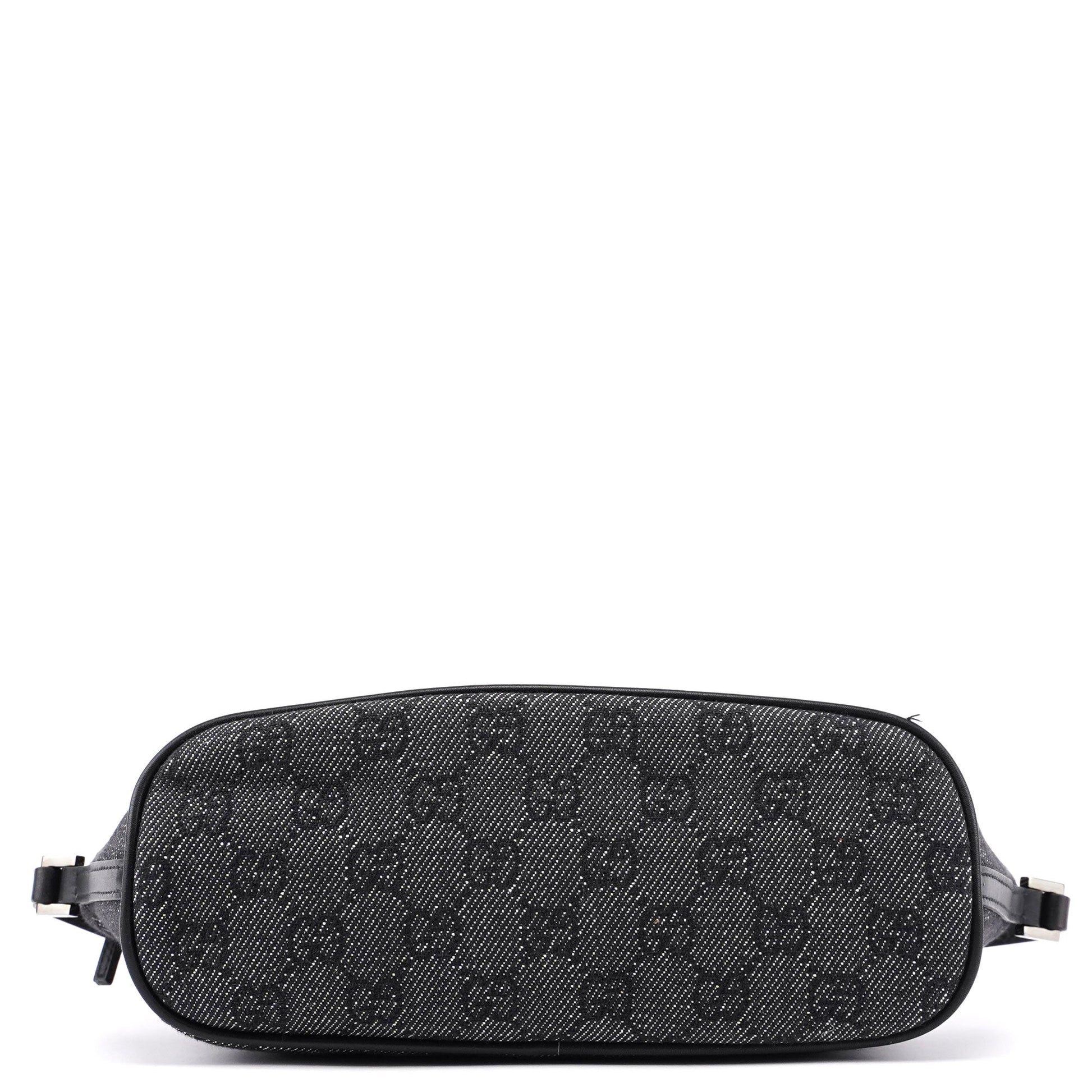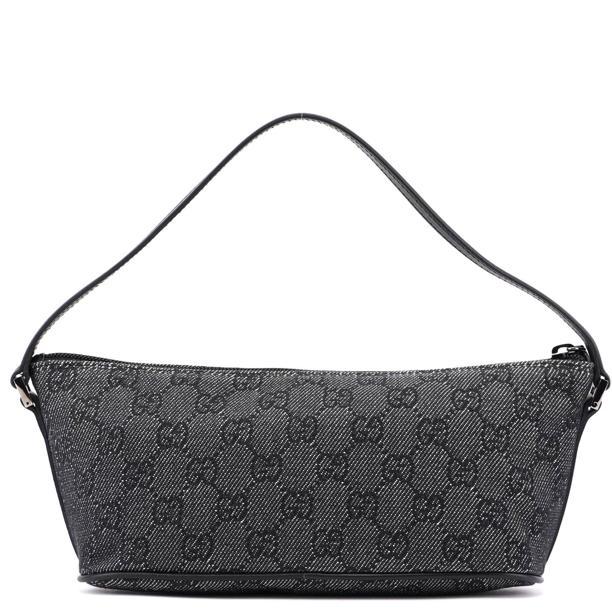 Explore timeless elegance with the Gucci GG Boat Pochette by Tom Ford, circa late 1990s. This exquisite piece combines anthracite GG denim with black leather trim and silver-tone hardware. Its secure zip closure and satin-lined interior offer luxury and practicality, while the subtle Gucci plaque adds a touch of heritage.