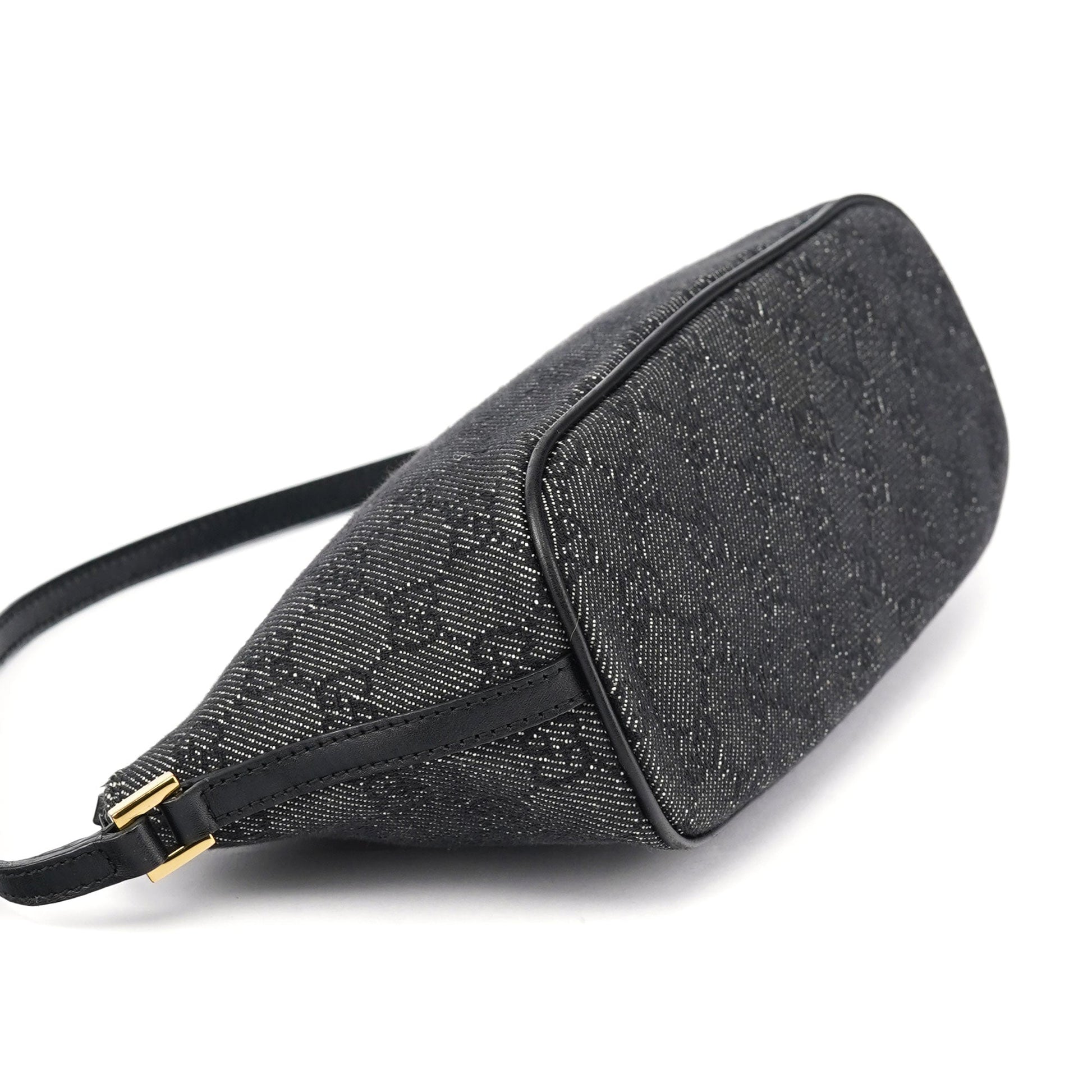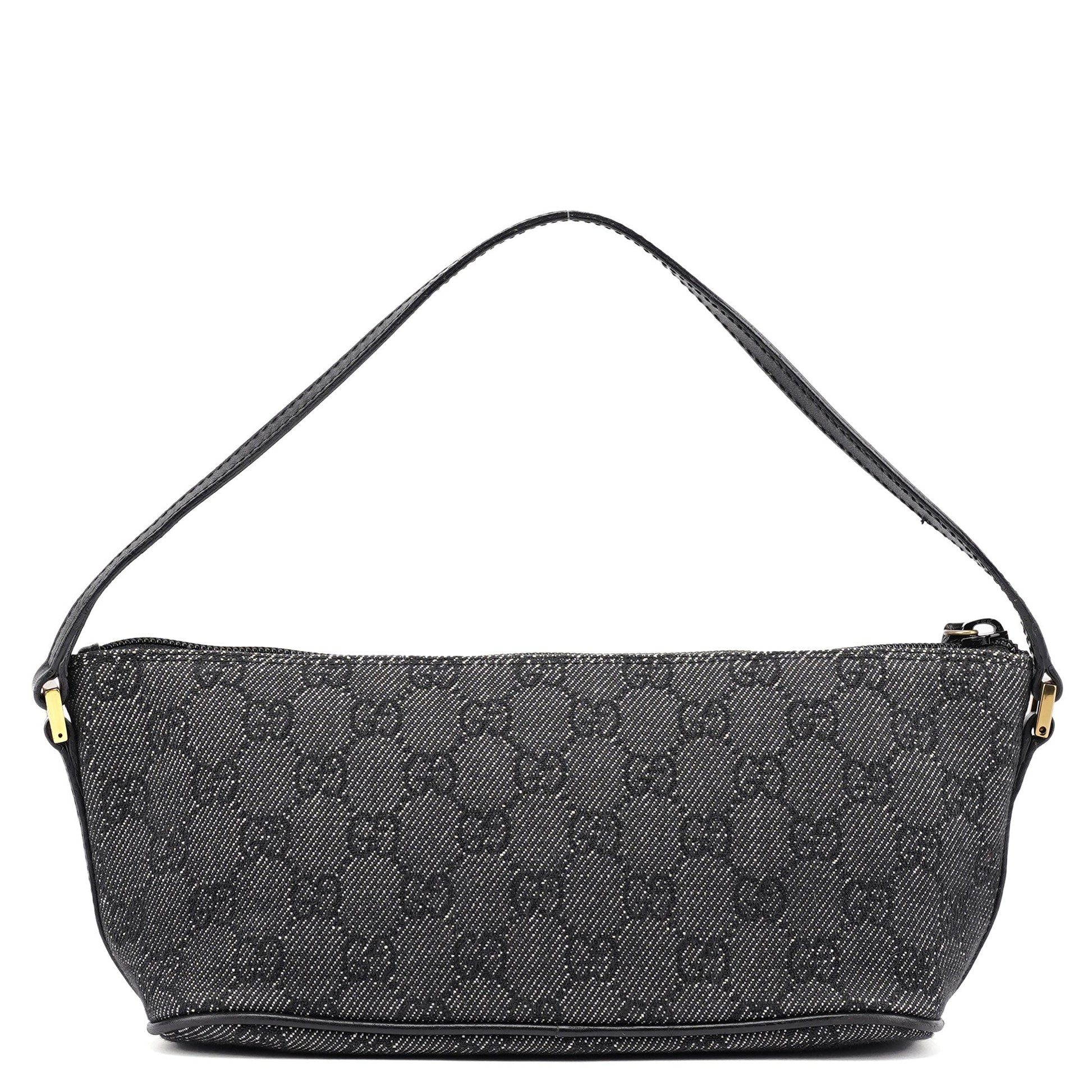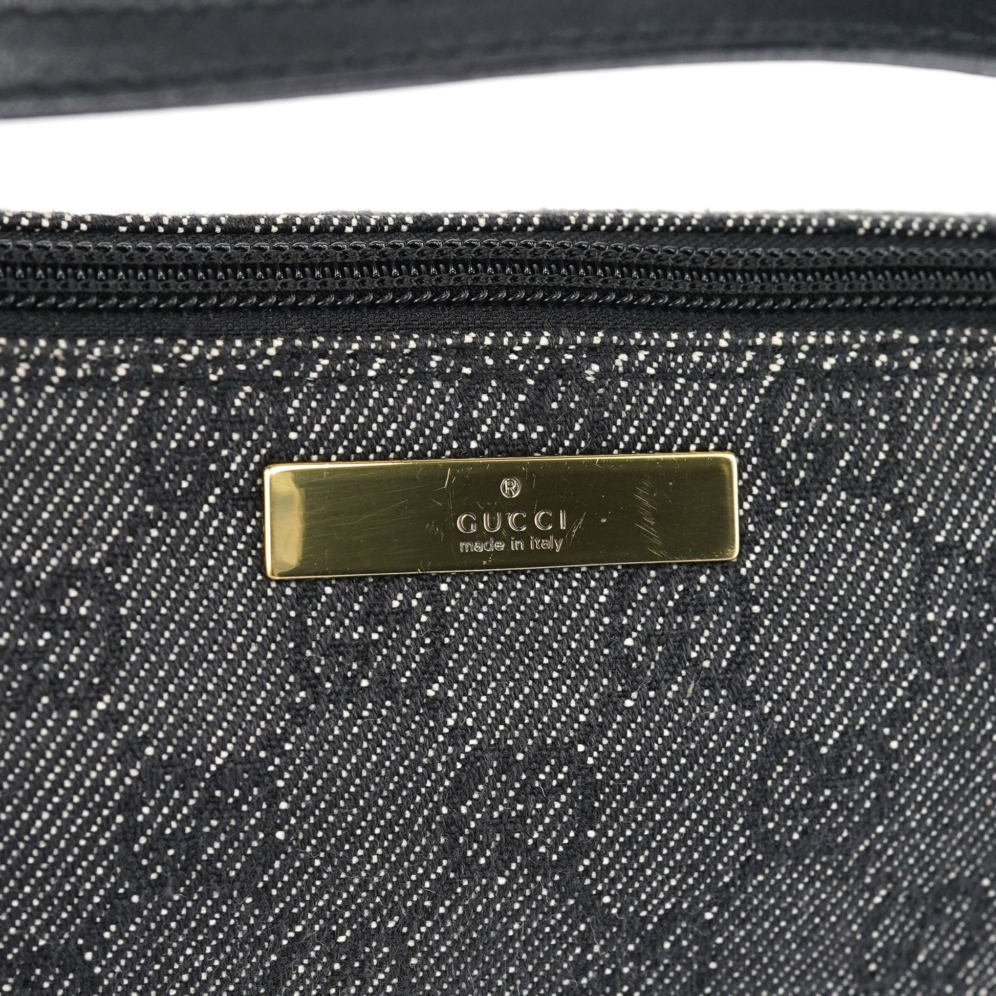 Explore timeless elegance with the Gucci GG Boat Pochette designed by Tom Ford, circa late 1990s. This exquisite piece combines anthracite GG denim with black leather trim and silver-tone hardware. Its secure zip closure and satin-lined interior offer luxury and practicality, while the subtle Gucci plaque adds a touch of heritage. A perfect blend of vintage charm and sophistication.