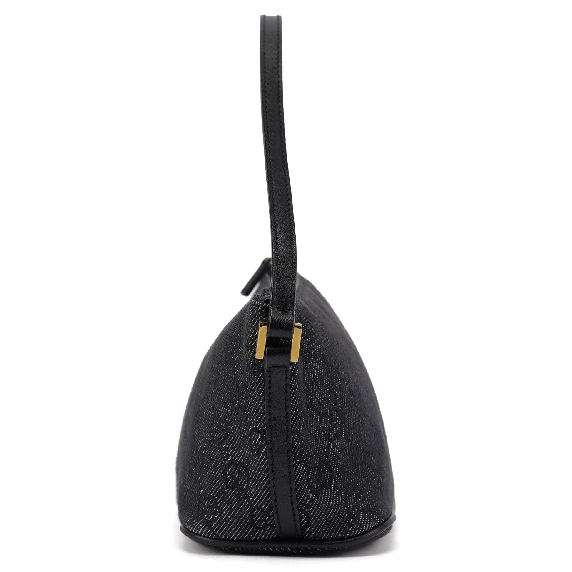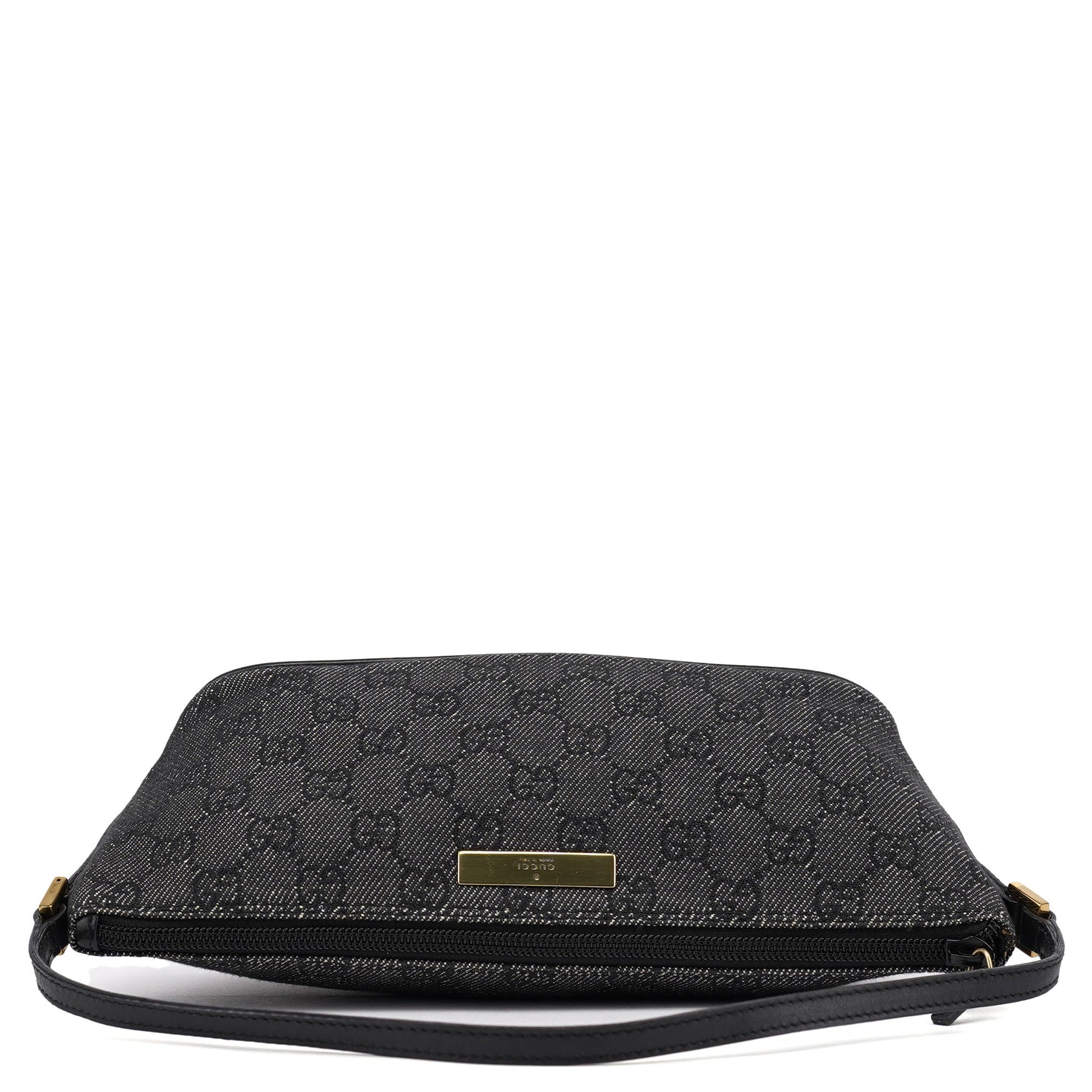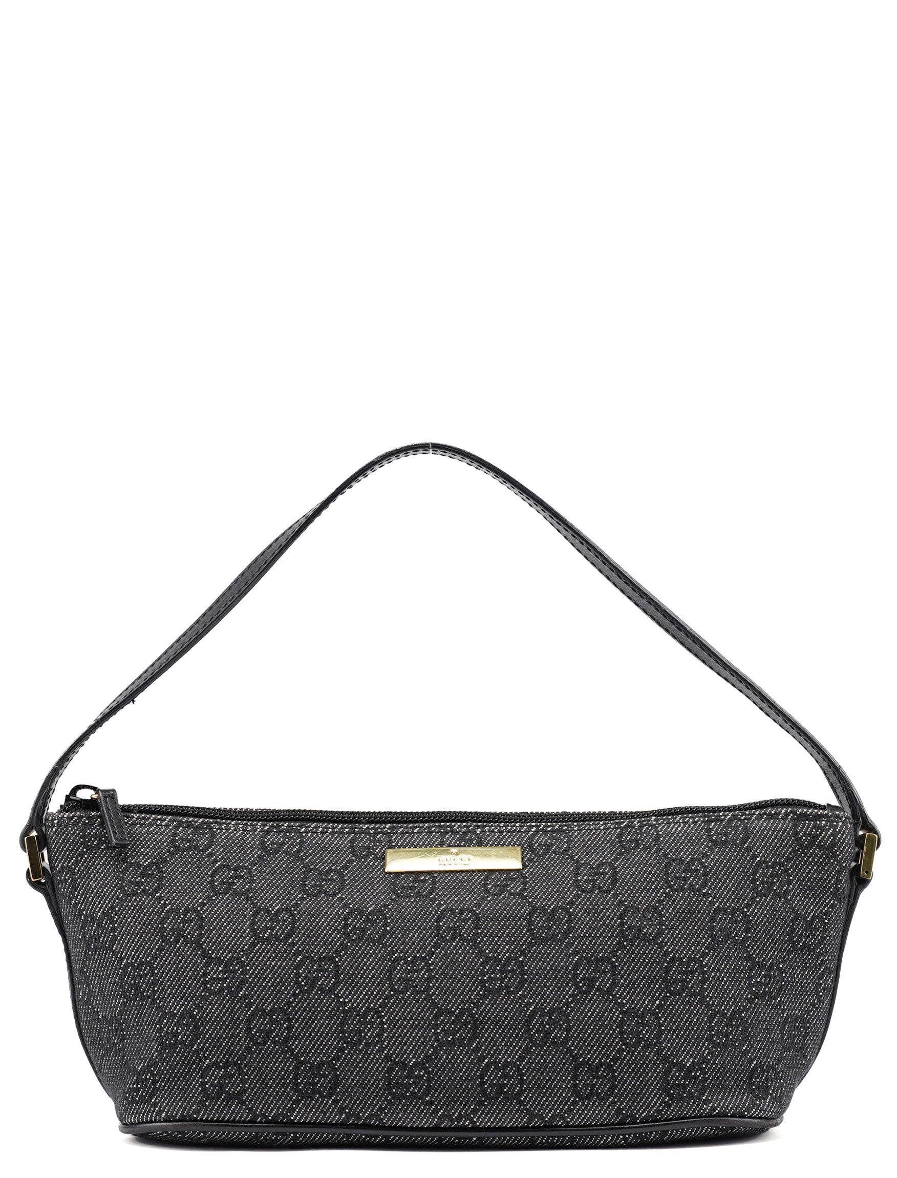 Explore timeless elegance with the Gucci GG Boat Pochette designed by Tom Ford, circa late 1990s. This exquisite piece combines anthracite GG denim with black leather trim and silver-tone hardware. Its secure zip closure and satin-lined interior offer luxury and practicality, while the subtle Gucci plaque adds a touch of heritage. A perfect blend of vintage charm and sophistication.