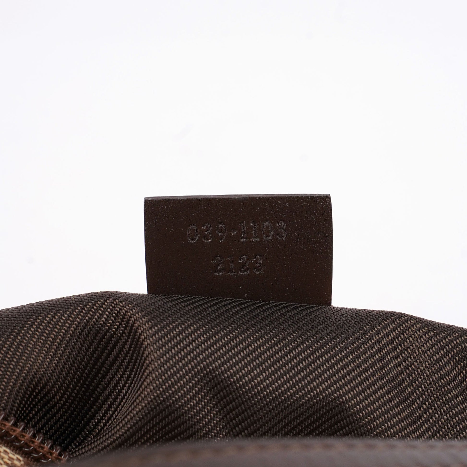 Explore timeless elegance with the Gucci GG Boat Pochette by Tom Ford, circa late 1990s. This exquisite piece combines beige GG canvas with brown leather trim and silver-tone hardware. Its secure zip closure and satin-lined interior offer luxury and practicality, while the subtle Gucci plaque adds a touch of heritage. A perfect blend of vintage charm and sophistication.