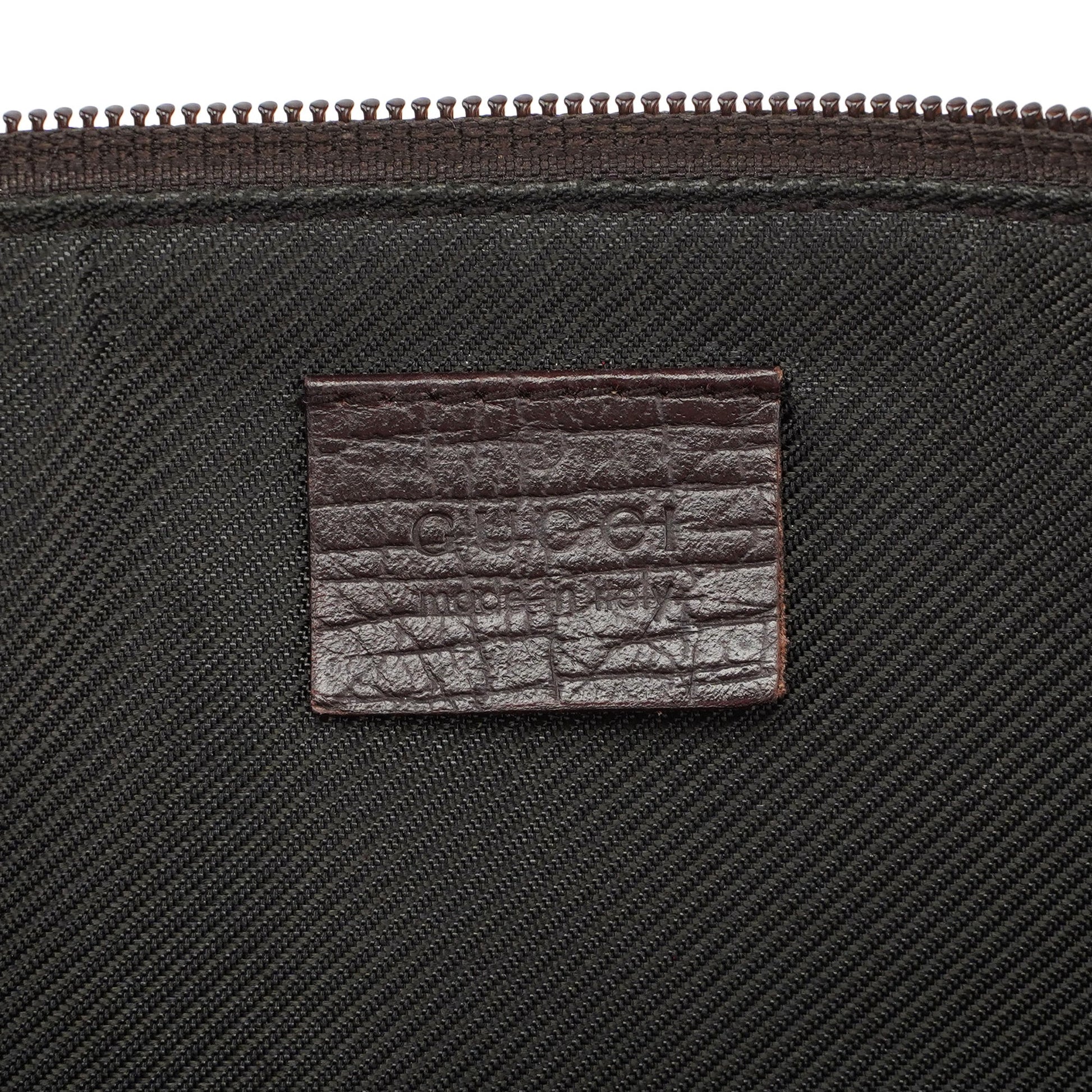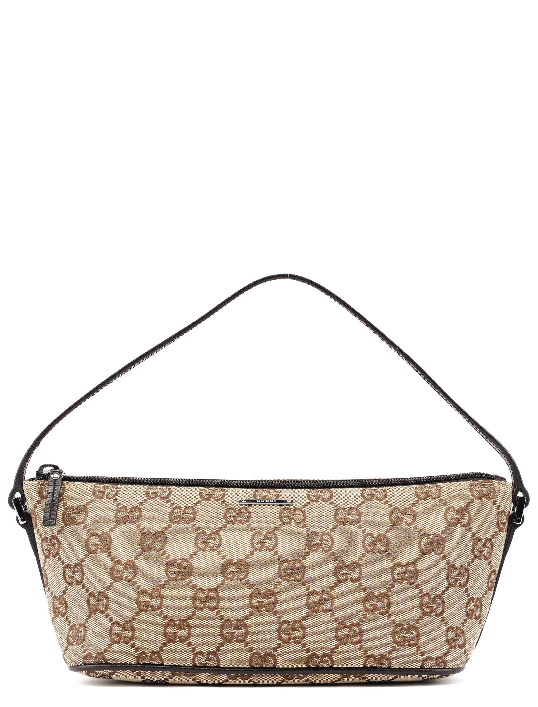 Explore timeless elegance with the Gucci GG Boat Pochette by Tom Ford, circa late 1990s. This exquisite piece combines beige GG canvas with brown leather trim and silver-tone hardware. Its secure zip closure and satin-lined interior offer luxury and practicality, while the subtle Gucci plaque adds a touch of heritage.