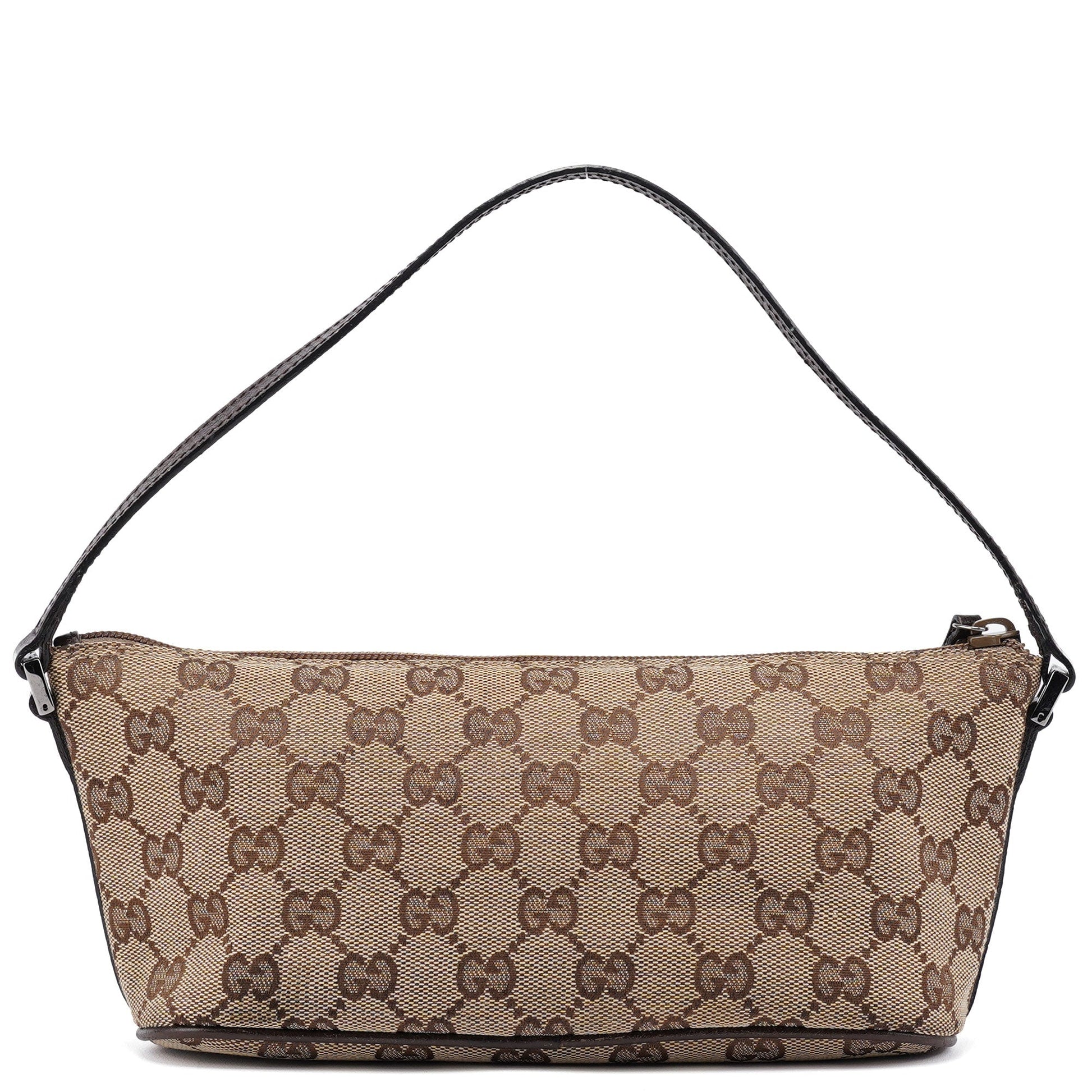 Explore timeless elegance with the Gucci GG Boat Pochette by Tom Ford, circa late 1990s. This exquisite piece combines beige GG canvas with brown leather trim and silver-tone hardware. Its secure zip closure and satin-lined interior offers luxury and practicality, while the subtle Gucci plaque adds a touch of heritage.