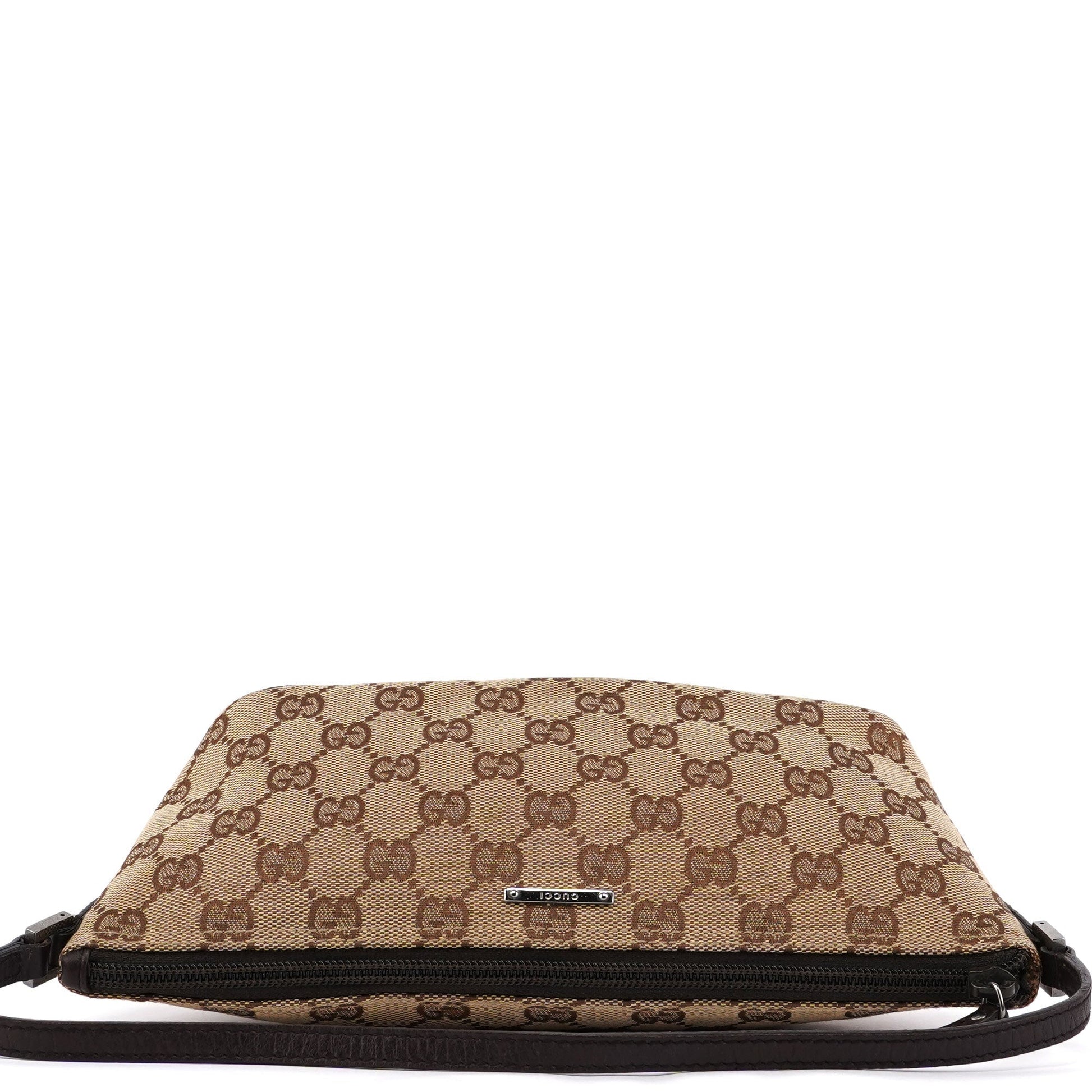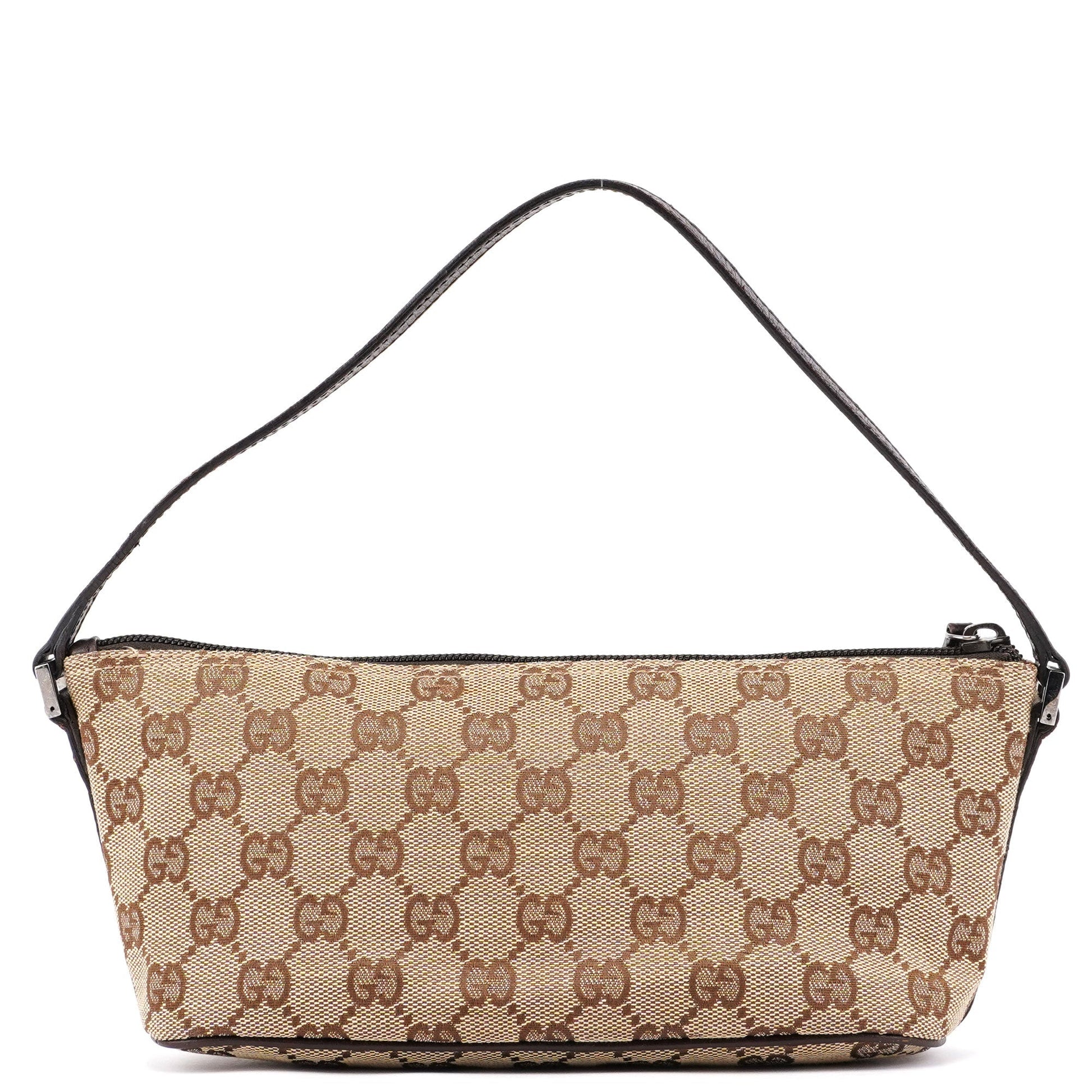 Explore timeless elegance with the Gucci GG Boat Pochette by Tom Ford, circa late 1990s. This exquisite piece combines beige GG canvas with brown leather trim and silver-tone hardware. Its secure zip closure and satin-lined interior offer luxury and practicality, while the subtle Gucci plaque adds a touch of heritage.