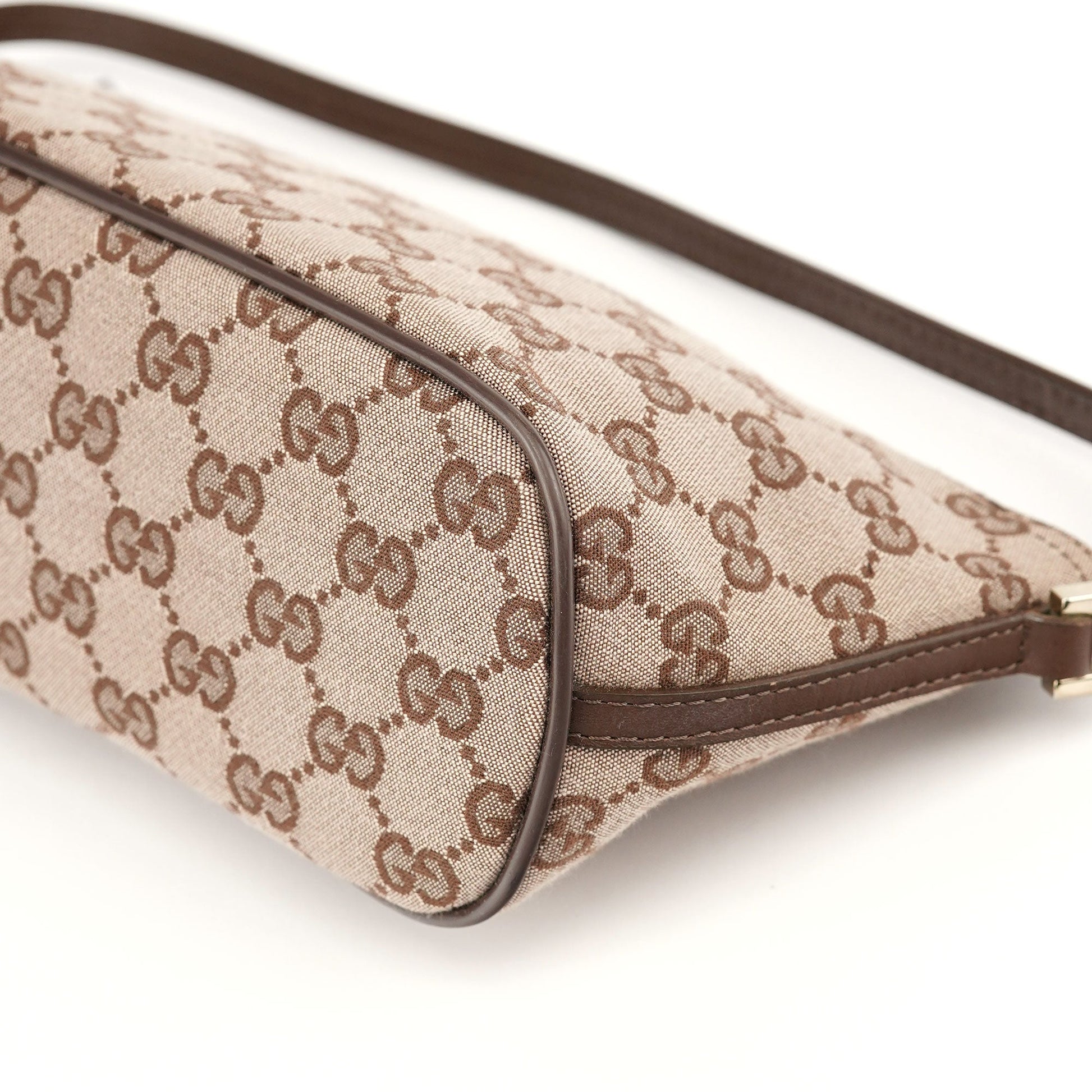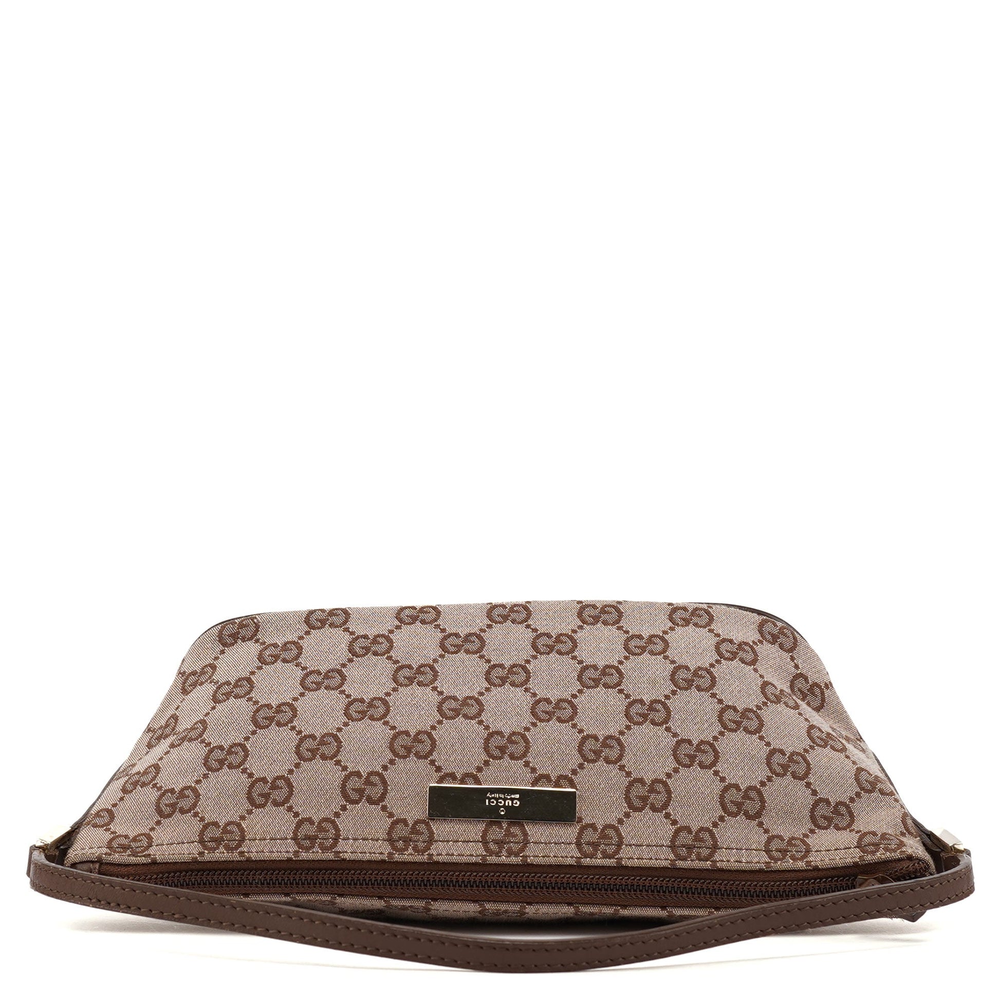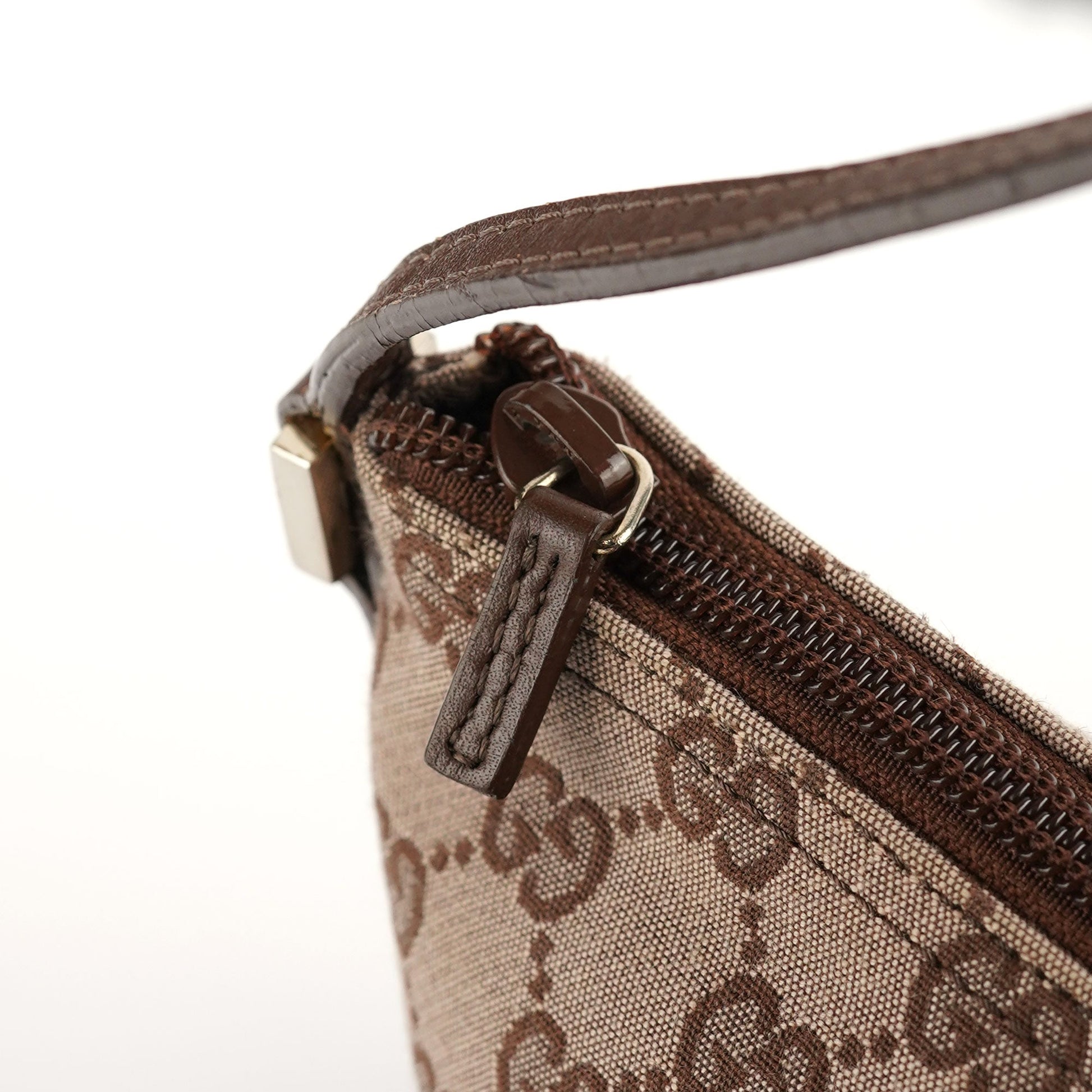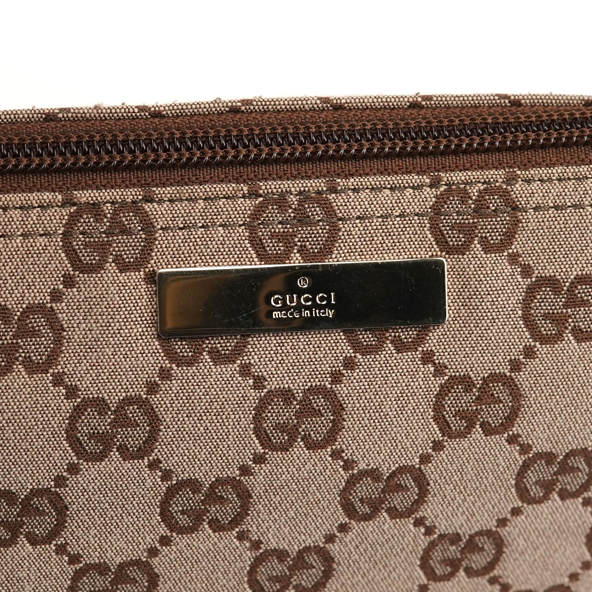 Explore timeless elegance with the Gucci GG Boat Pochette by Tom Ford, circa late 1990s. This exquisite piece combines beige GG canvas with brown leather trim and silver-tone hardware. Its secure zip closure and satin-lined interior offers luxury and practicality, while the subtle Gucci plaque adds a touch of heritage.