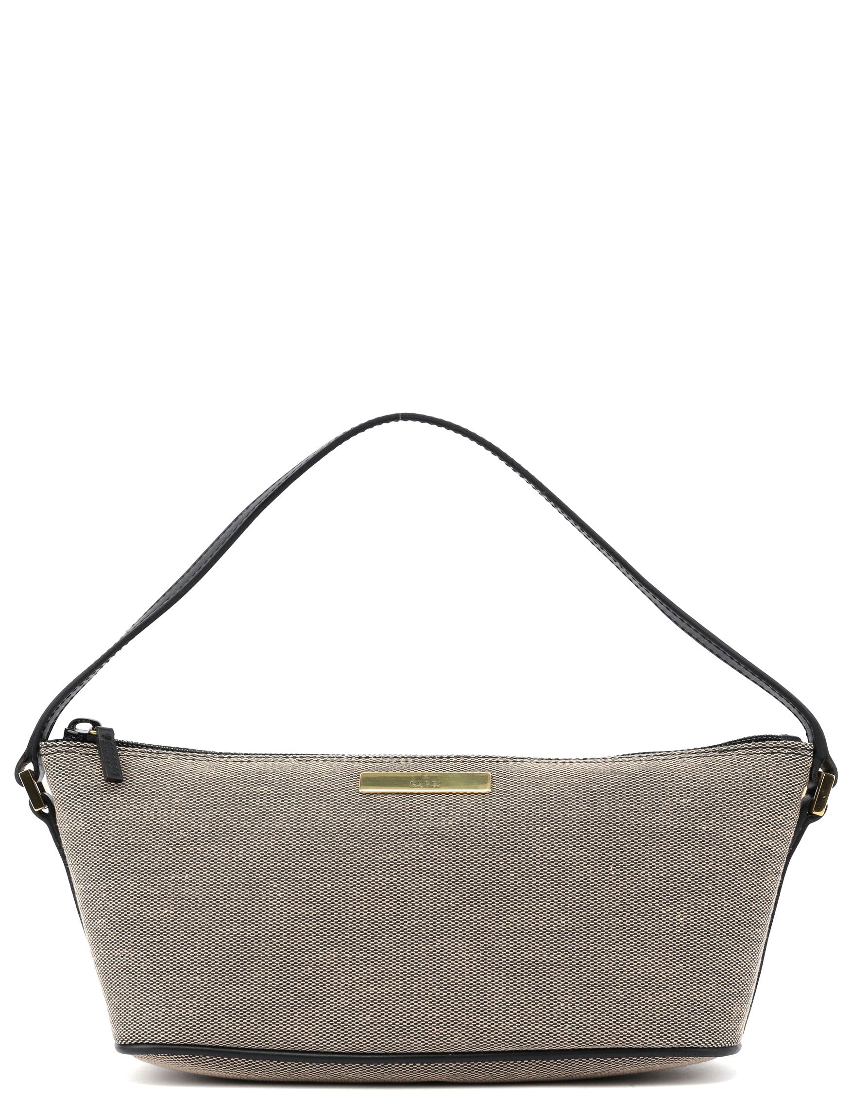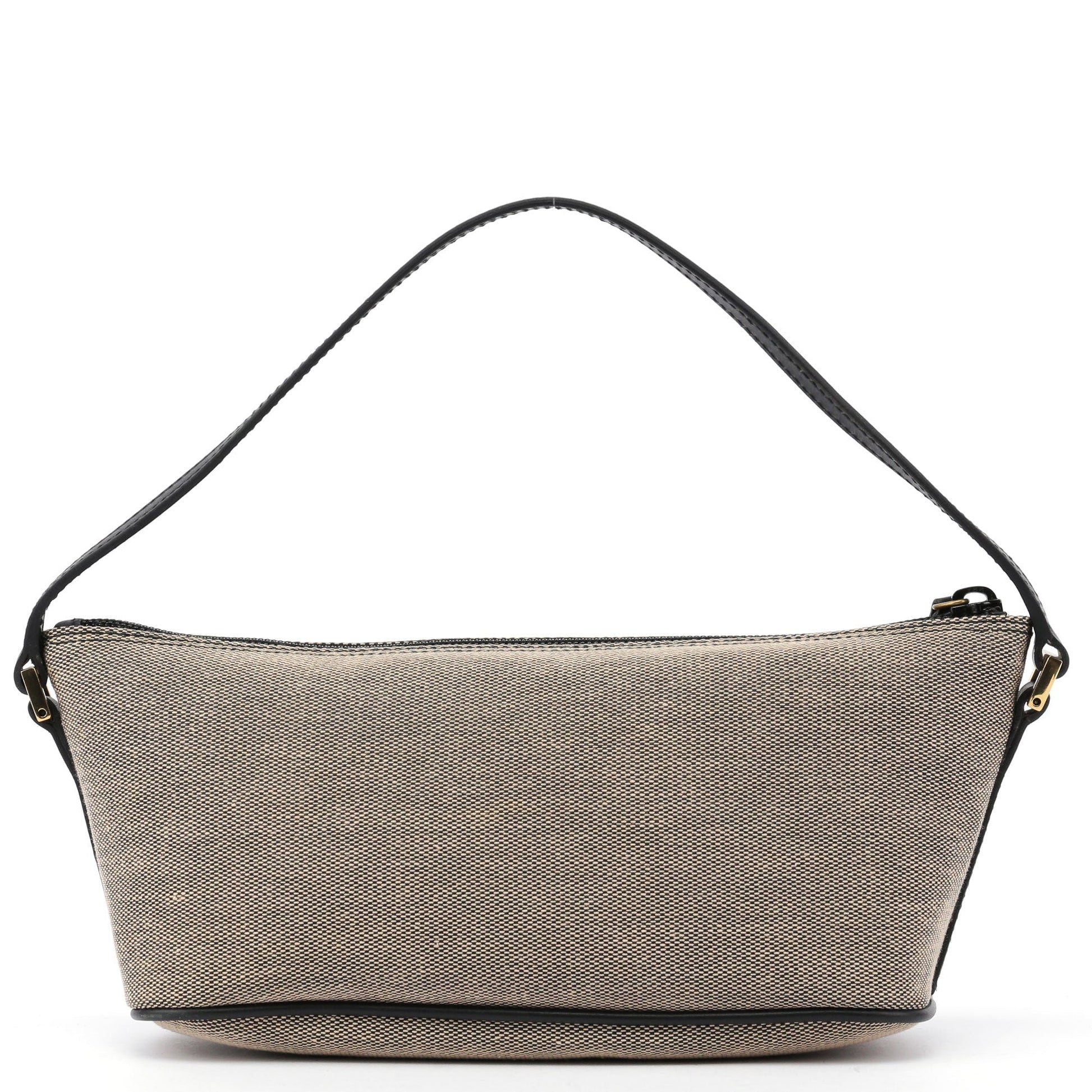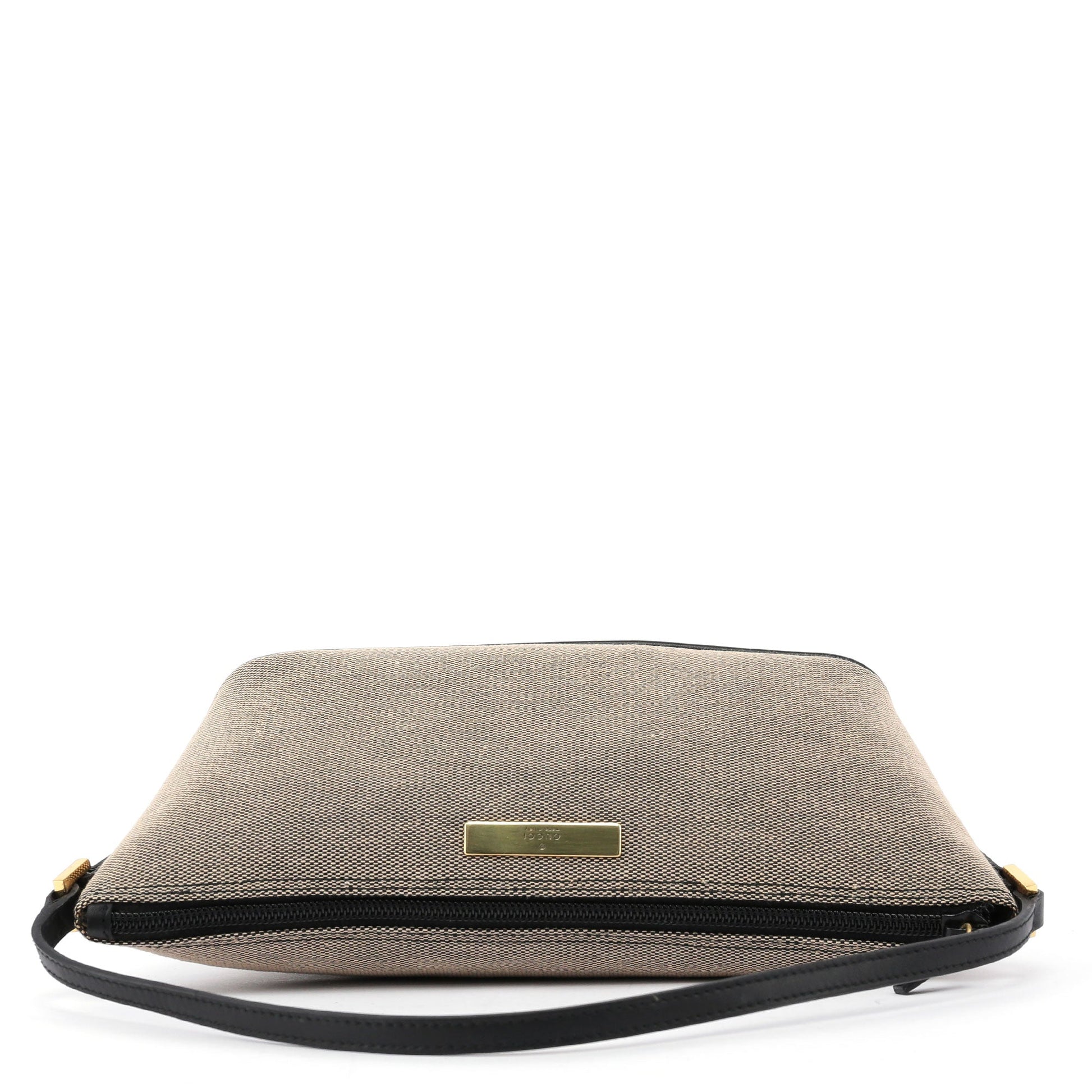 Explore timeless elegance with the Gucci GG boat pochette by Tom Ford, circa late 1990s. This exquisite piece combines beige canvas with black leather trim and gold-tone hardware. Its secure zip closure and satin-lined interior offer luxury and practicality, while the subtle Gucci plaque adds a touch of heritage. A perfect blend of vintage charm and sophistication.