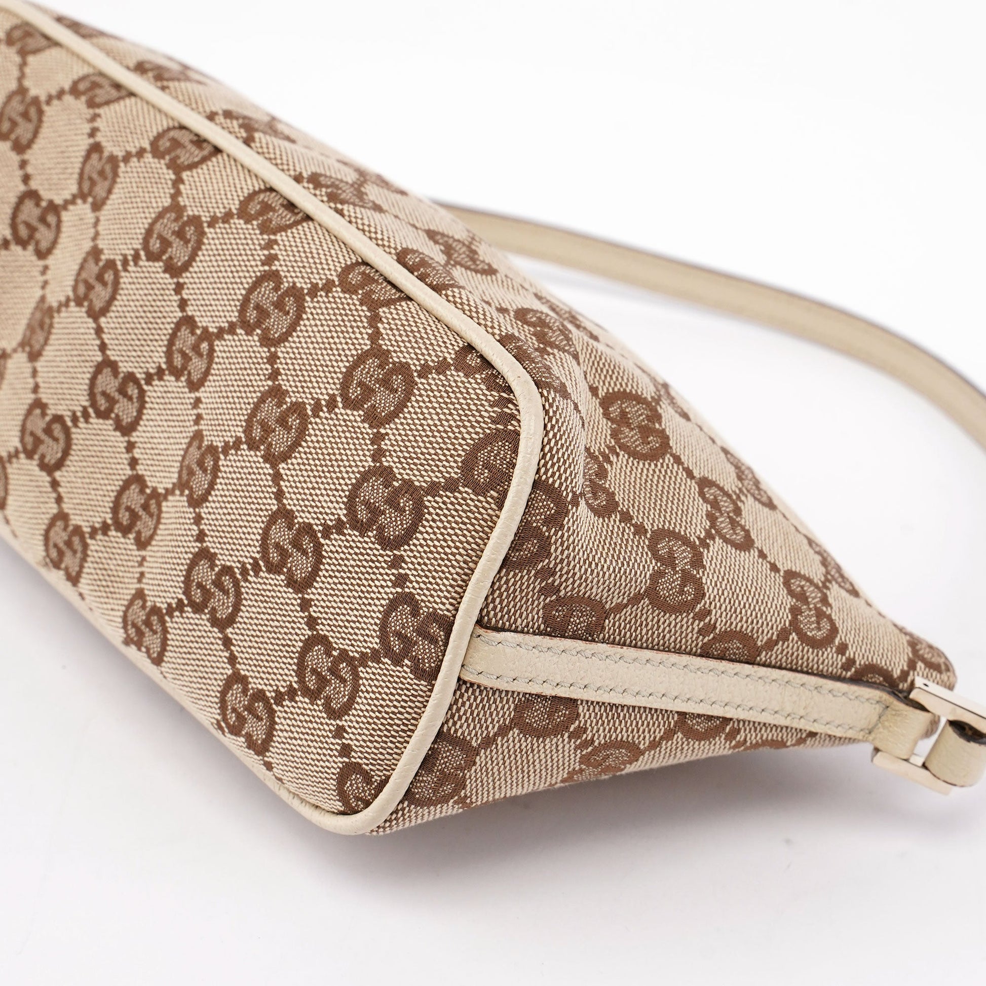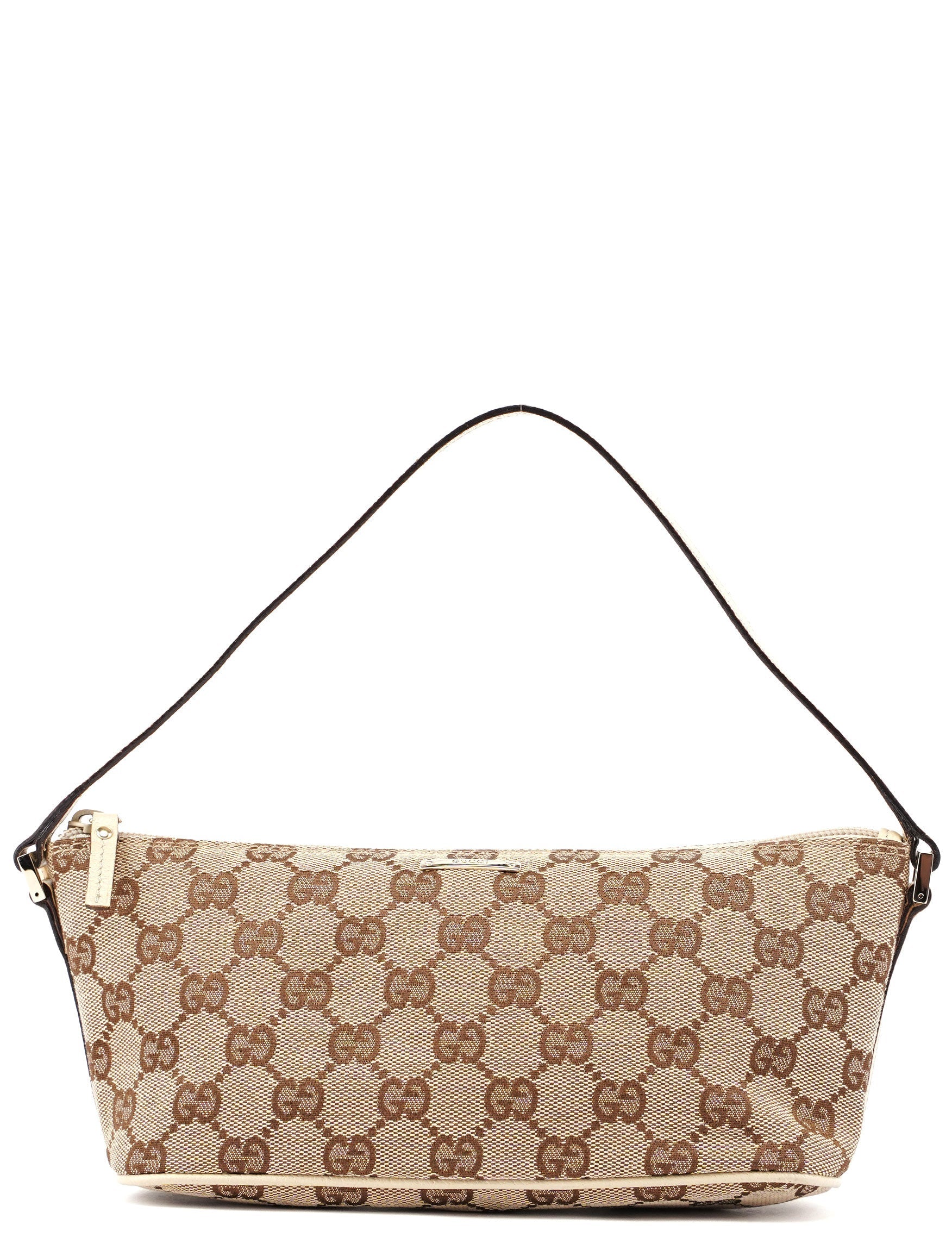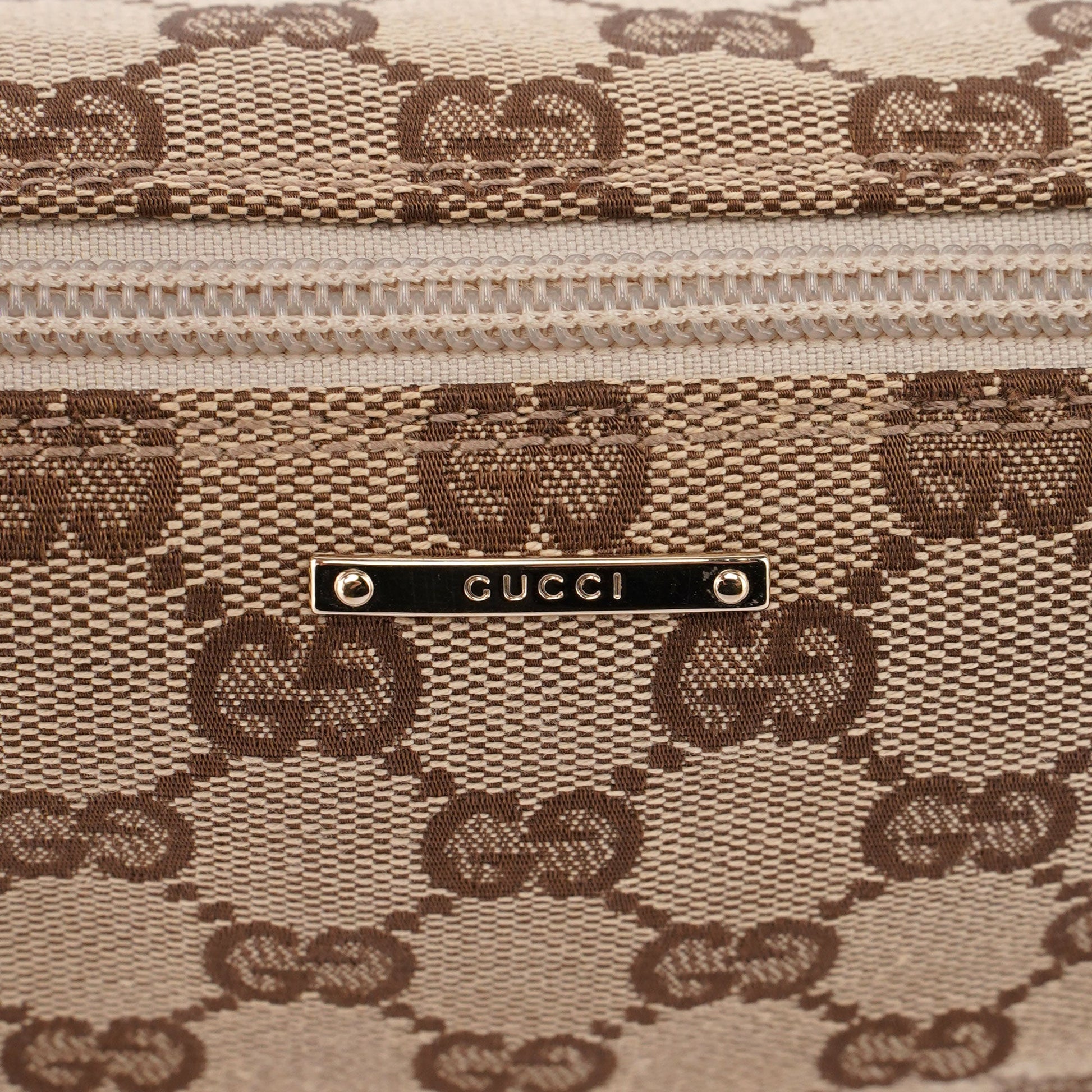 Explore timeless elegance with the Gucci GG Boat Pochette by Tom Ford, circa late 1990s. This exquisite piece combines beige GG canvas with tonal leather trim and silver-tone hardware. Its secure zip closure and satin-lined interior offer luxury and practicality, while the subtle Gucci plaque adds a touch of heritage.