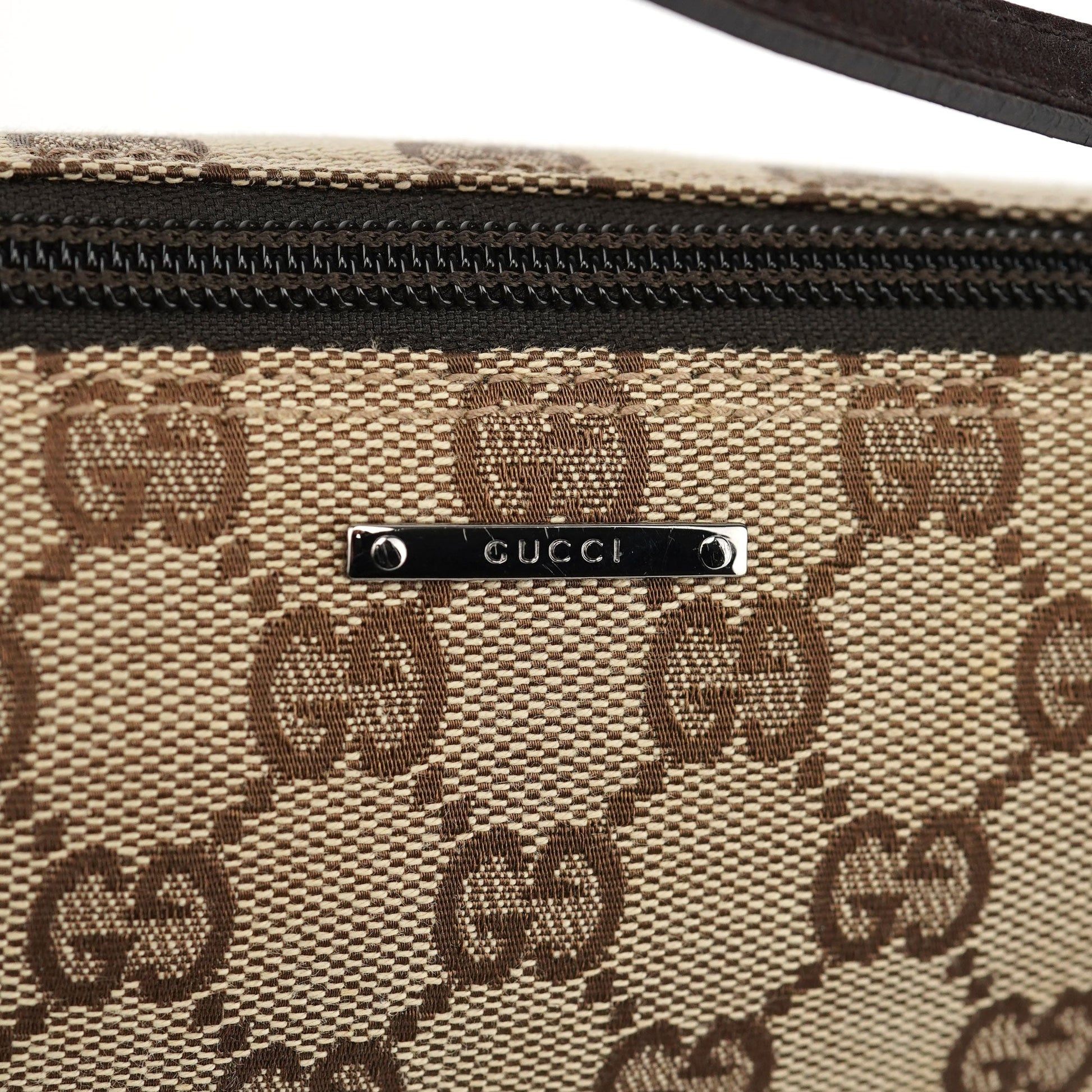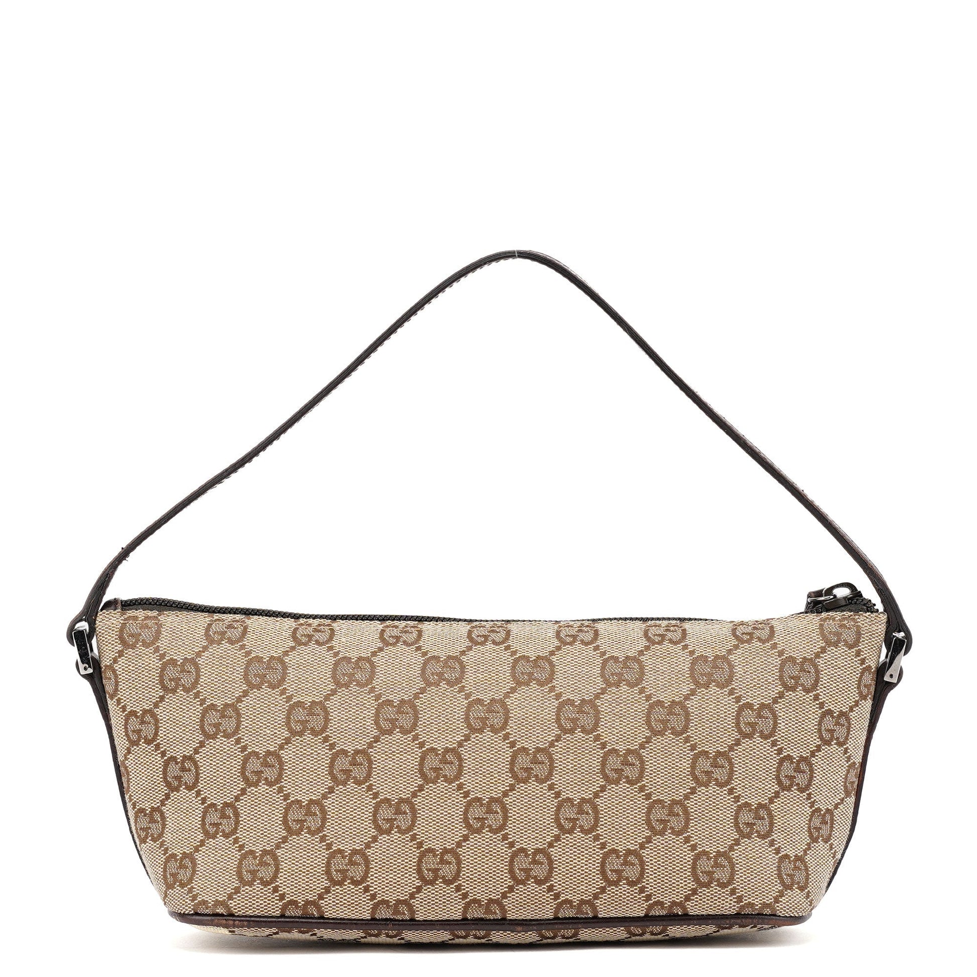 Explore timeless elegance with the Gucci GG Boat Pochette by Tom Ford, circa late 1990s. This exquisite piece combines beige GG canvas with beige leather trim and silver-tone hardware. Its secure zip closure and satin-lined interior offer luxury and practicality, while the subtle Gucci plaque adds a touch of heritage. A perfect blend of vintage charm and sophistication.