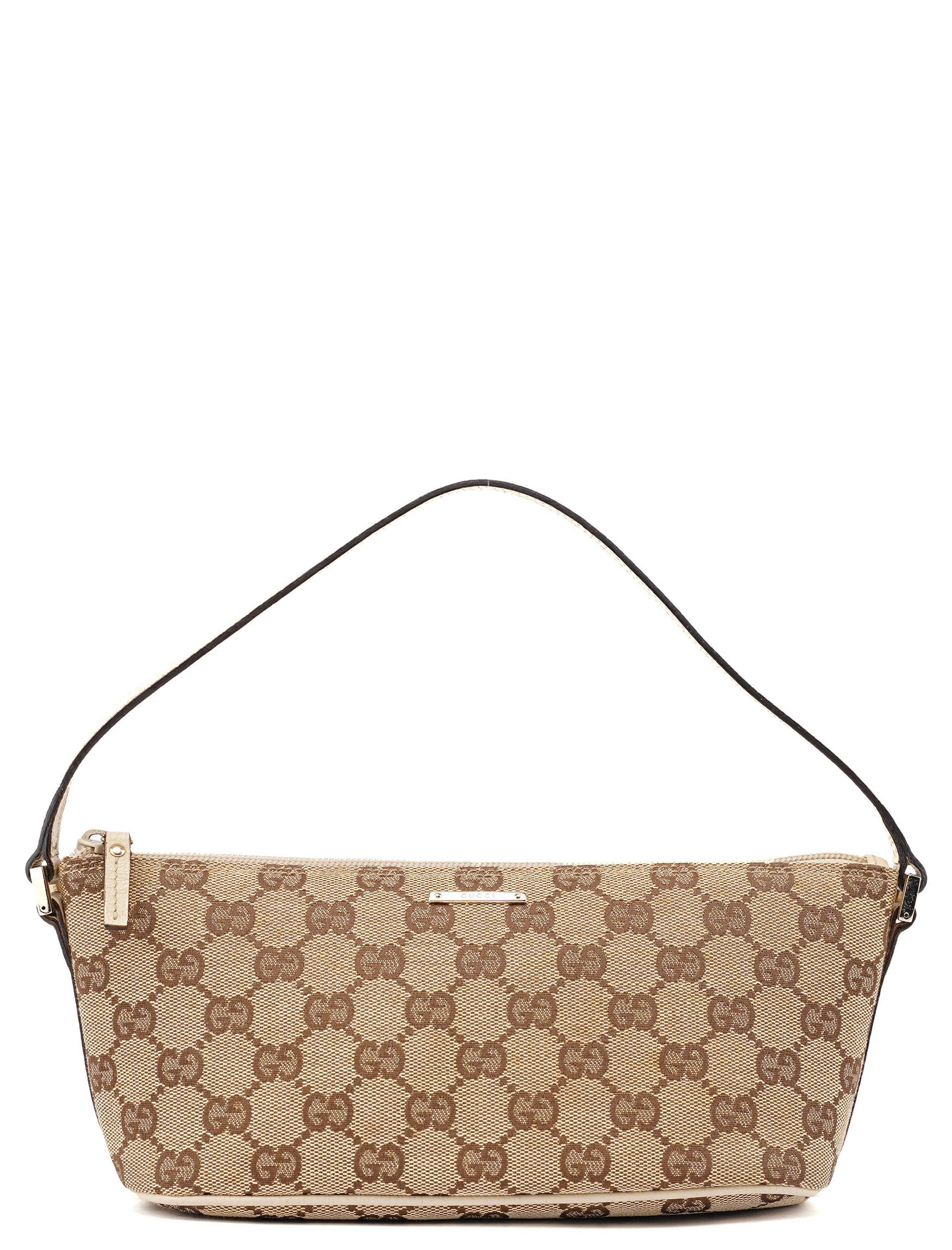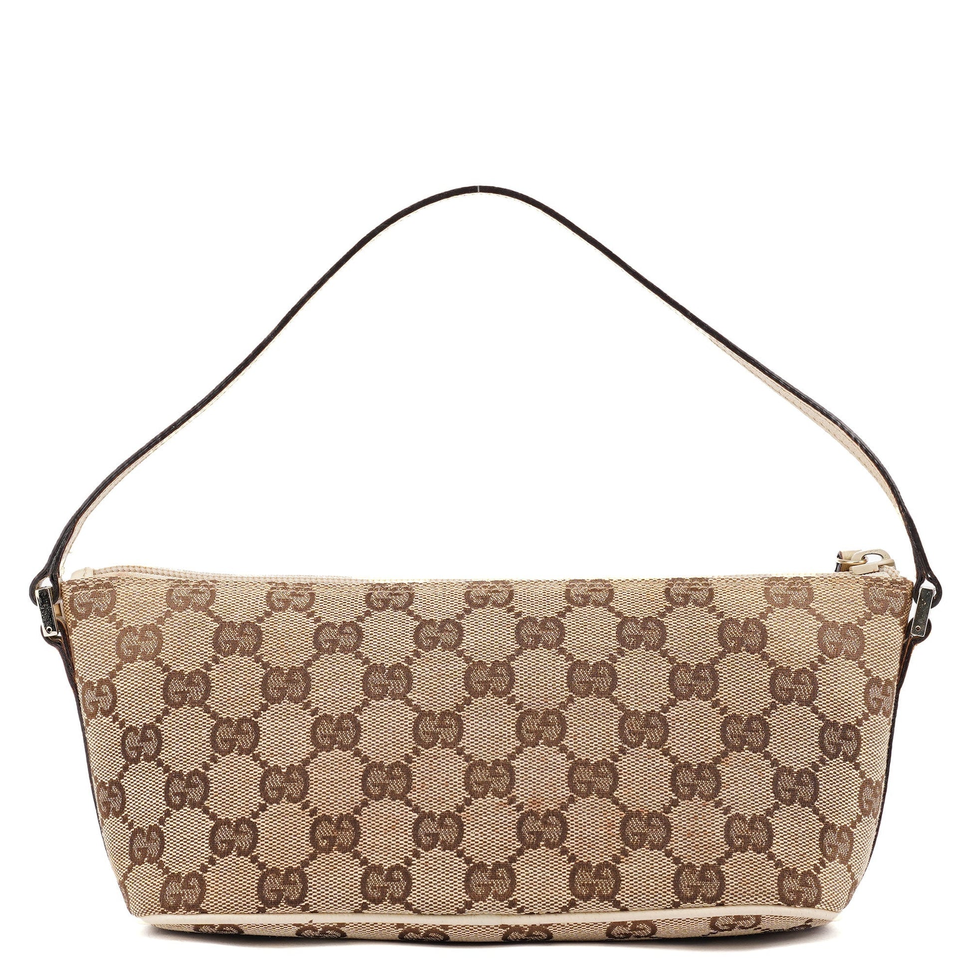 Explore timeless elegance with the Gucci GG Boat Pochette by Tom Ford, circa late 1990s. This exquisite piece combines beige GG canvas with beige leather trim and silver-tone hardware. Its secure zip closure and satin-lined interior offer luxury and practicality, while the subtle Gucci plaque adds a touch of heritage.