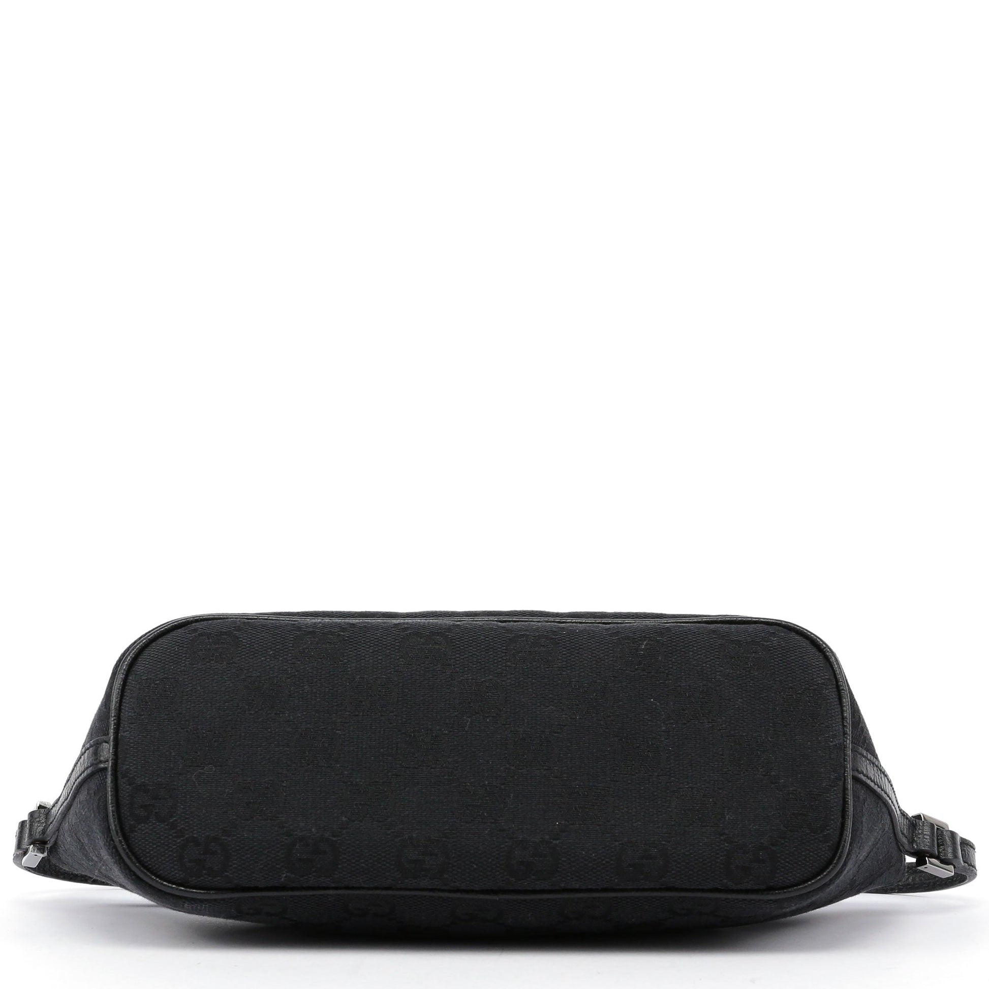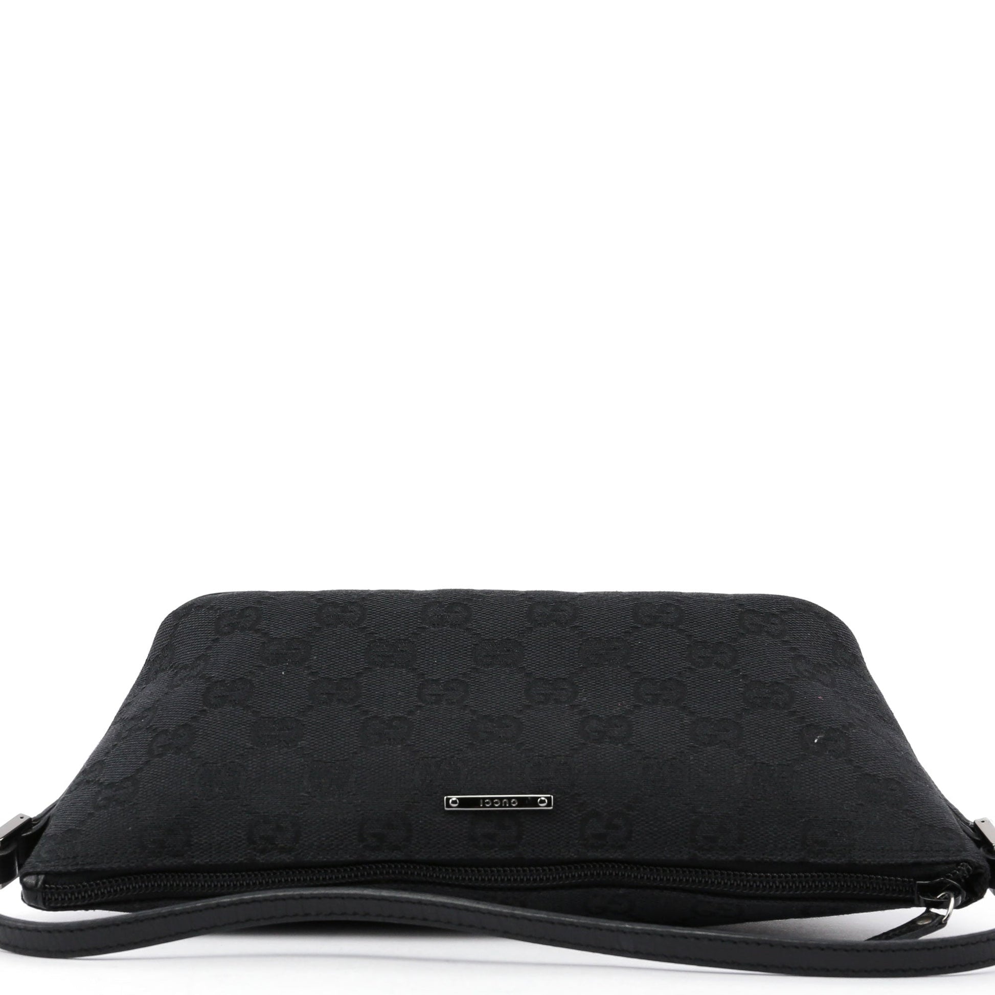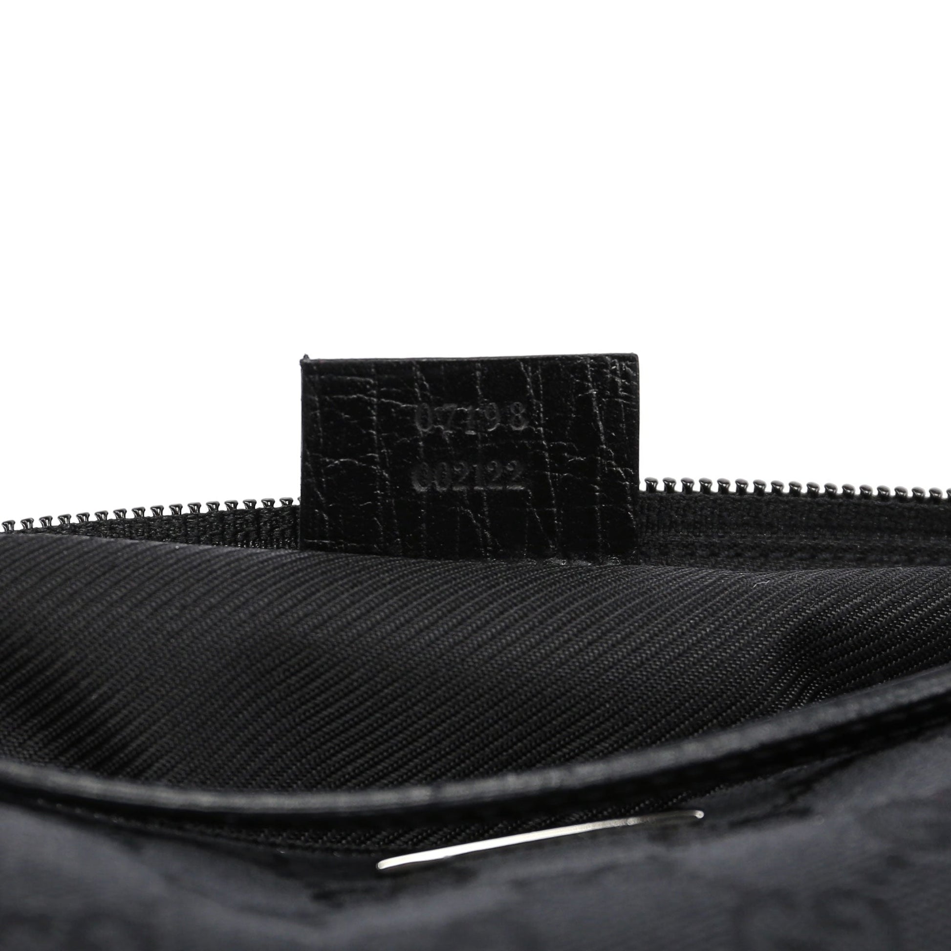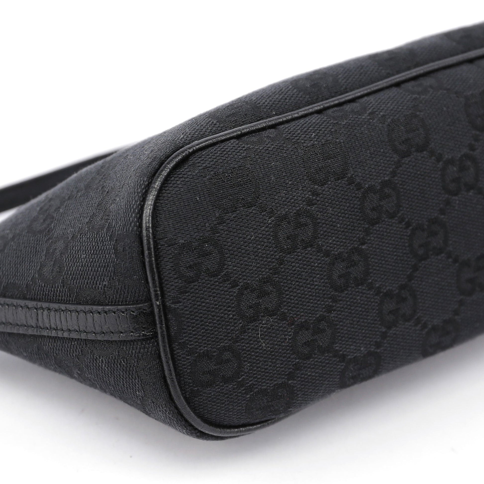 Explore timeless elegance with the Gucci GG boat pochette by Tom Ford, circa late 1990s. This exquisite piece combines black GG canvas with tonal leather trim and silver-tone hardware. Its secure zip closure and satin-lined interior offer luxury and practicality, while the subtle Gucci plaque adds a touch of heritage. A perfect blend of vintage charm and sophistication.
