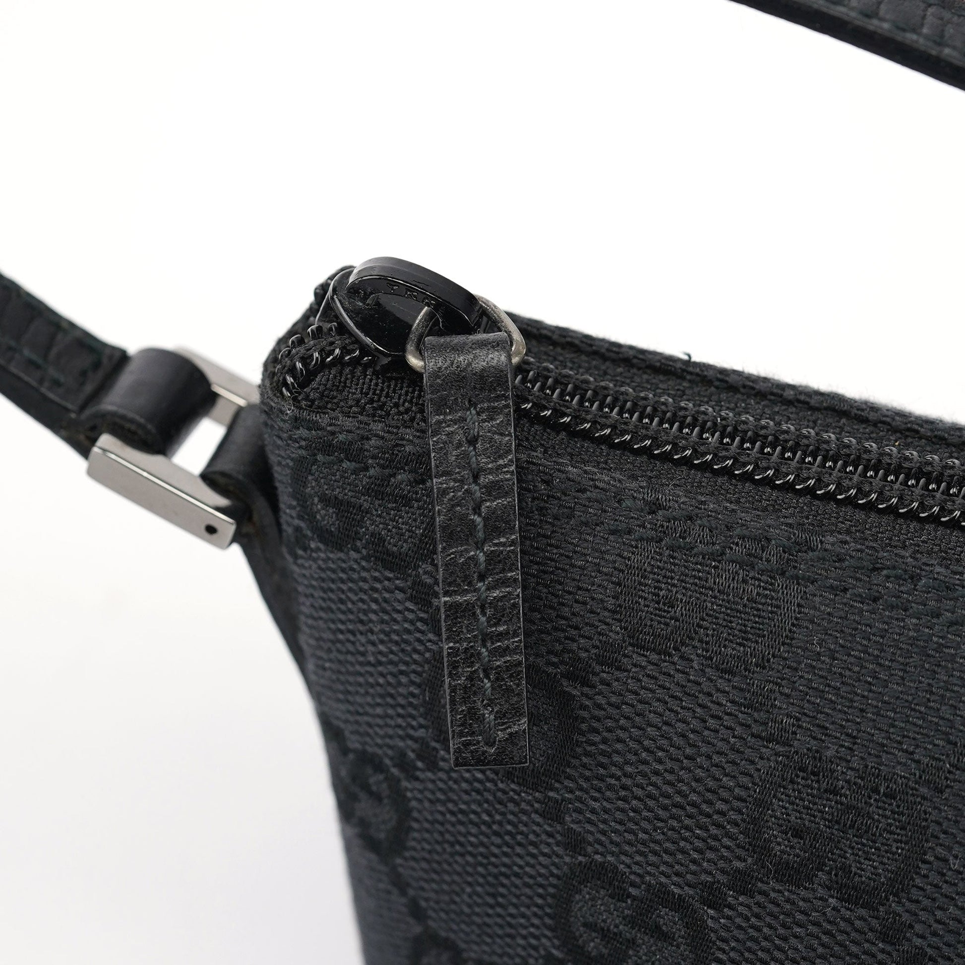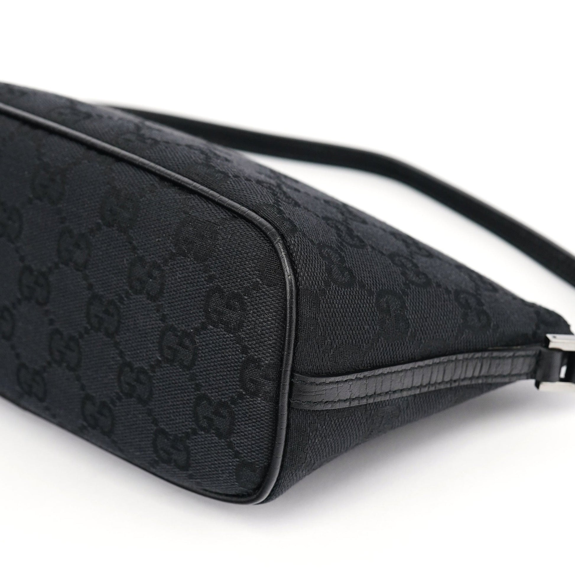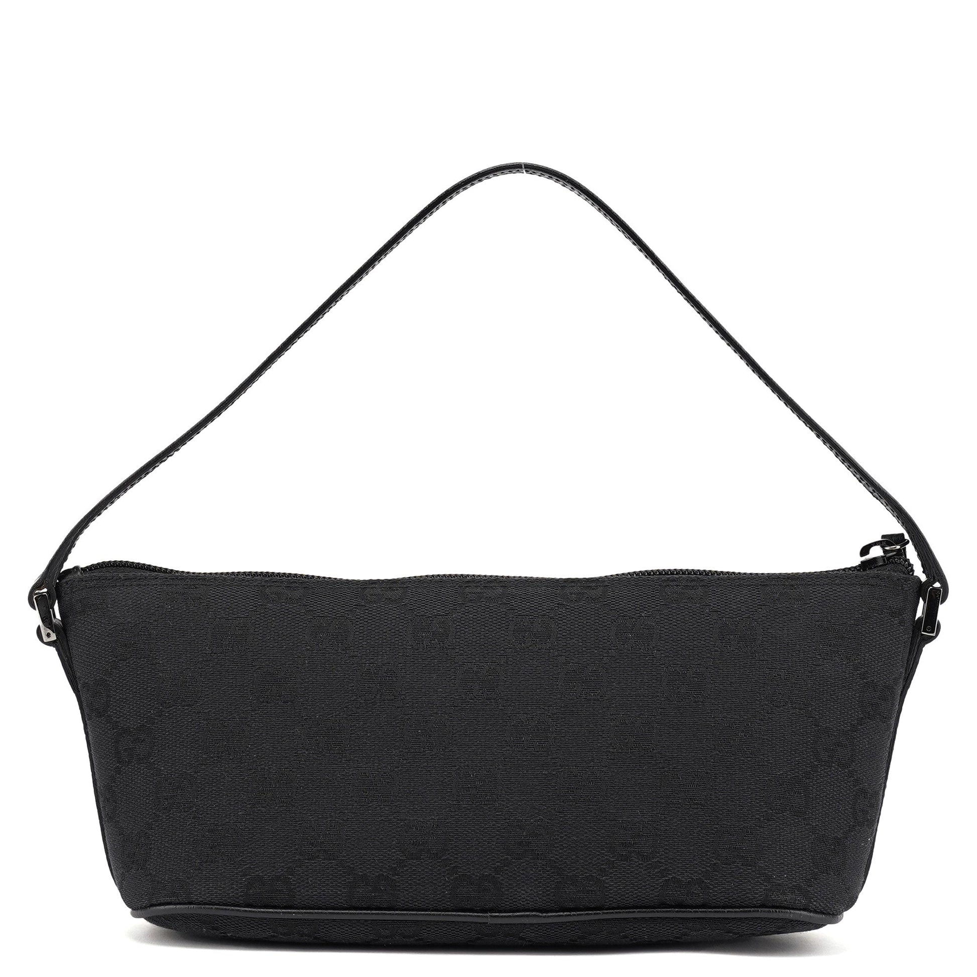 Explore timeless elegance with the Gucci GG Boat Pochette by Tom Ford, circa late 1990s. This exquisite piece combines black GG canvas with tonal leather trim and silver-tone hardware. Its secure zip closure and satin-lined interior offer luxury and practicality, while the subtle Gucci plaque adds a touch of heritage.