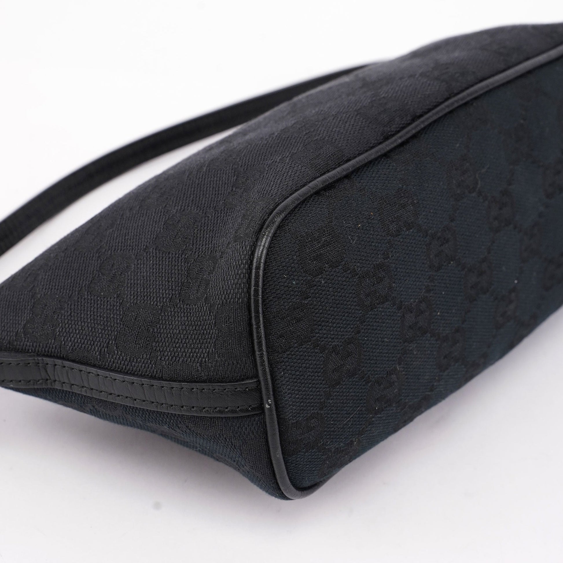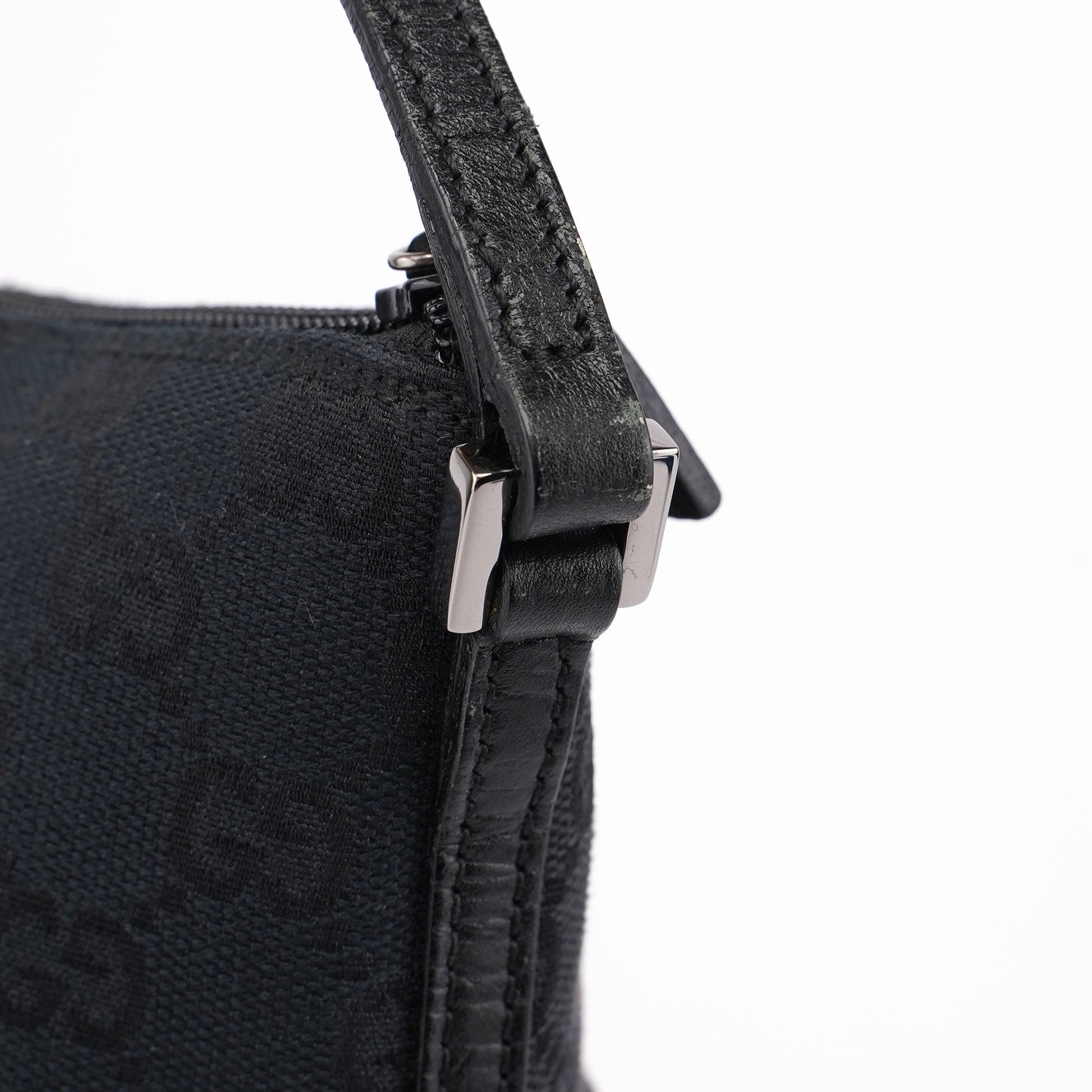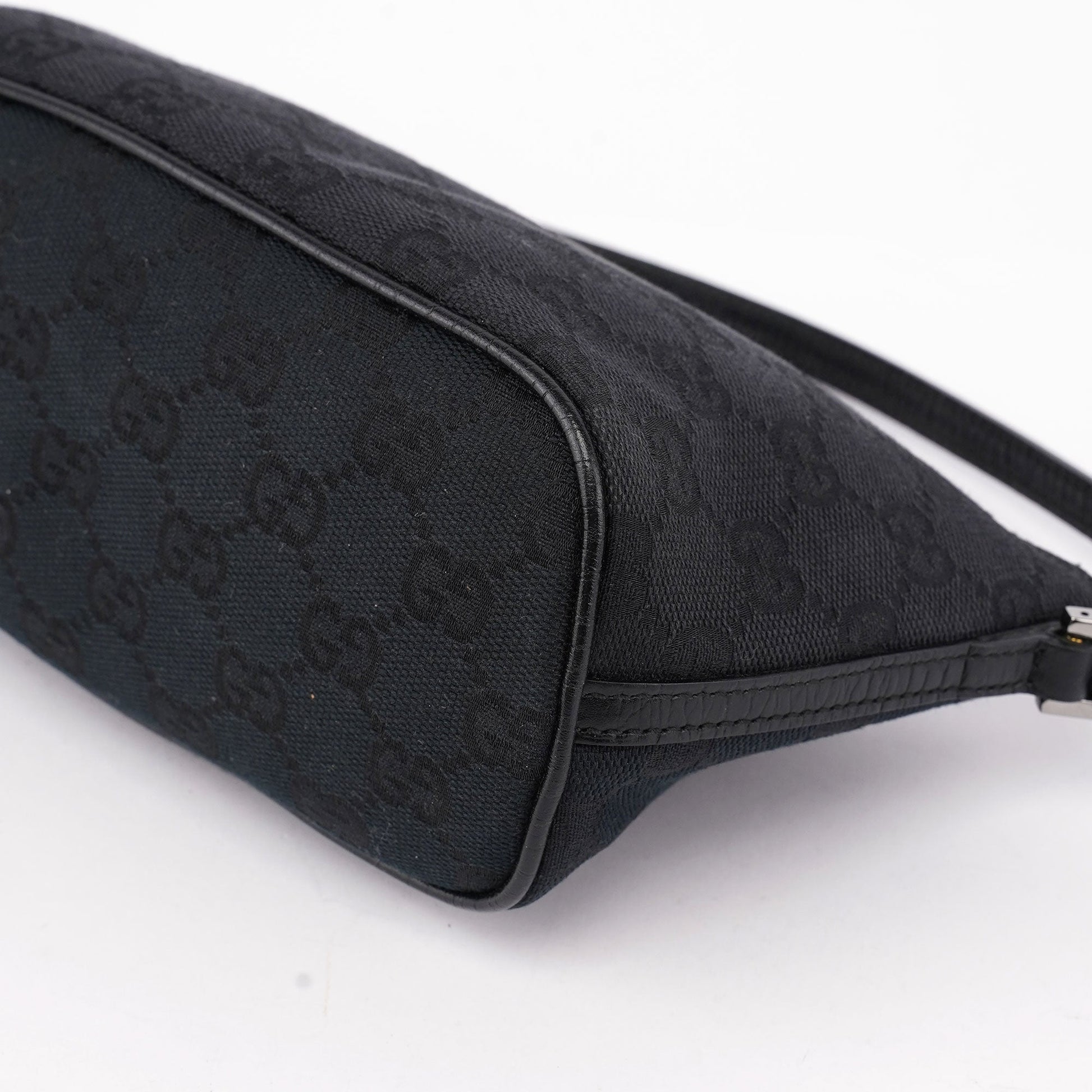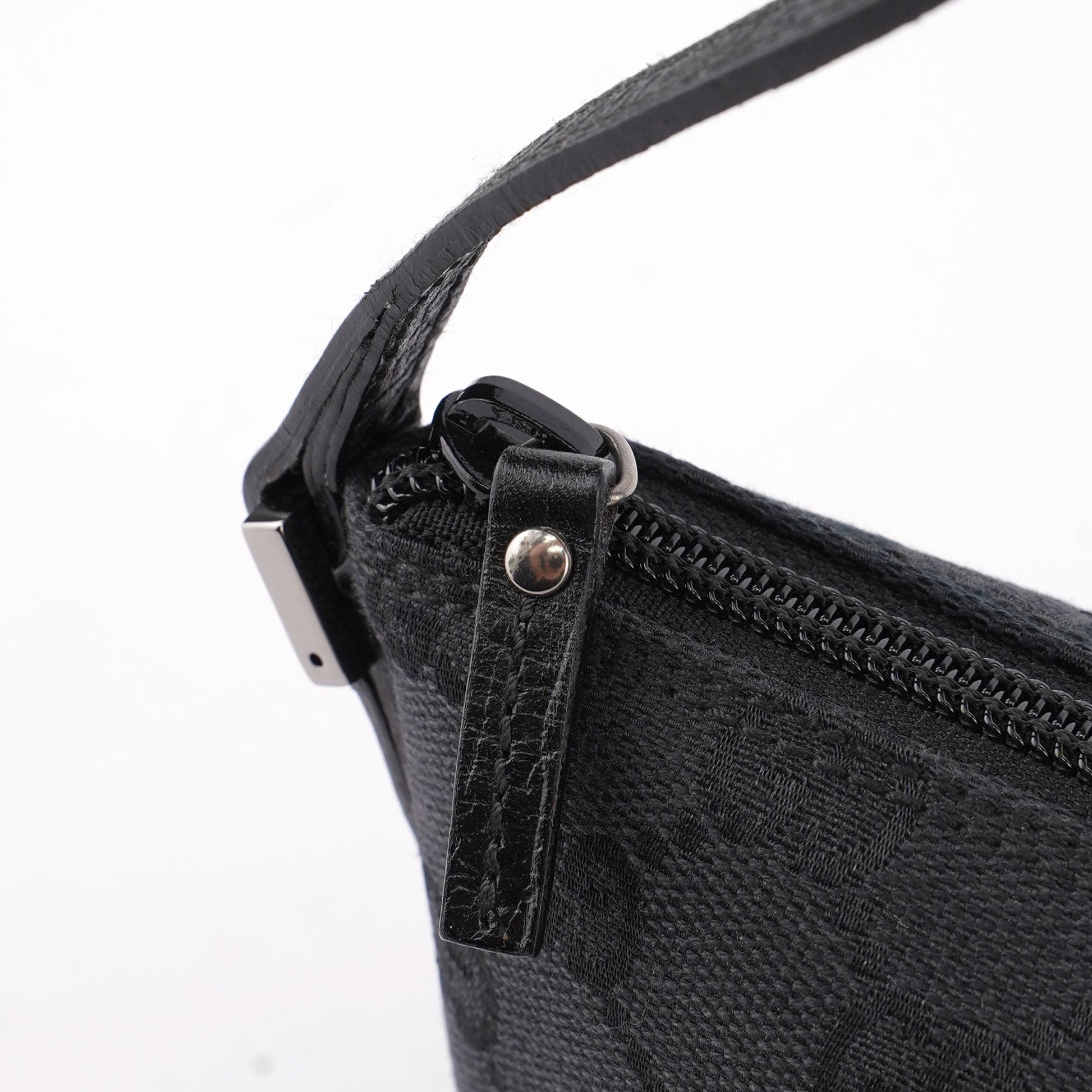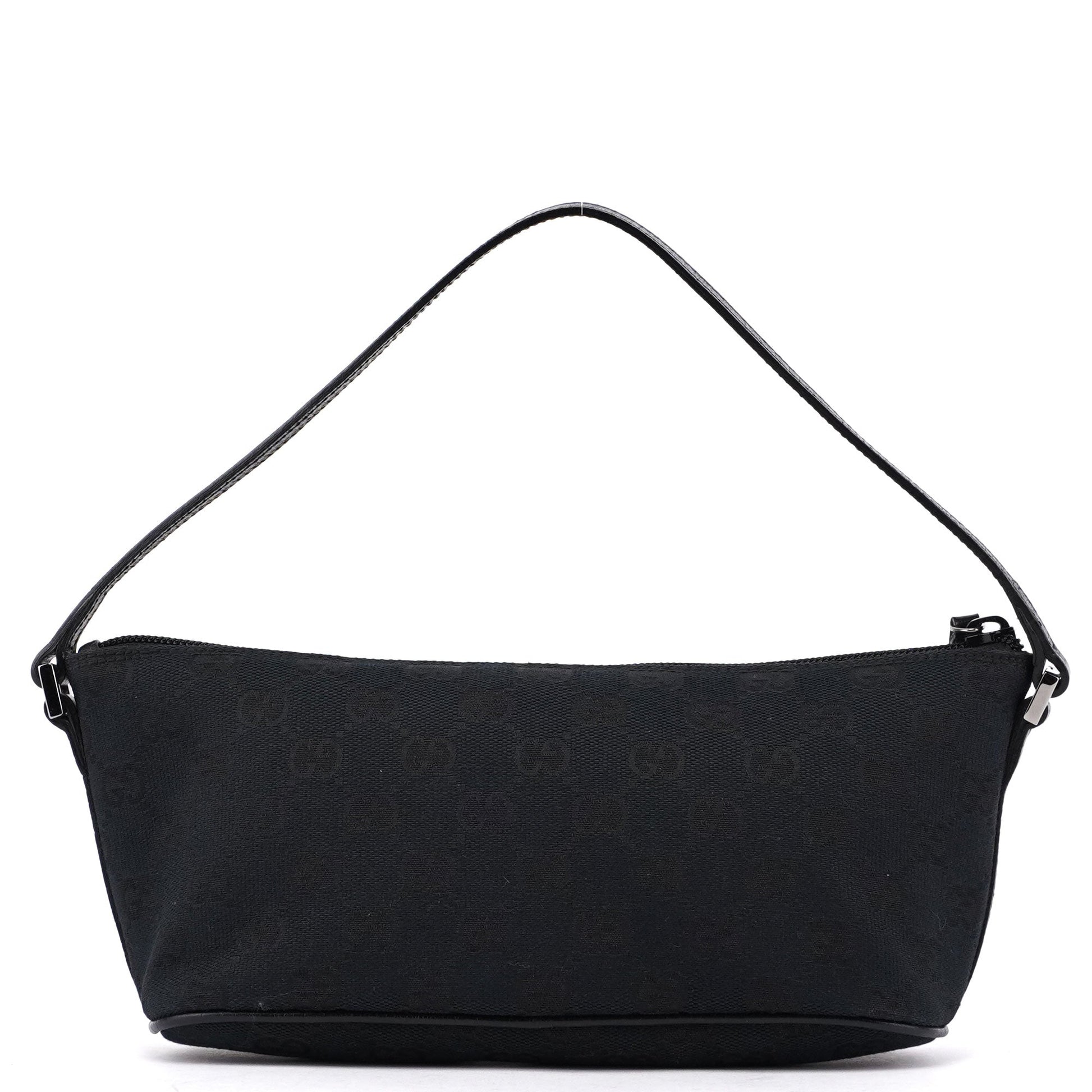 Explore timeless elegance with the Gucci GG Boat Pochette by Tom Ford, circa late 1990s. This exquisite piece combines black GG canvas with tonal leather trim and silver-tone hardware. Its secure zip closure and satin-lined interior offer luxury and practicality, while the subtle Gucci plaque adds a touch of heritage.