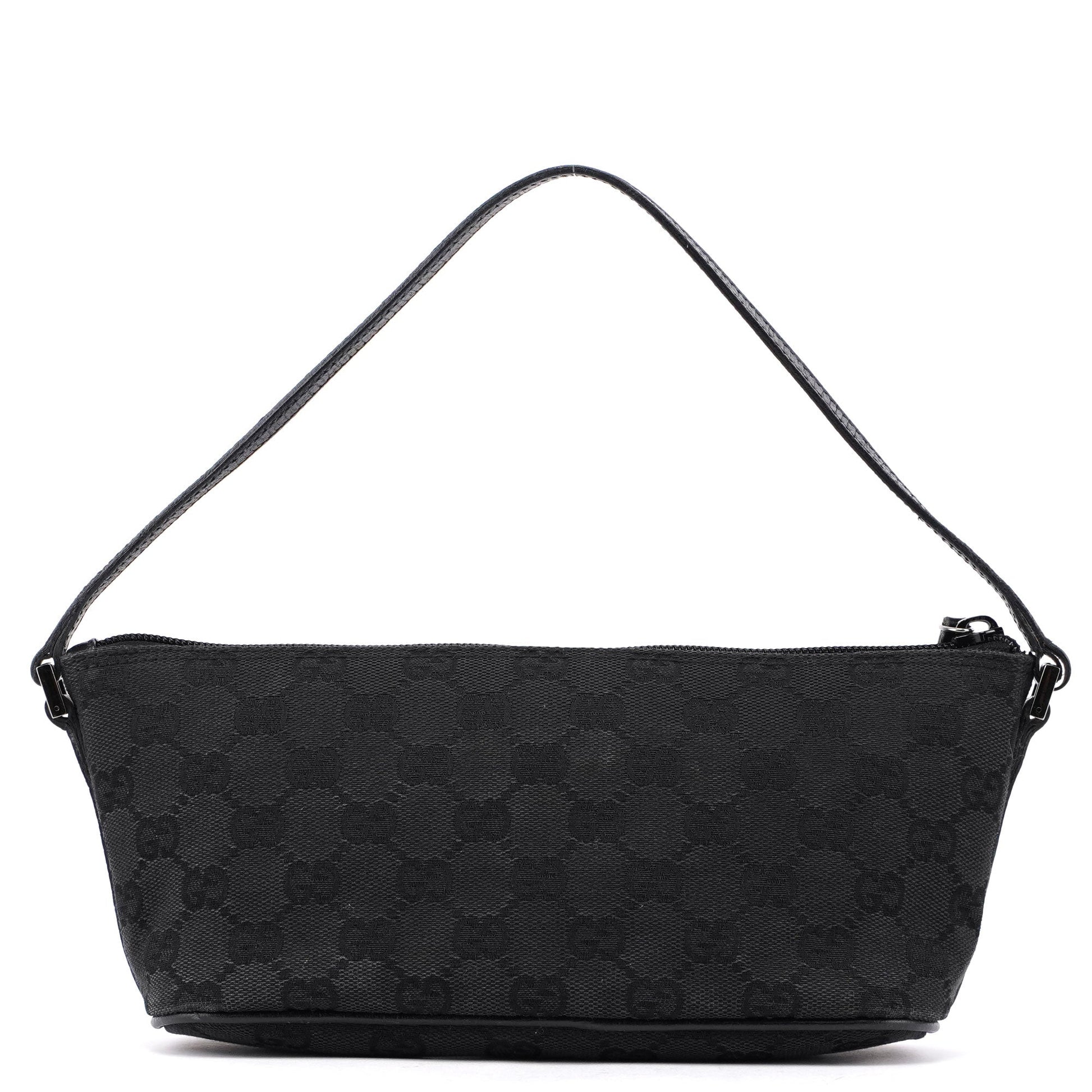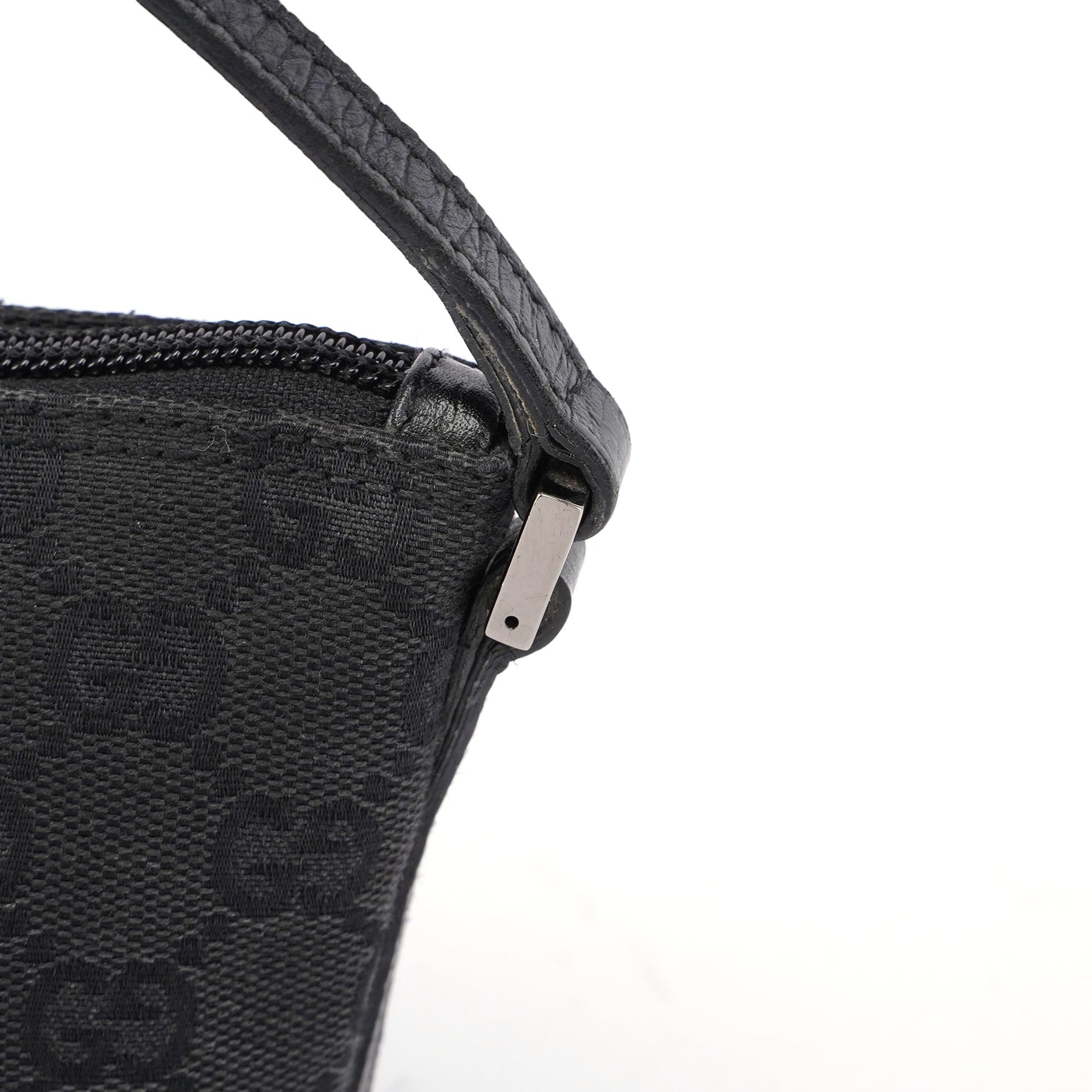 Explore timeless elegance with the Gucci GG Boat Pochette by Tom Ford, circa late 1990s. This exquisite piece combines black GG canvas with tonal leather trim and silver-tone hardware. Its secure zip closure and satin-lined interior offer luxury and practicality, while the subtle Gucci plaque adds a touch of heritage.
