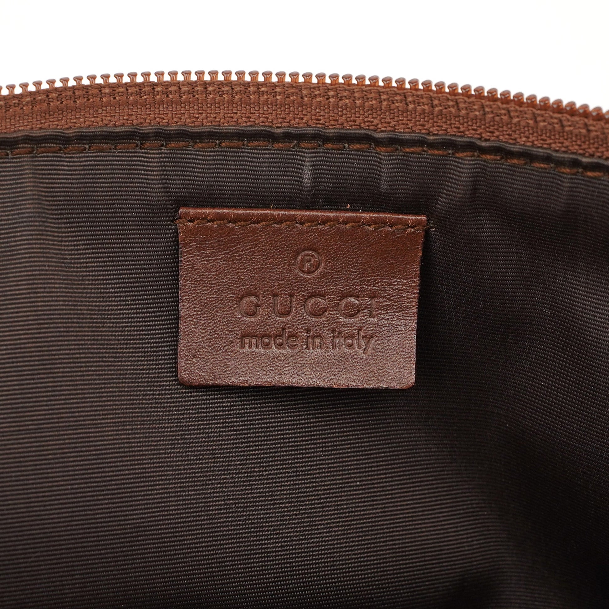 Explore timeless elegance with the Gucci GG Boat Pochette by Tom Ford, circa late 1990s. This exquisite piece combines brown GG monogram with tonal leather trim and silver-tone hardware. Its secure zip closure and satin-lined interior offer luxury and practicality, while the subtle Gucci plaque adds a touch of heritage.