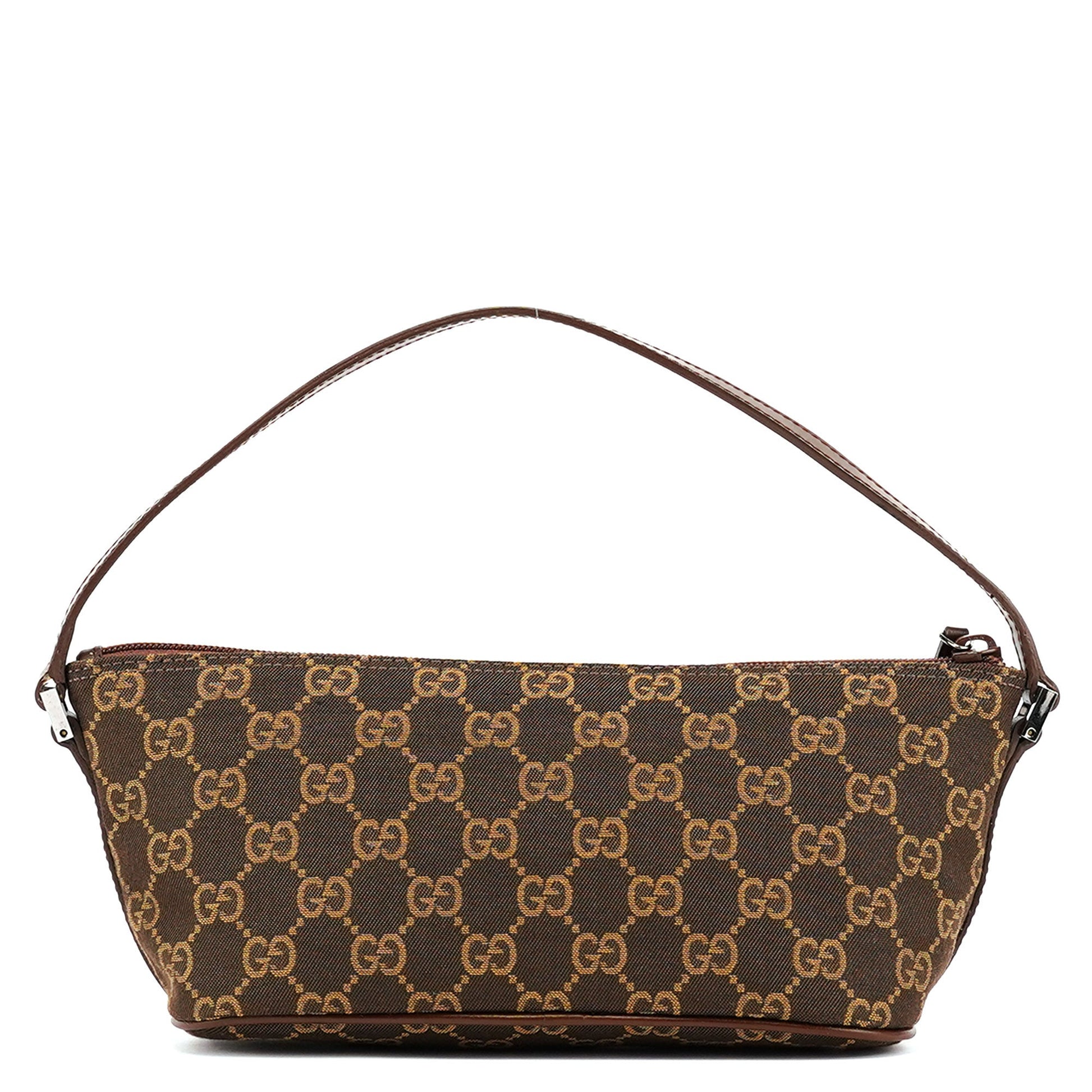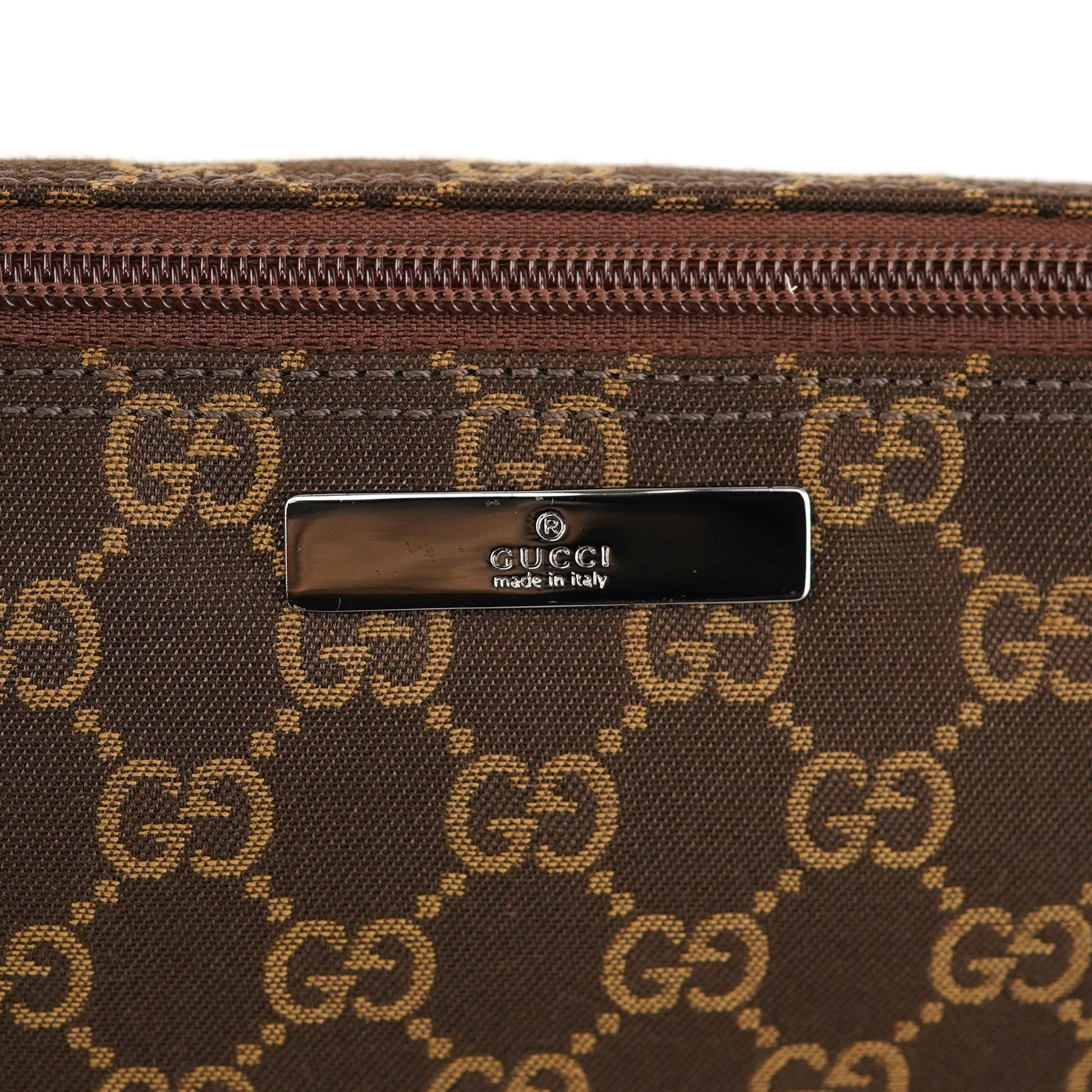 Explore timeless elegance with the Gucci GG Boat Pochette by Tom Ford, circa late 1990s. This exquisite piece combines beige GG canvas with brown leather trim and silver-tone hardware. Its secure zip closure and satin-lined interior offers luxury and practicality, while the subtle Gucci plaque adds a touch of heritage.