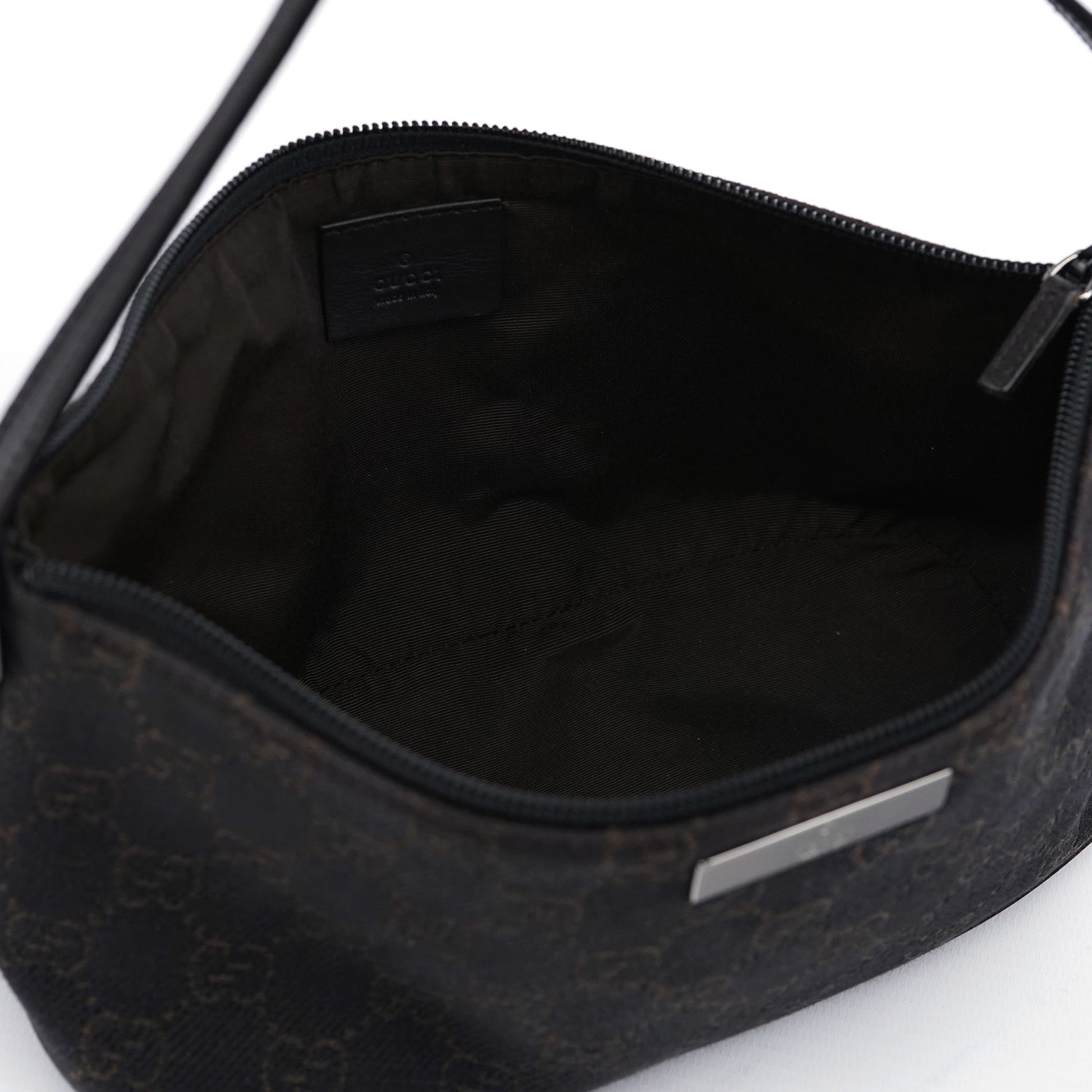 Explore timeless elegance with the Gucci GG Boat Pochette by Tom Ford, circa late 1990s. This exquisite piece combines brown GG monogram with tonal leather trim and silver-tone hardware. Its secure zip closure and satin-lined interior offer luxury and practicality, while the subtle Gucci plaque adds a touch of heritage.