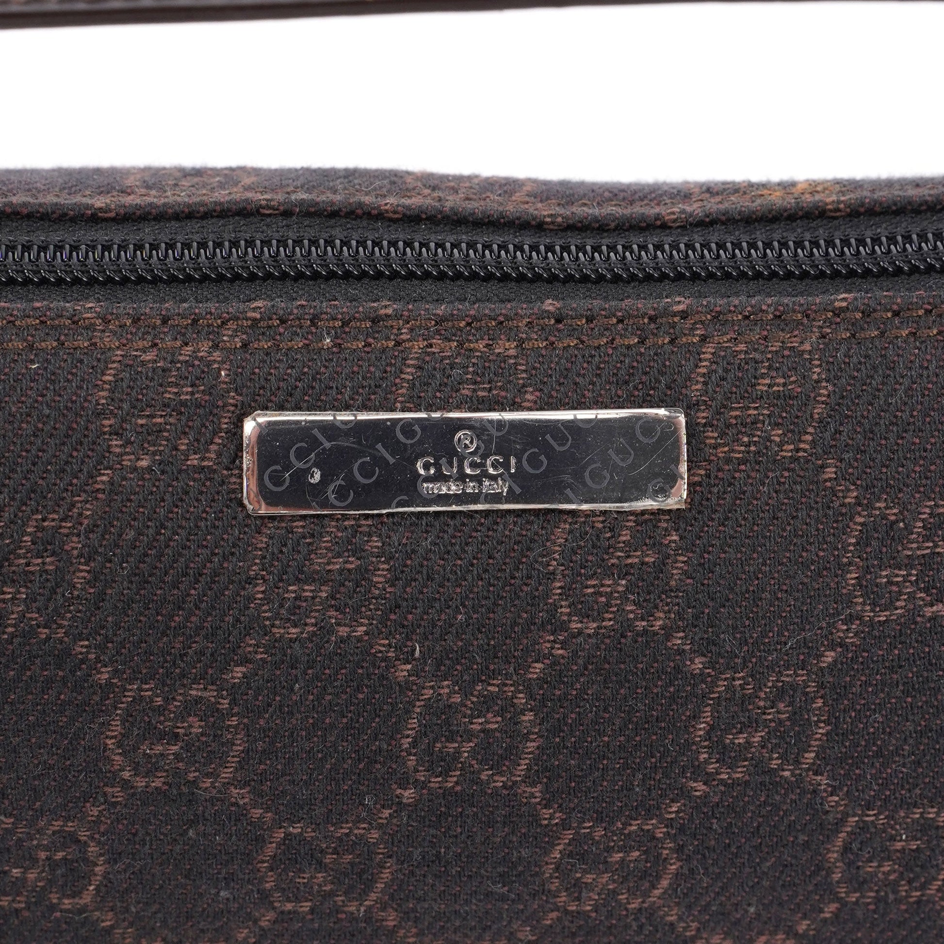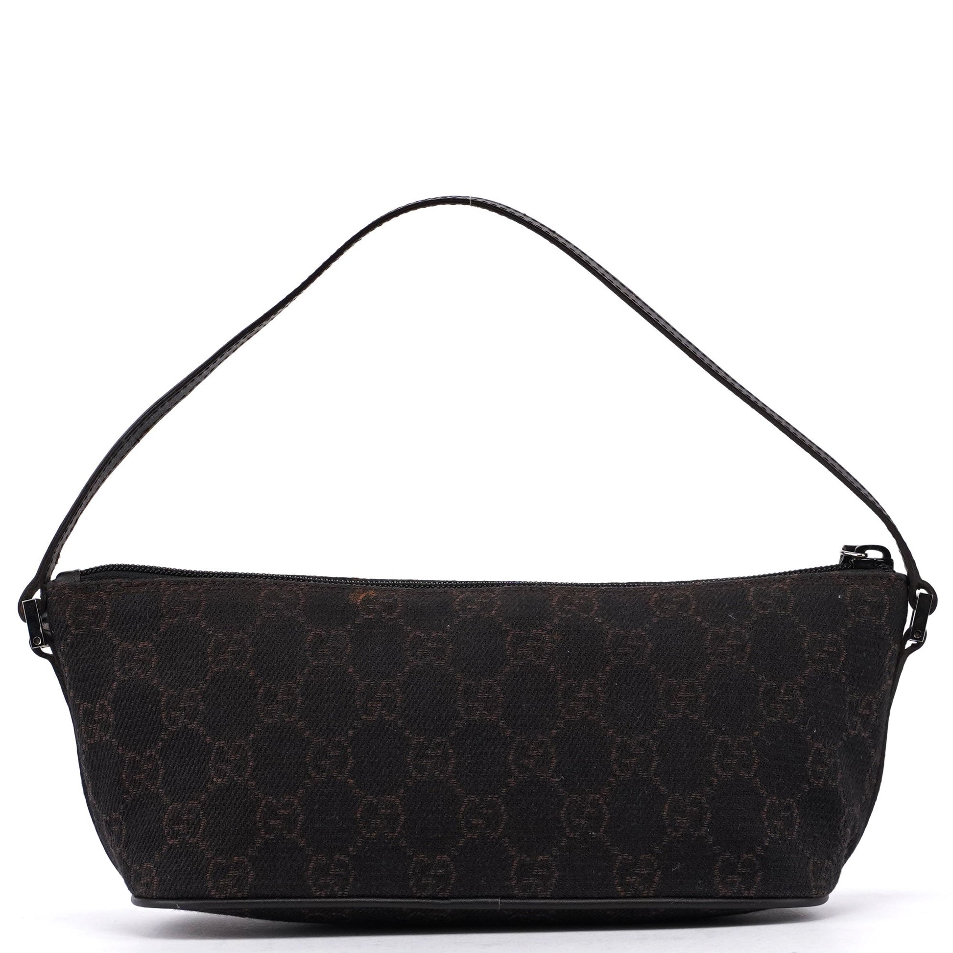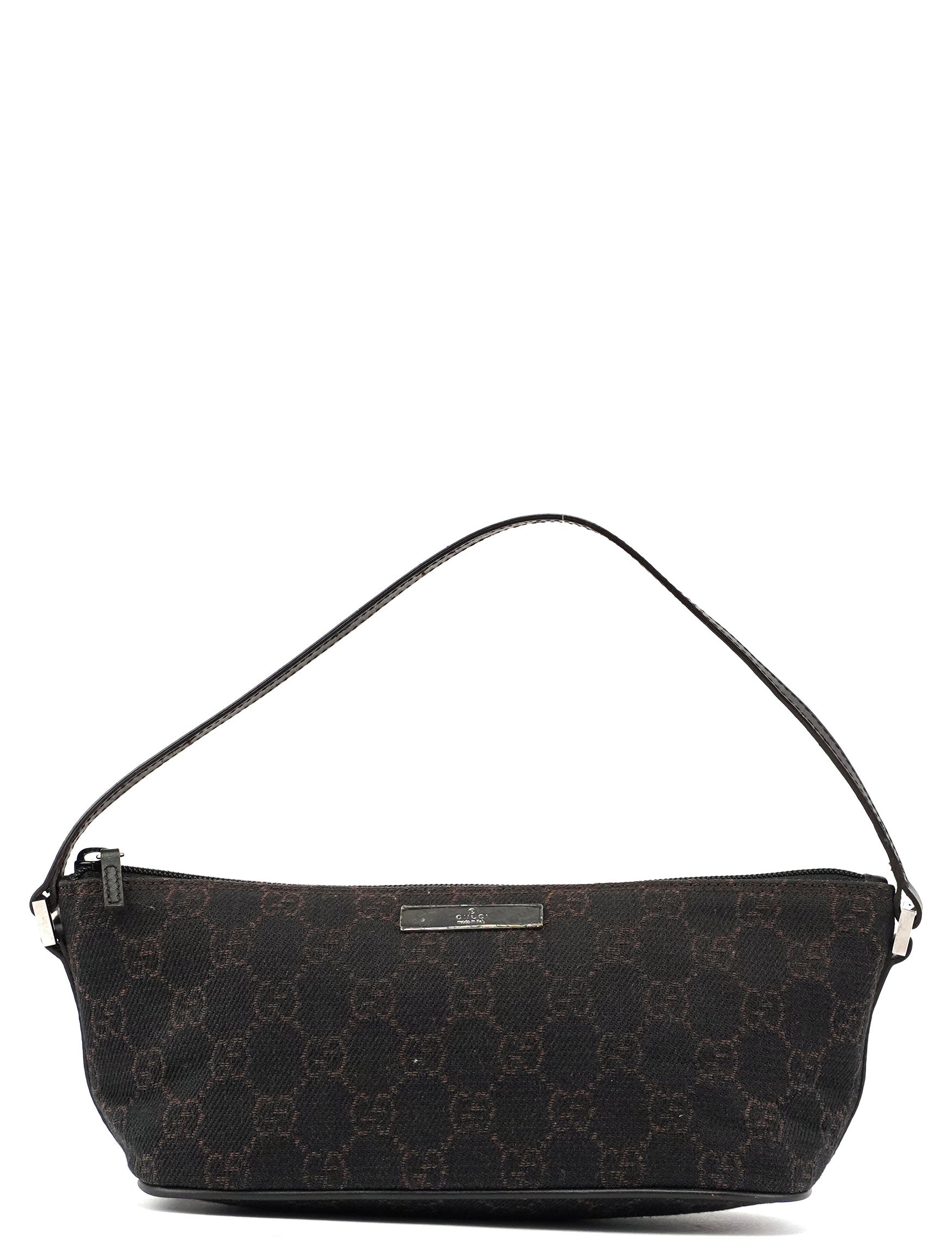 Explore timeless elegance with the Gucci GG Boat Pochette by Tom Ford, circa late 1990s. This exquisite piece combines brown GG canvas with tonal leather trim and silver-tone hardware. Its secure zip closure and satin-lined interior offer luxury and practicality, while the subtle Gucci plaque adds a touch of heritage. A perfect blend of vintage charm and sophistication.