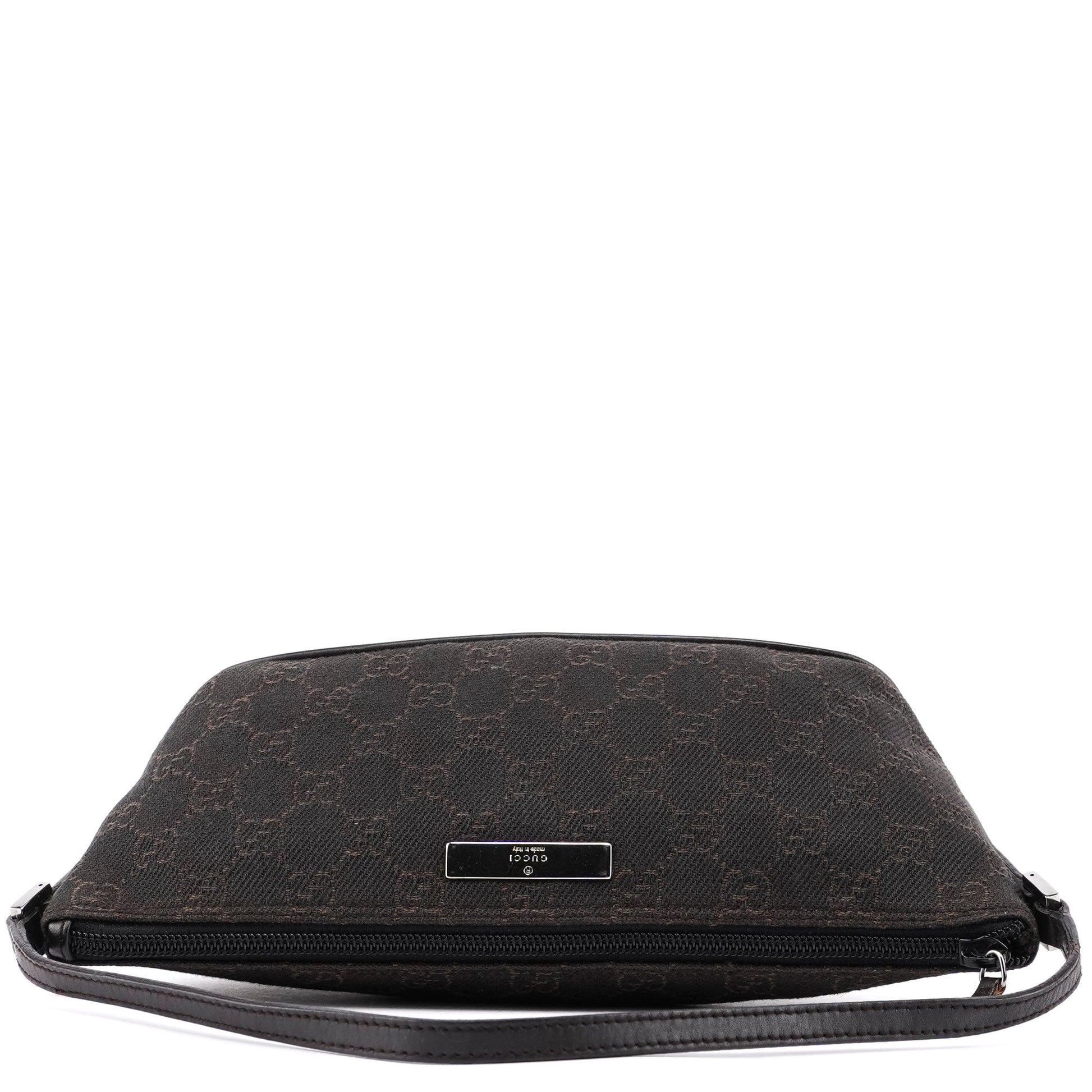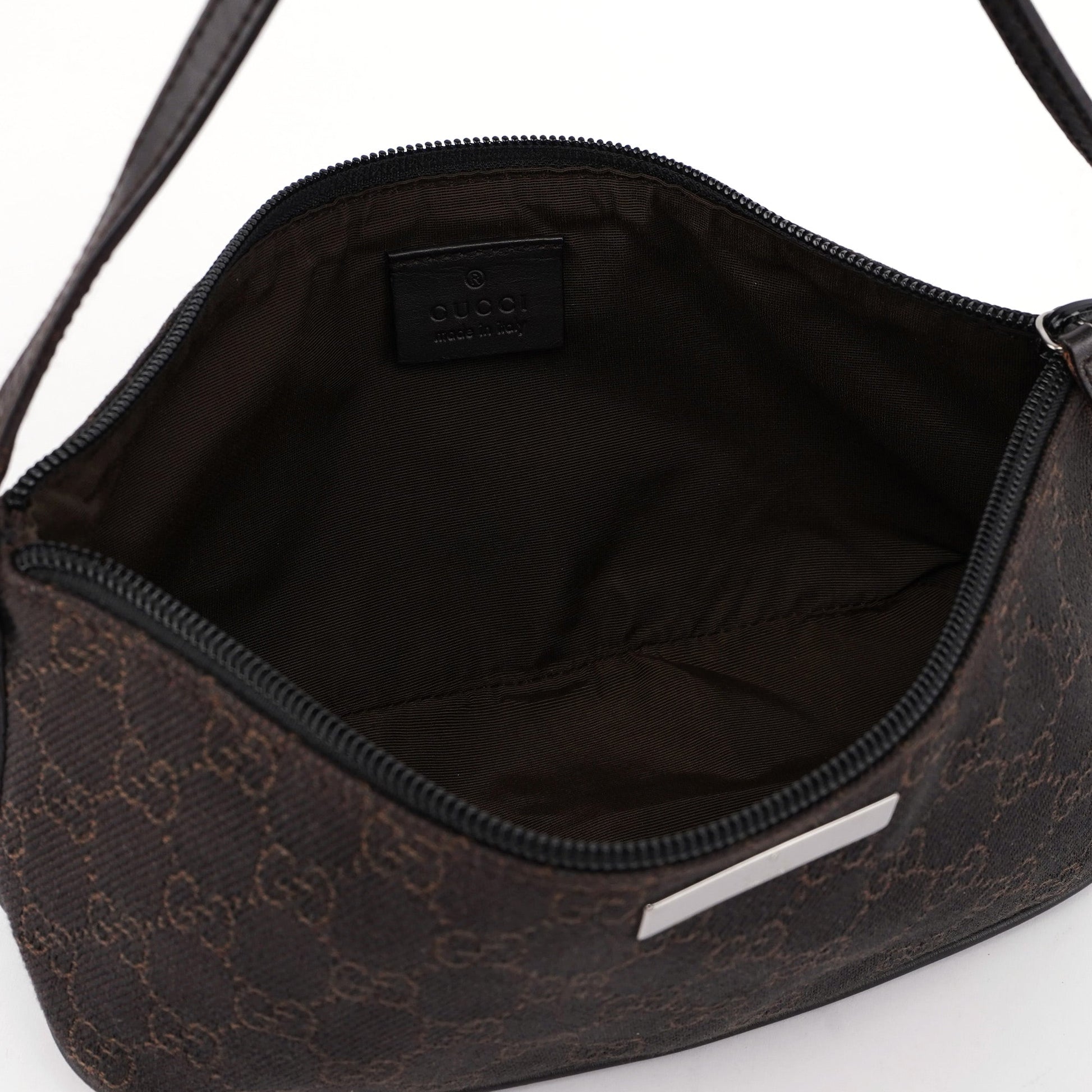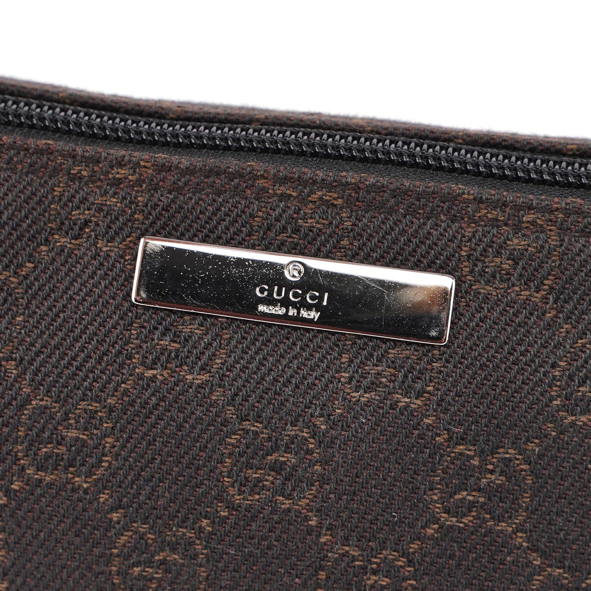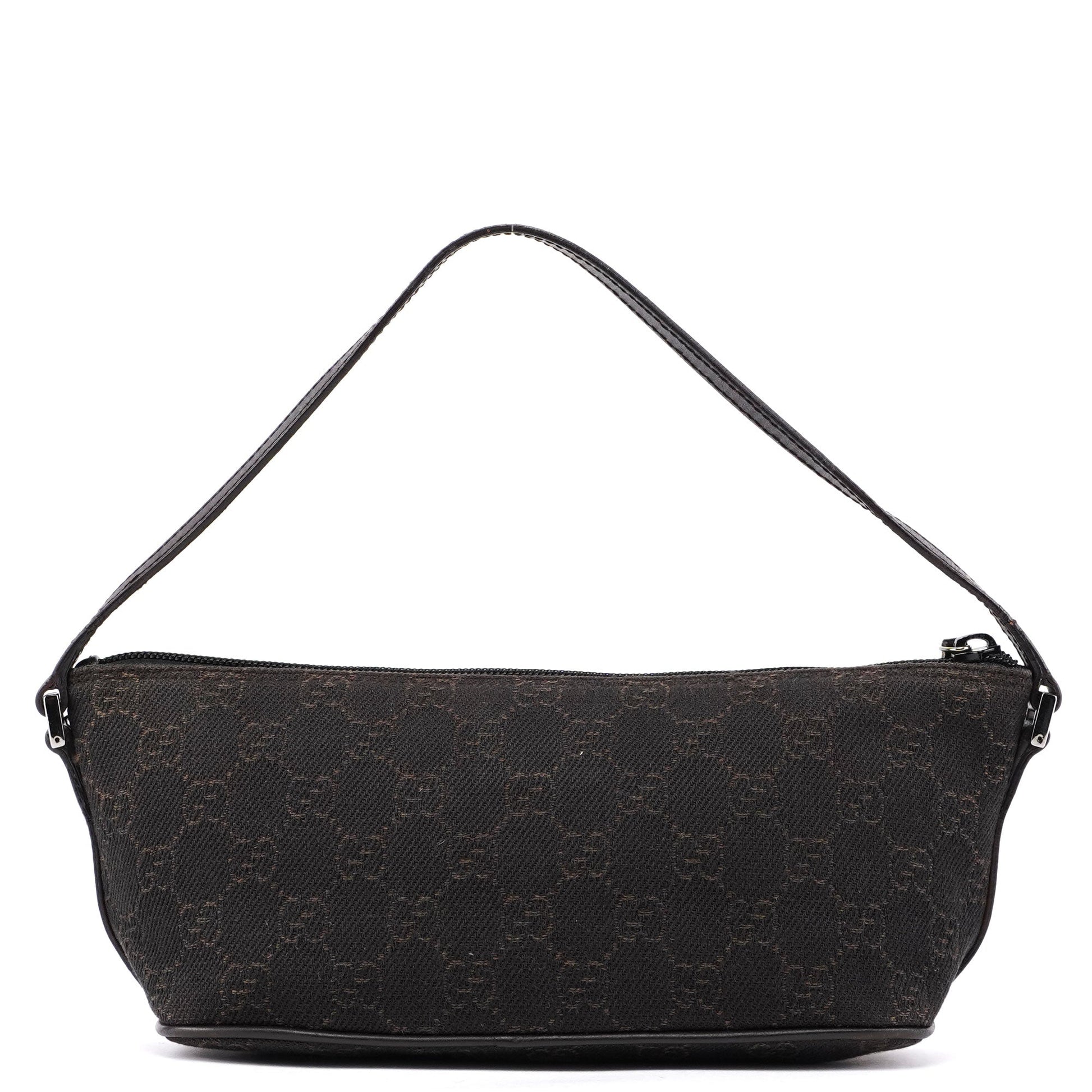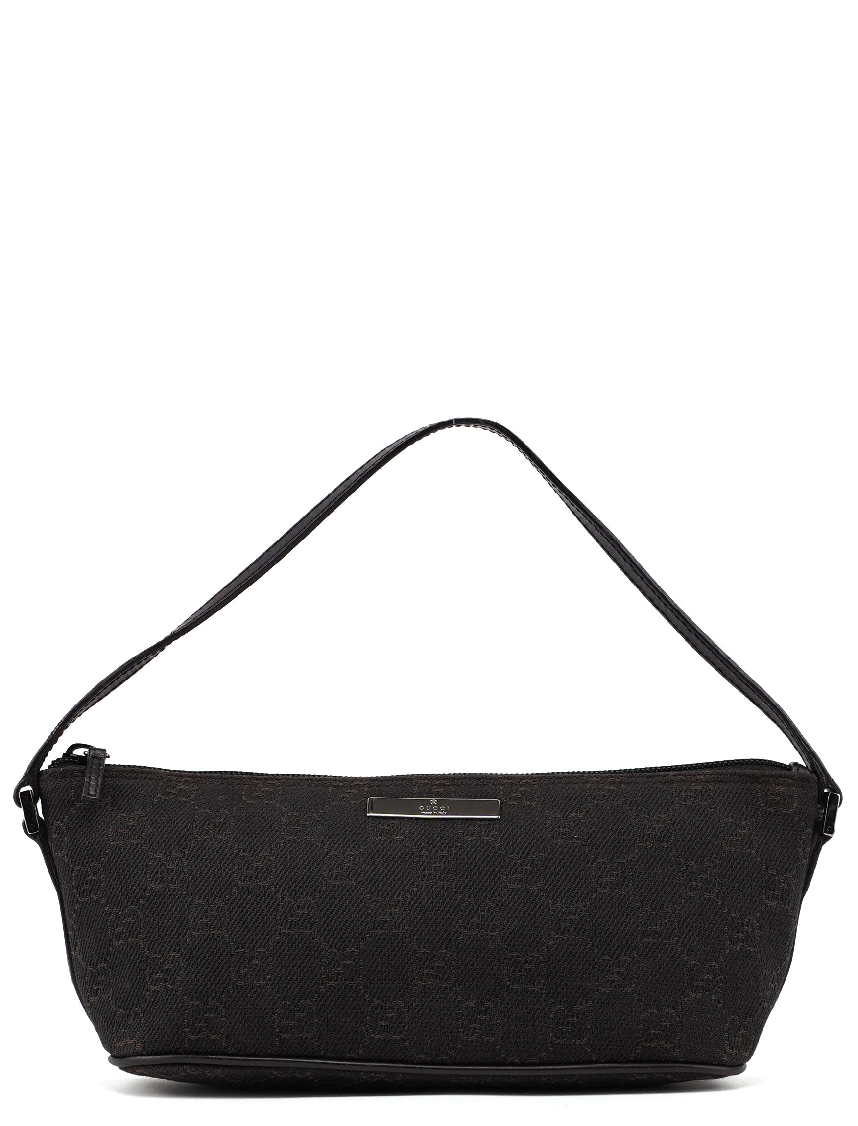 Explore timeless elegance with the Gucci GG Boat Pochette by Tom Ford, circa late 1990s. This exquisite piece combines brown GG canvas with tonal leather trim and silver-tone hardware. Its secure zip closure and satin-lined interior offer luxury and practicality, while the subtle Gucci plaque adds a touch of heritage. A perfect blend of vintage charm and sophistication.