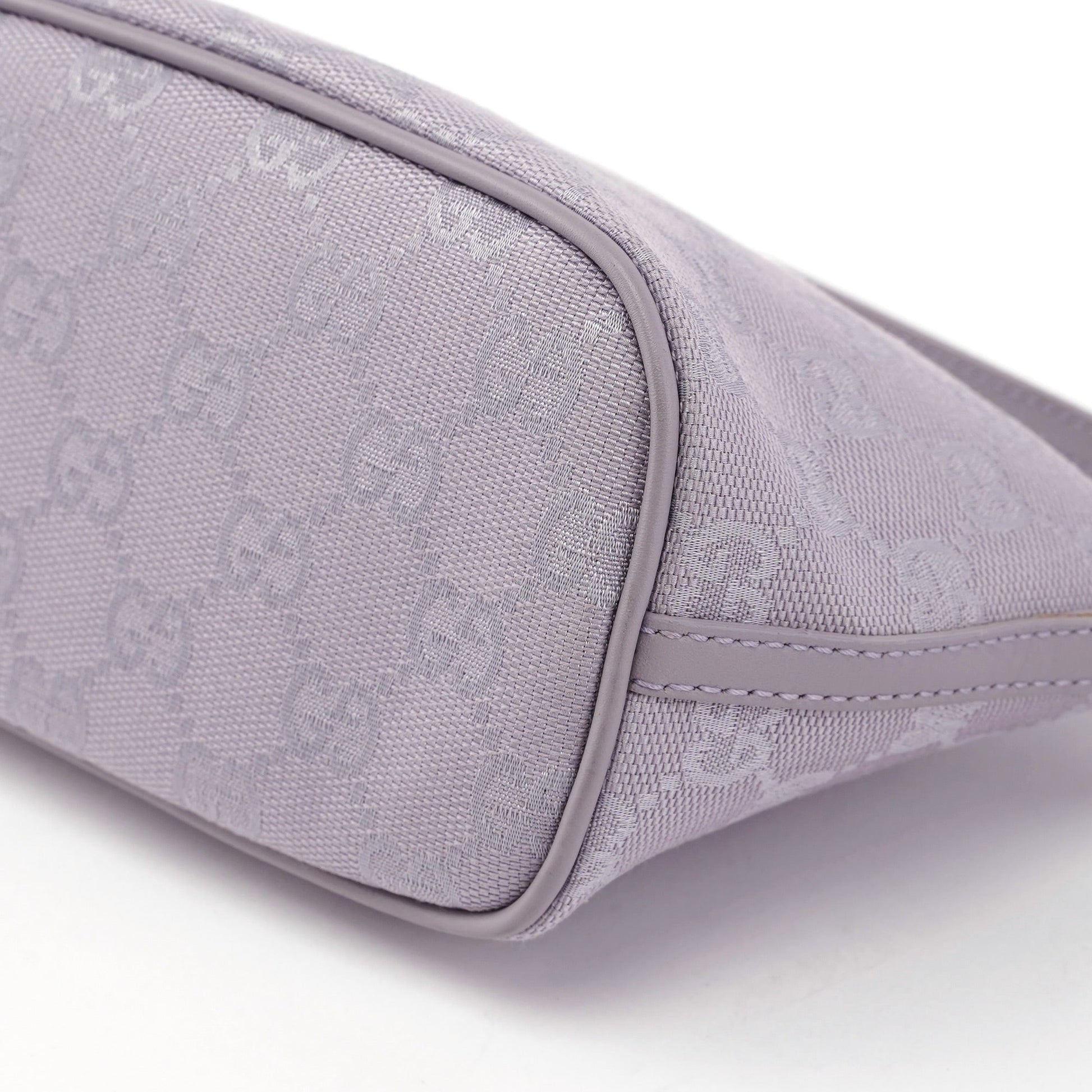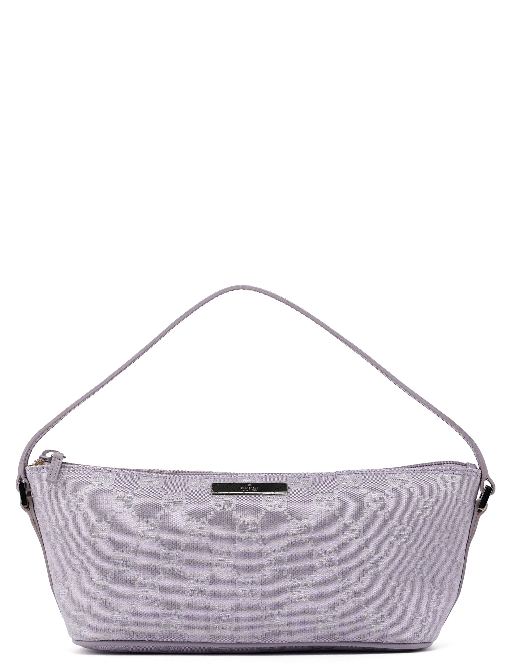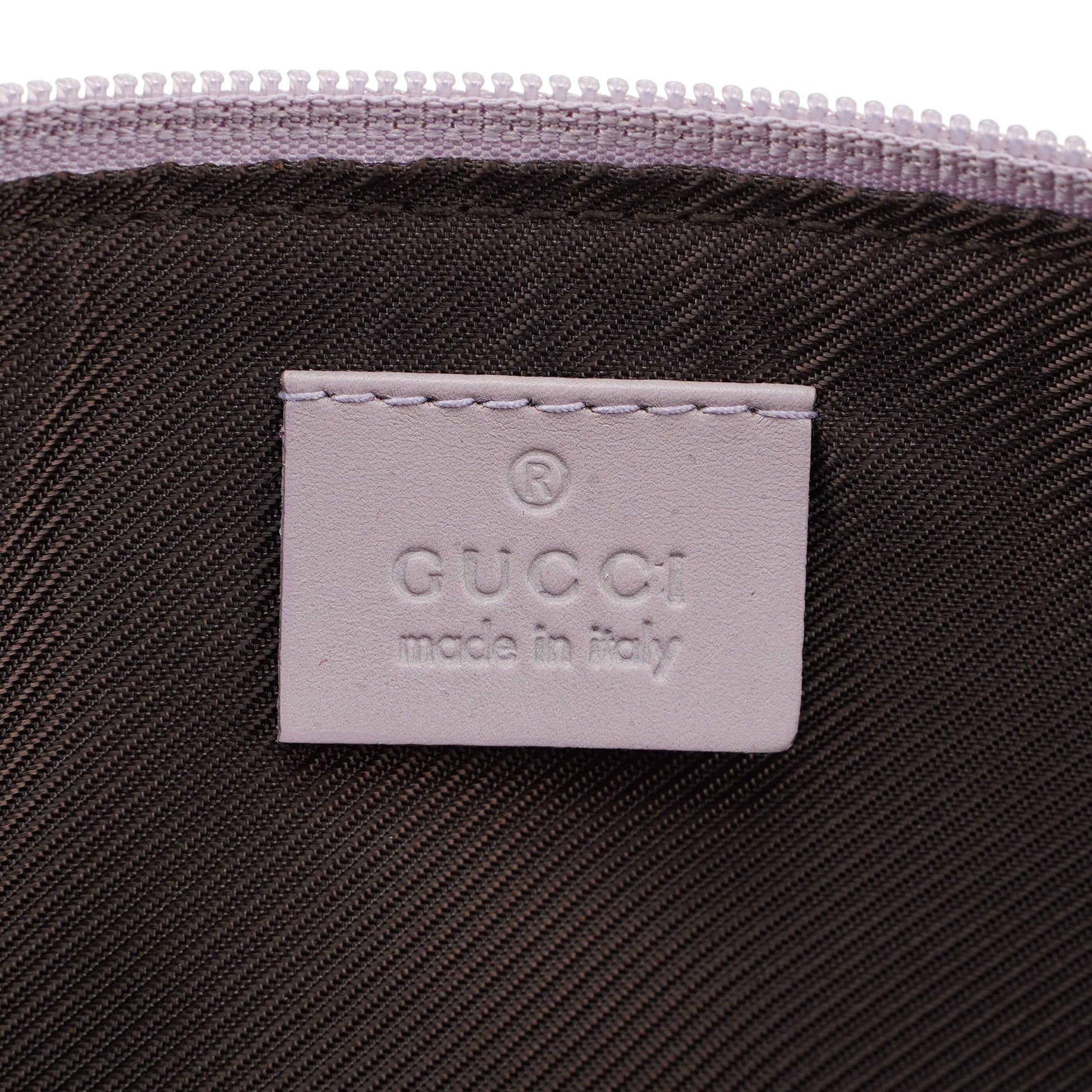 Explore timeless elegance with the Gucci GG Boat Pochette by Tom Ford, circa late 1990s. This exquisite piece combines lavender GG canvas with tonal leather trim and silver-tone hardware. Its secure zip closure and satin-lined interior offer luxury and practicality, while the subtle Gucci plaque adds a touch of heritage. A perfect blend of vintage charm and sophistication.