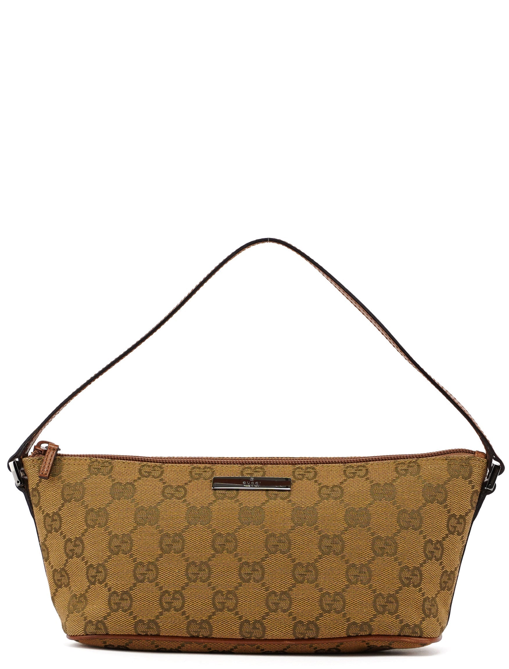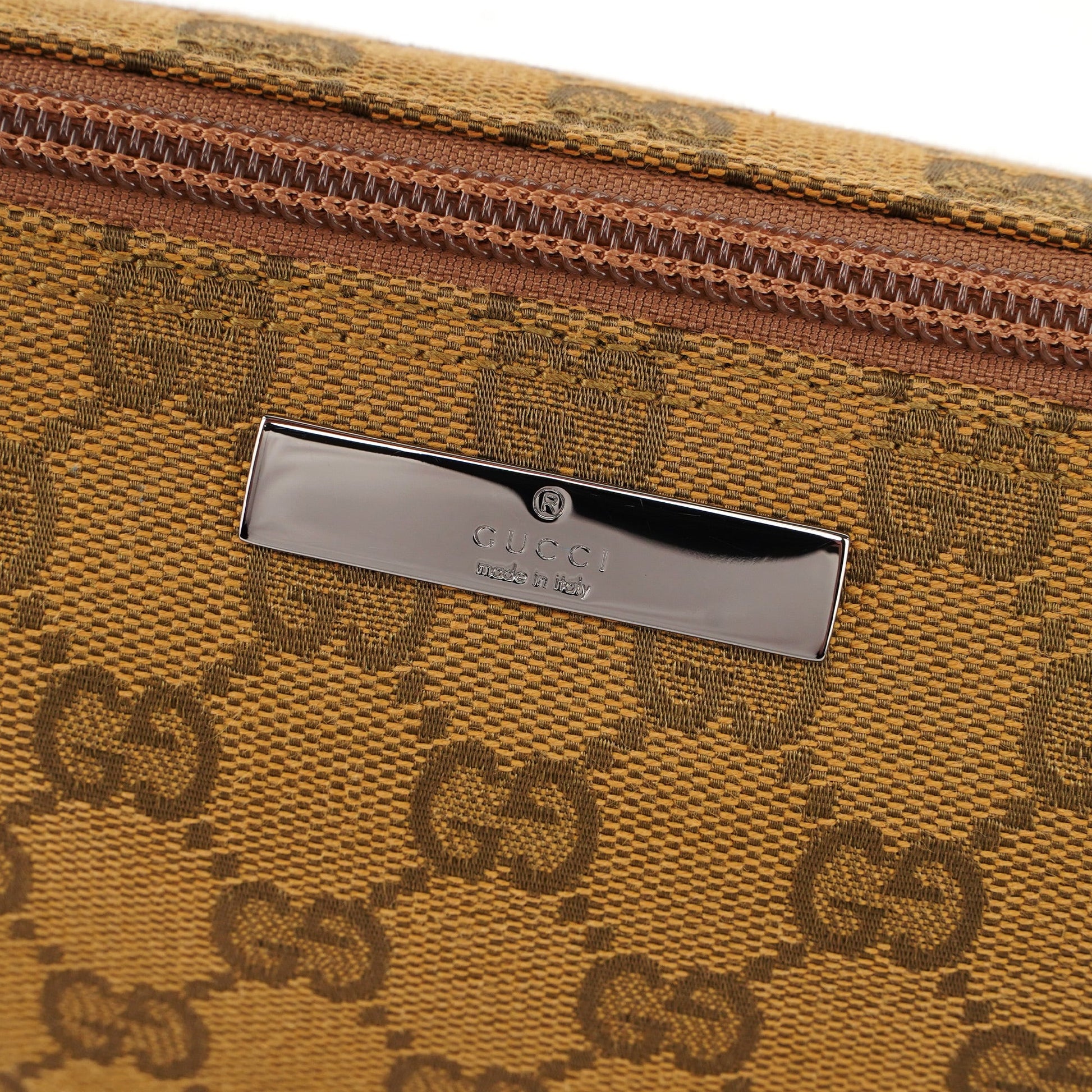 Explore timeless elegance with the Gucci GG Boat Pochette by Tom Ford, circa late 1990s. This exquisite piece combines light brown GG canvas with tonal dark brown trim and silver-tone hardware. Its secure zip closure and satin-lined interior offer luxury and practicality, while the subtle Gucci plaque adds a touch of heritage.