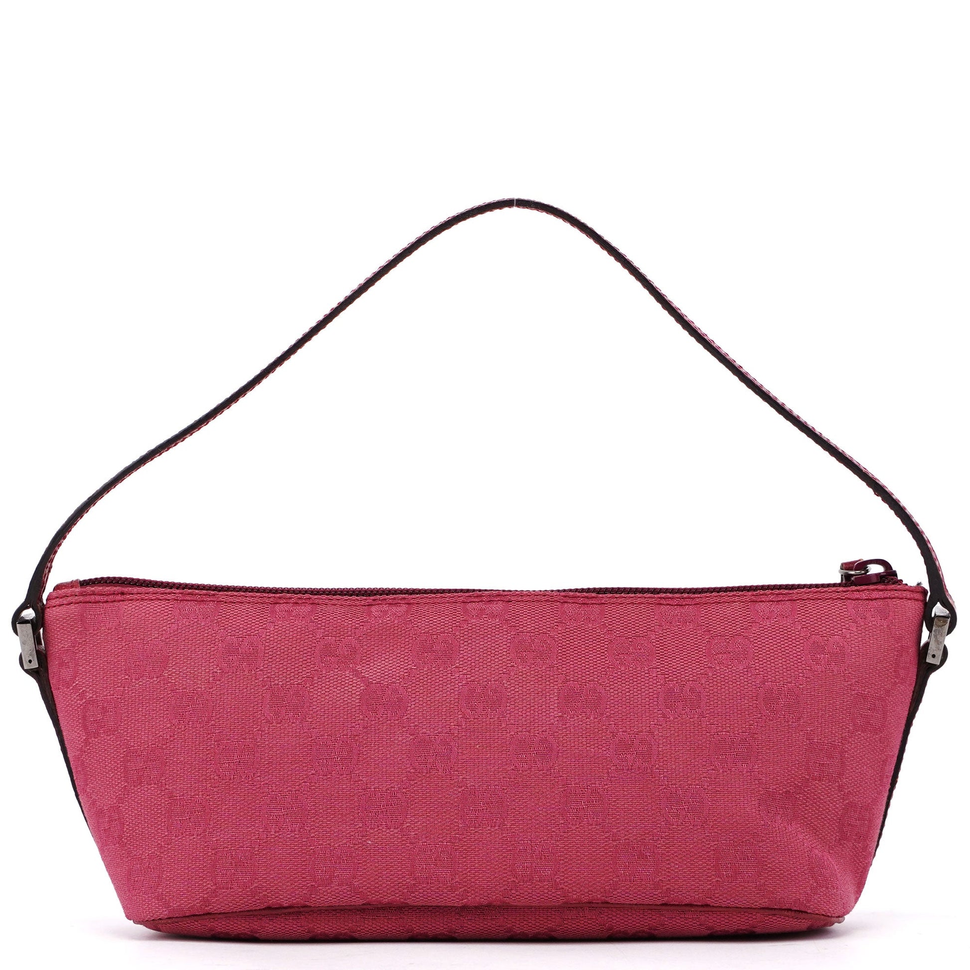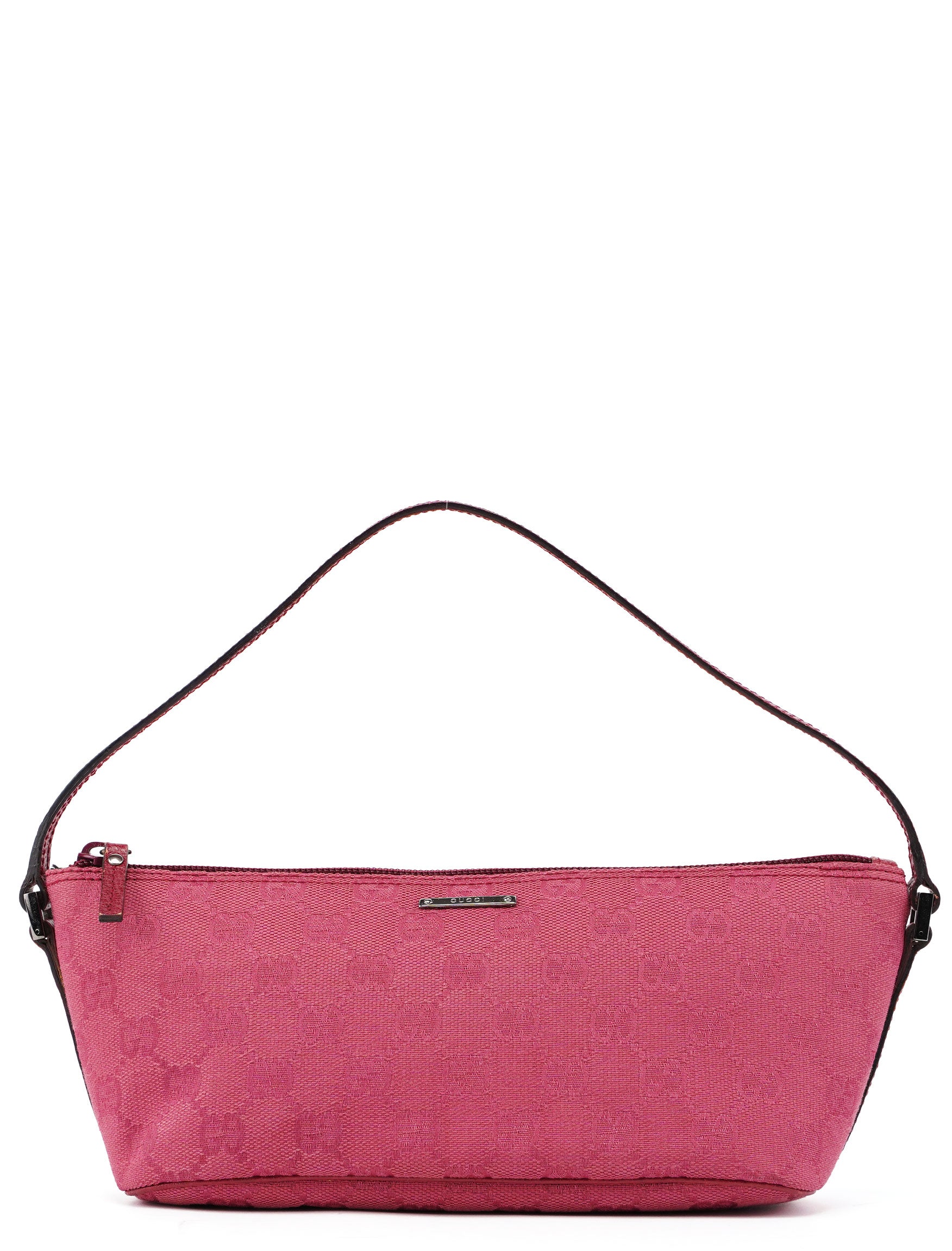 Explore timeless elegance with the Gucci GG Boat Pochette by Tom Ford, circa late 1990s. This exquisite piece combines pink GG canvas with tonal leather trim and silver-tone hardware. Its secure zip closure and satin-lined interior offer luxury and practicality, while the subtle Gucci plaque adds a touch of heritage.