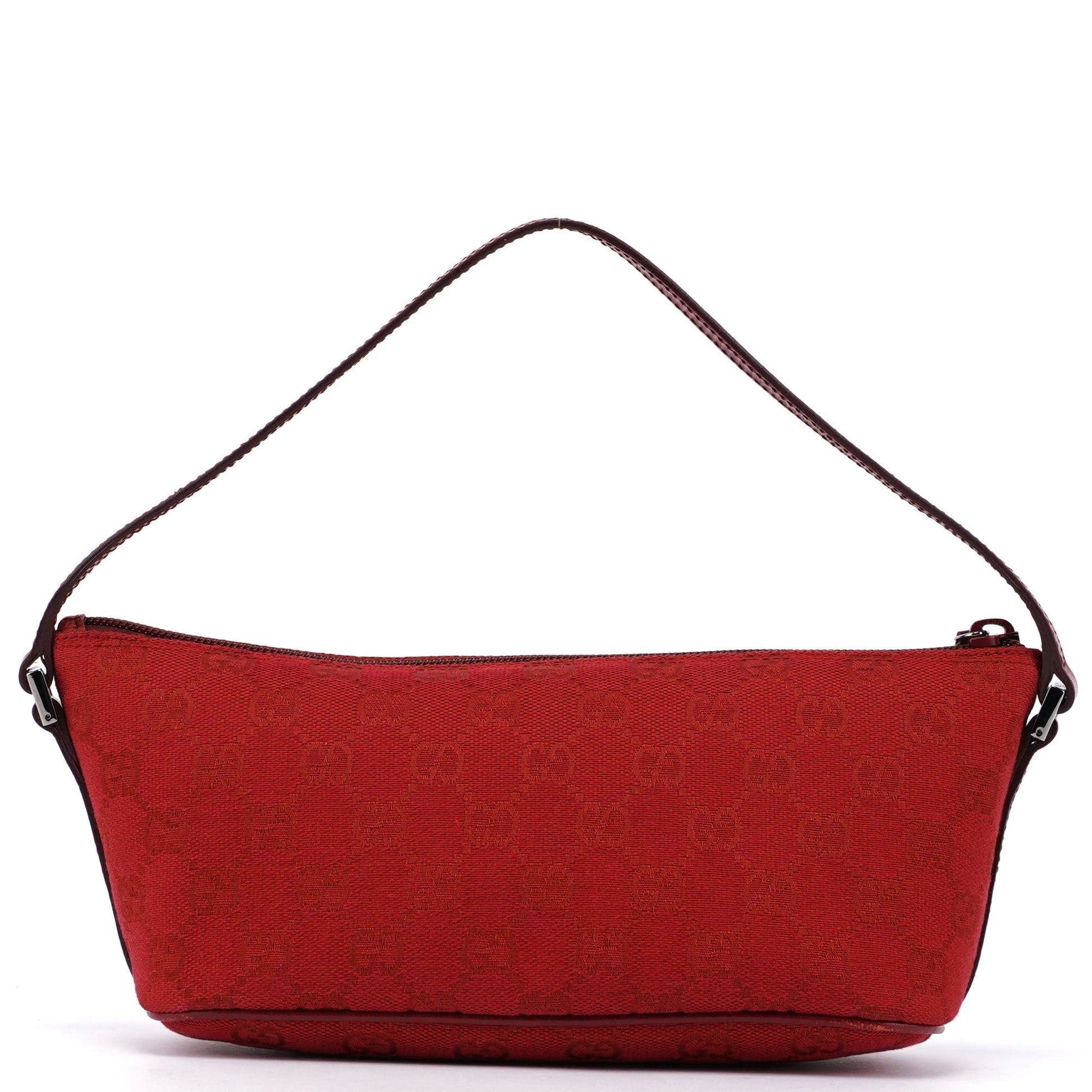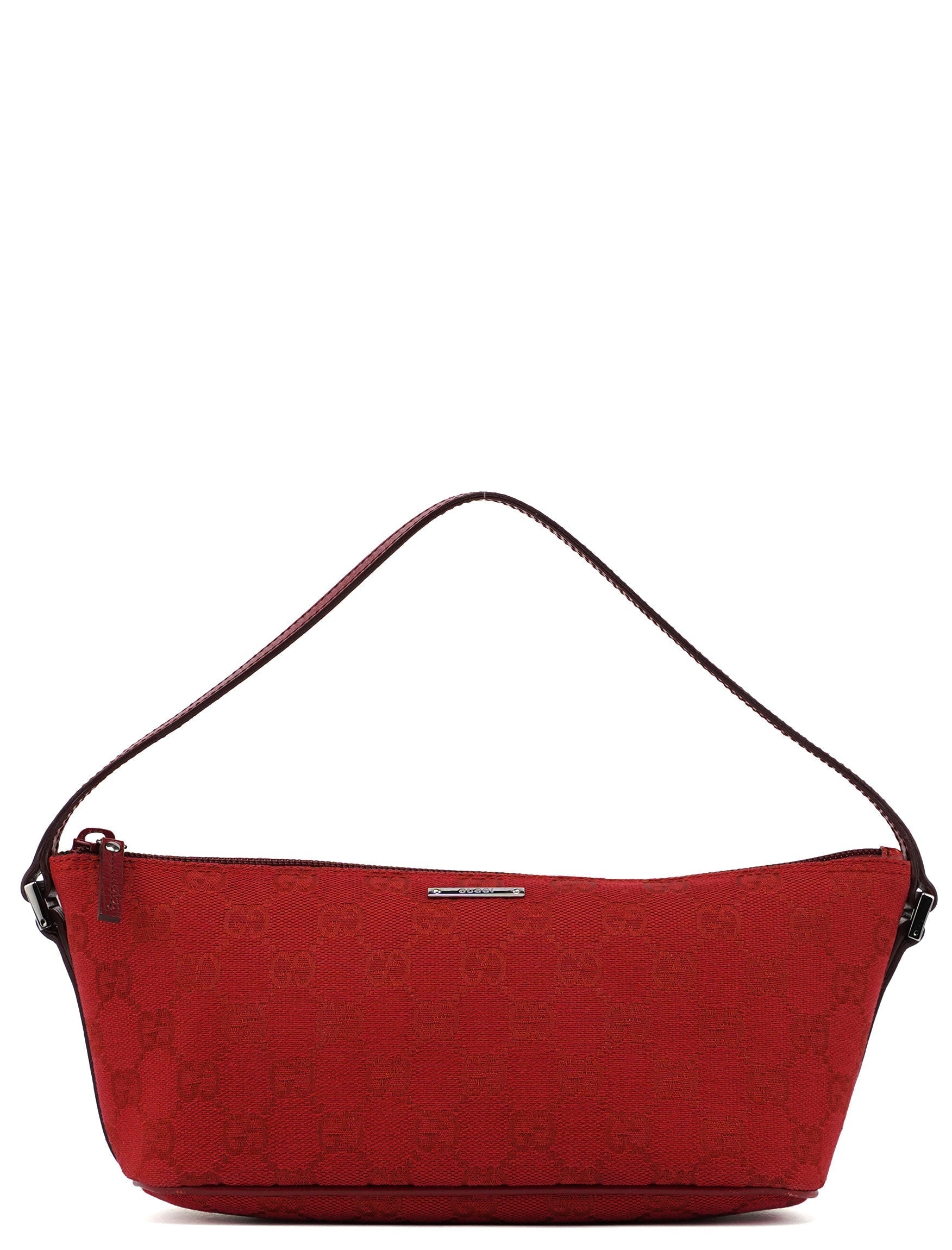 Explore timeless elegance with the Gucci GG Boat Pochette by Tom Ford, circa late 1990s. This exquisite piece combines red GG canvas with tonal leather trim and silver-tone hardware. Its secure zip closure and satin-lined interior offer luxury and practicality, while the subtle Gucci plaque adds a touch of heritage. A perfect blend of vintage charm and sophistication.