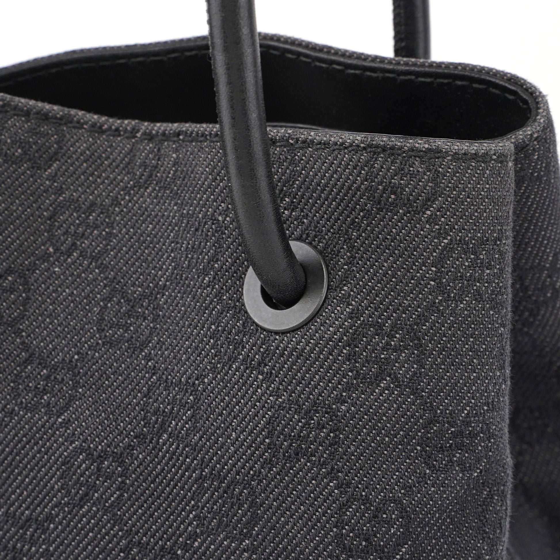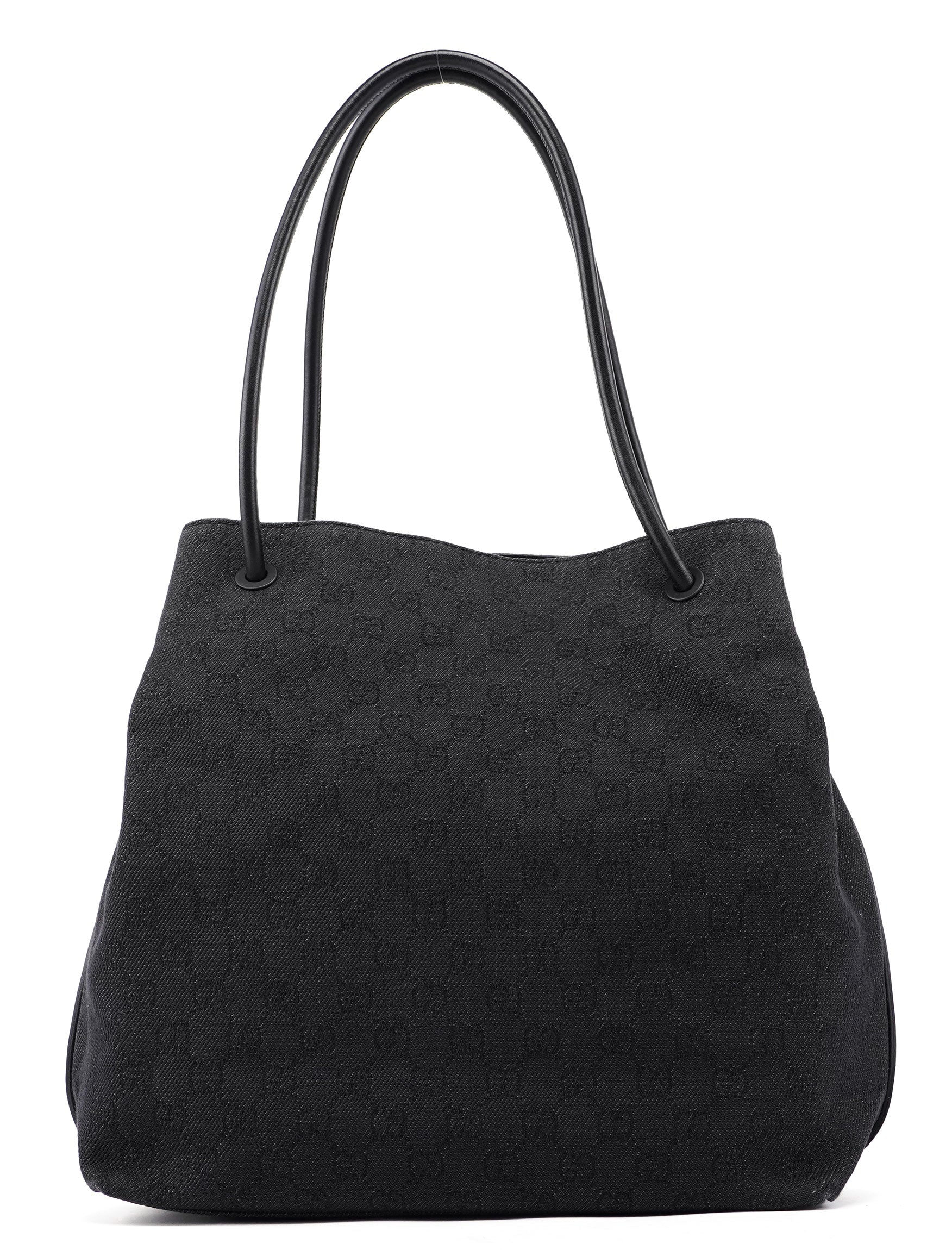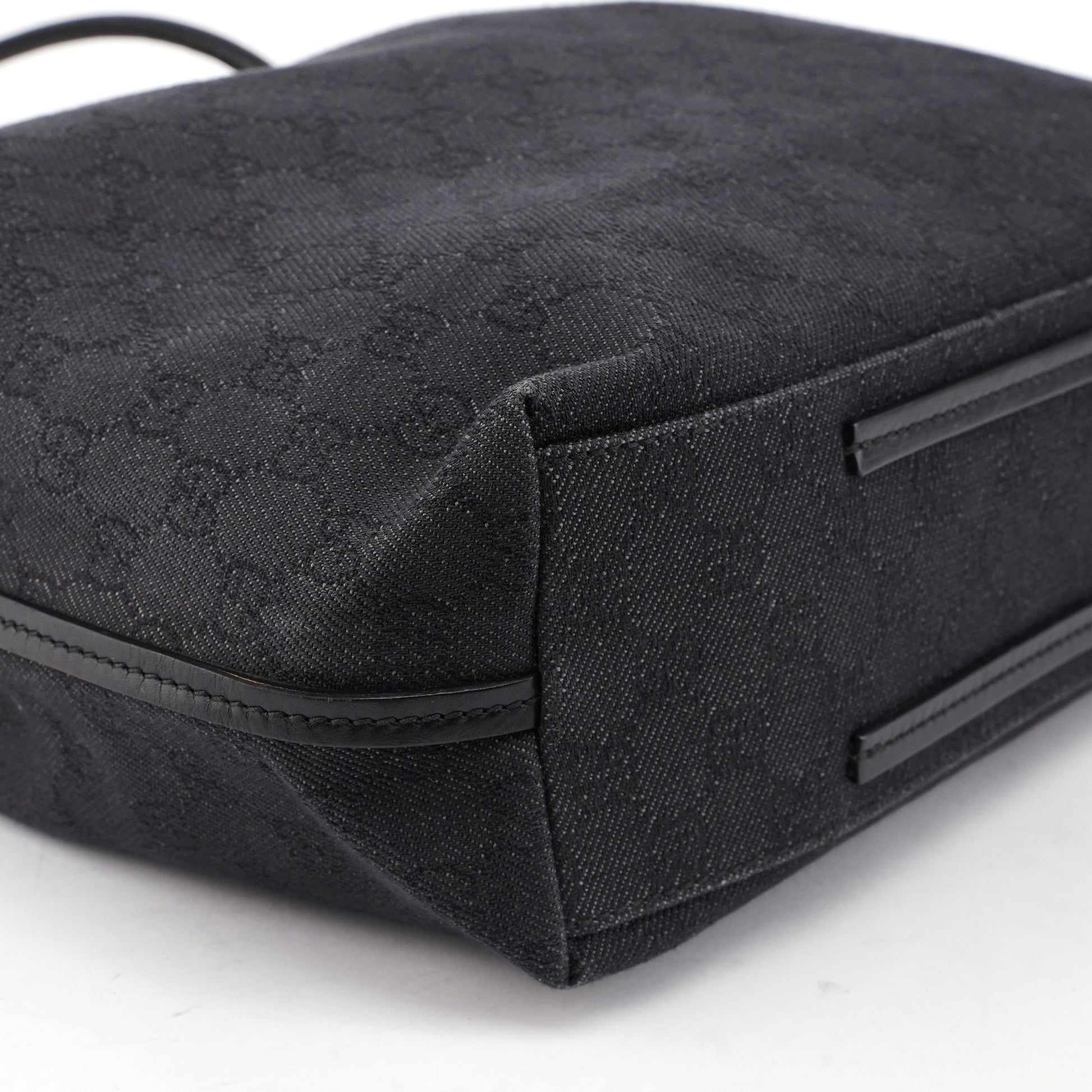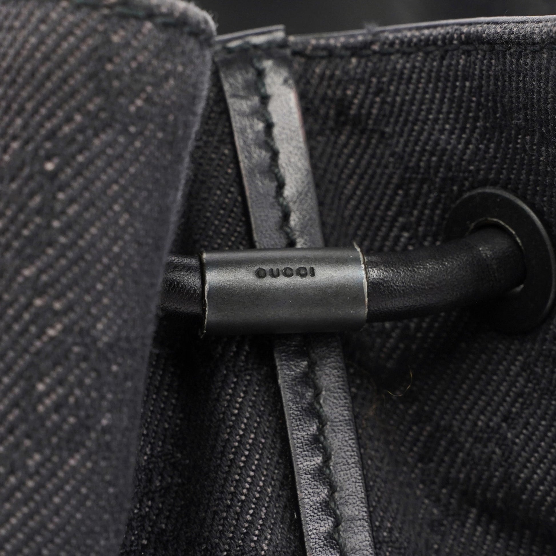 Designed by Tom Ford in the late 1990's, this Gucci GG Monogram shoulder bag is handcrafted in anthracite GG monogram denim with black calfskin leather trim and handles. The bag features anthracite hardware and inside, the cotton-lined interior houses a practical zipper pocket for organization.