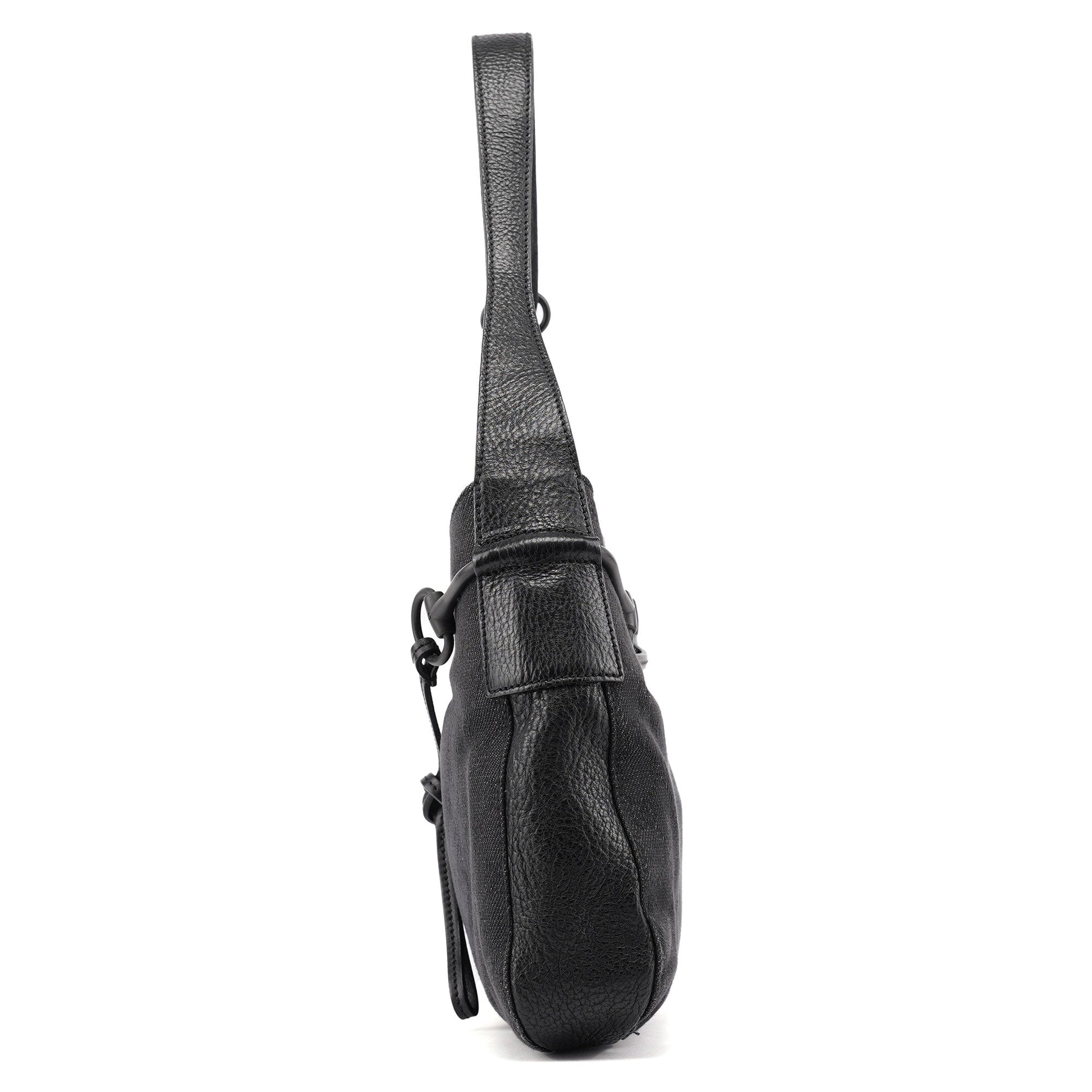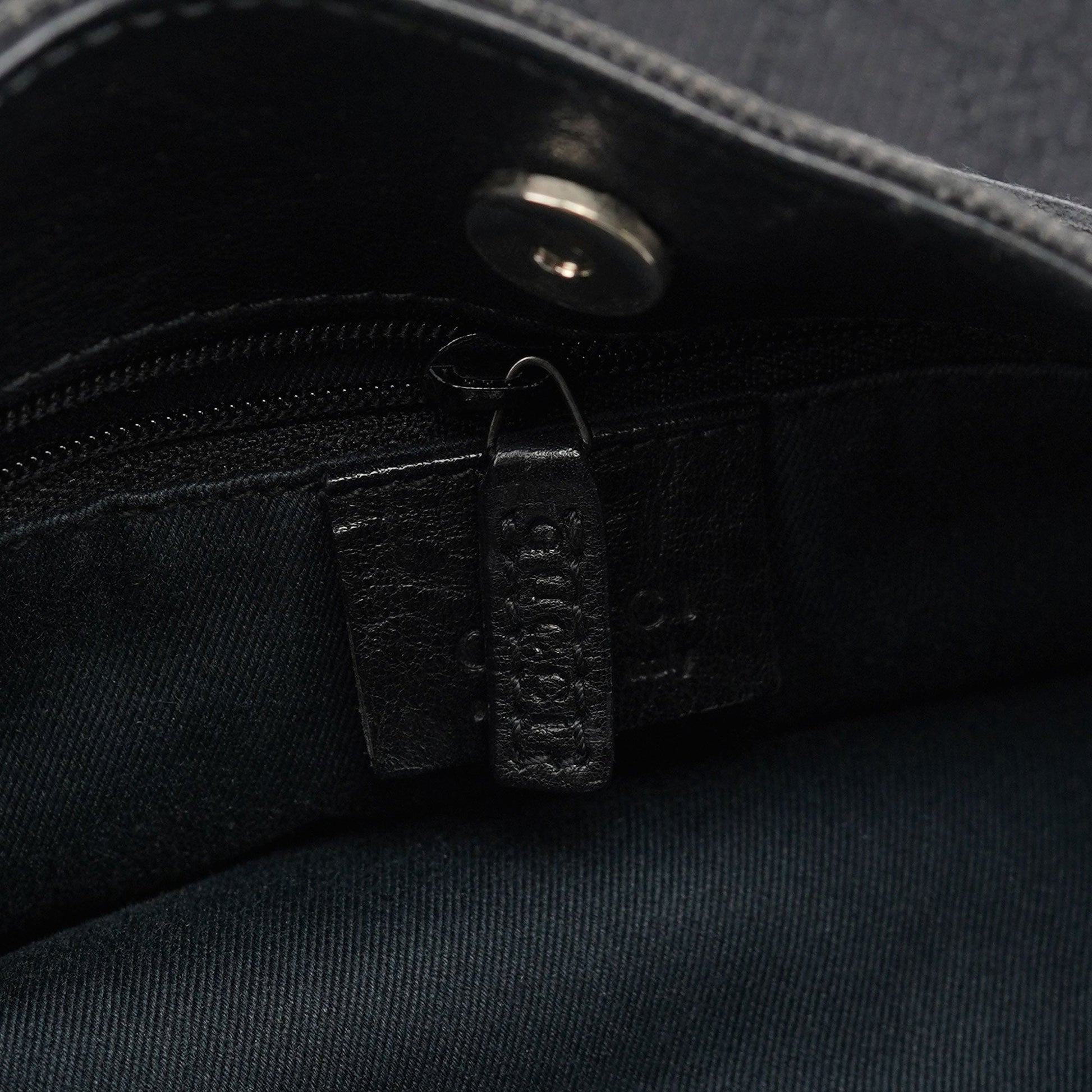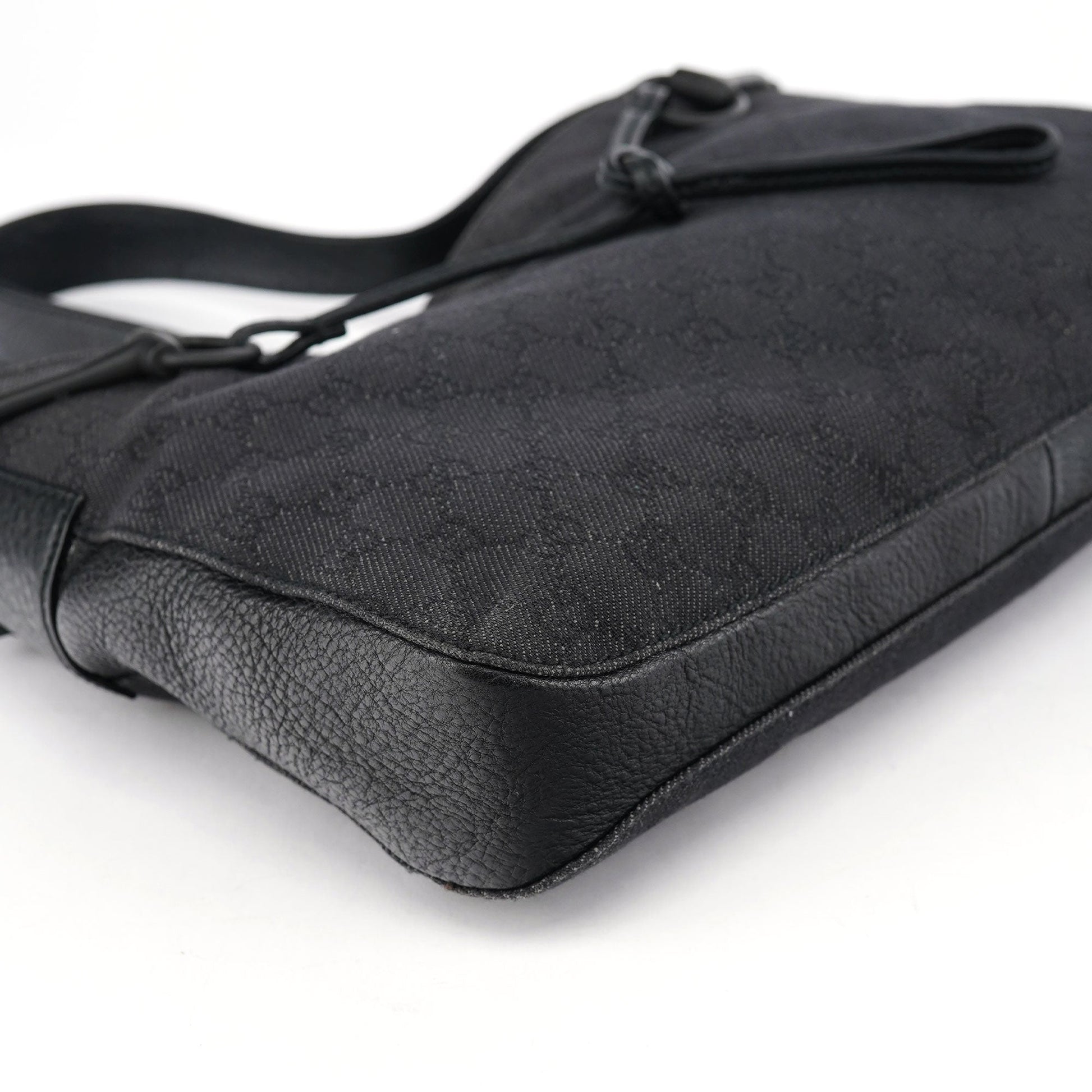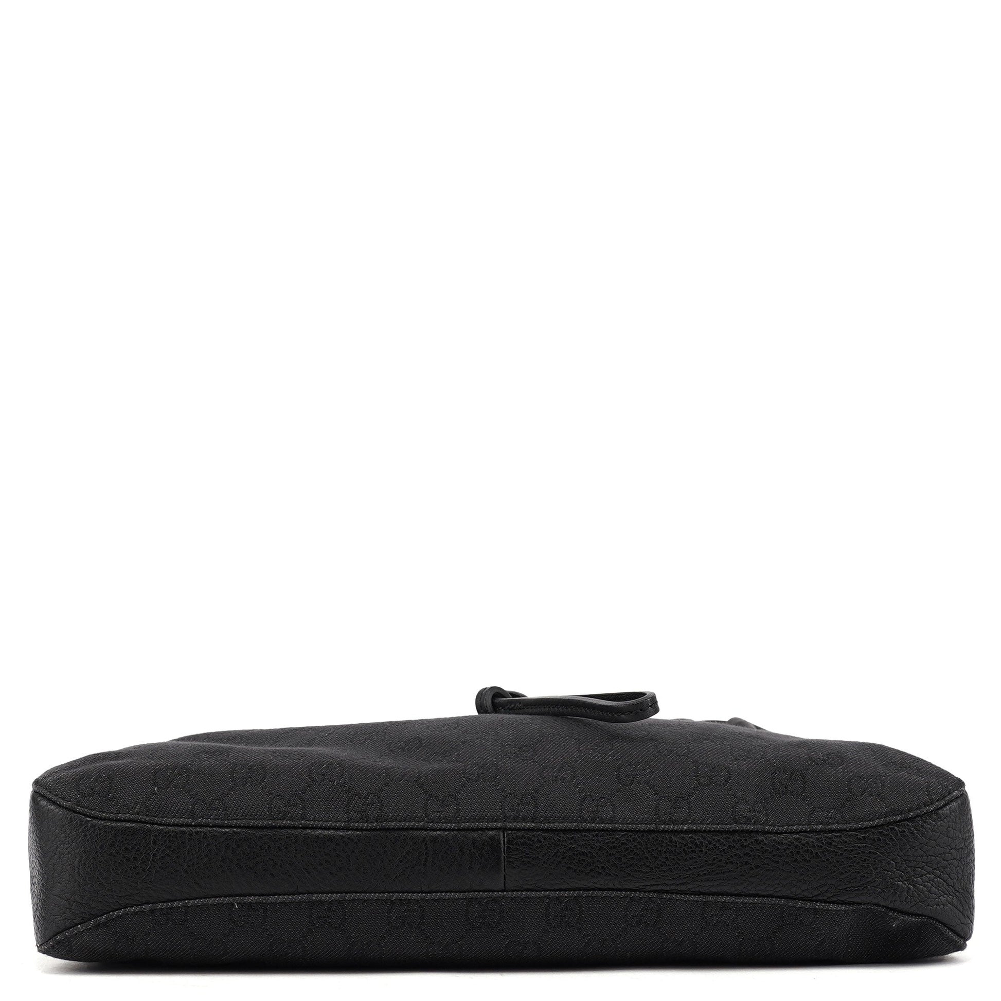 Designed by Tom Ford in the early 2000s, the Gucci GG Horsebit shoulder bag is crafted from black GG monogram canvas with anthracite horsebit hardware. A belt detail on the handle adds distinction, while the magnetic closure secures a cotton-lined interior with a zipper pocket.