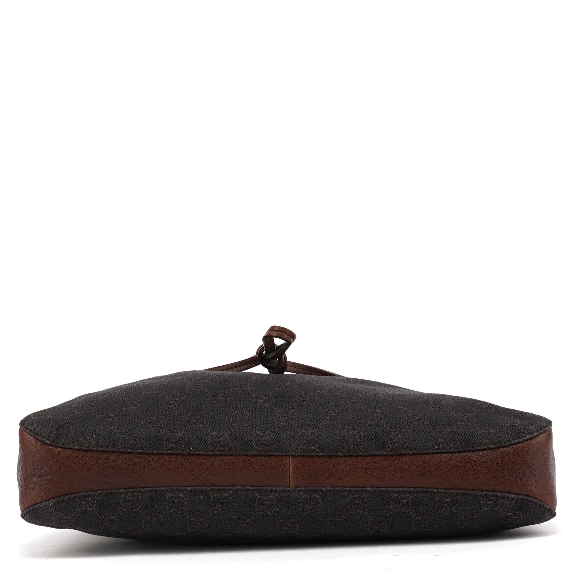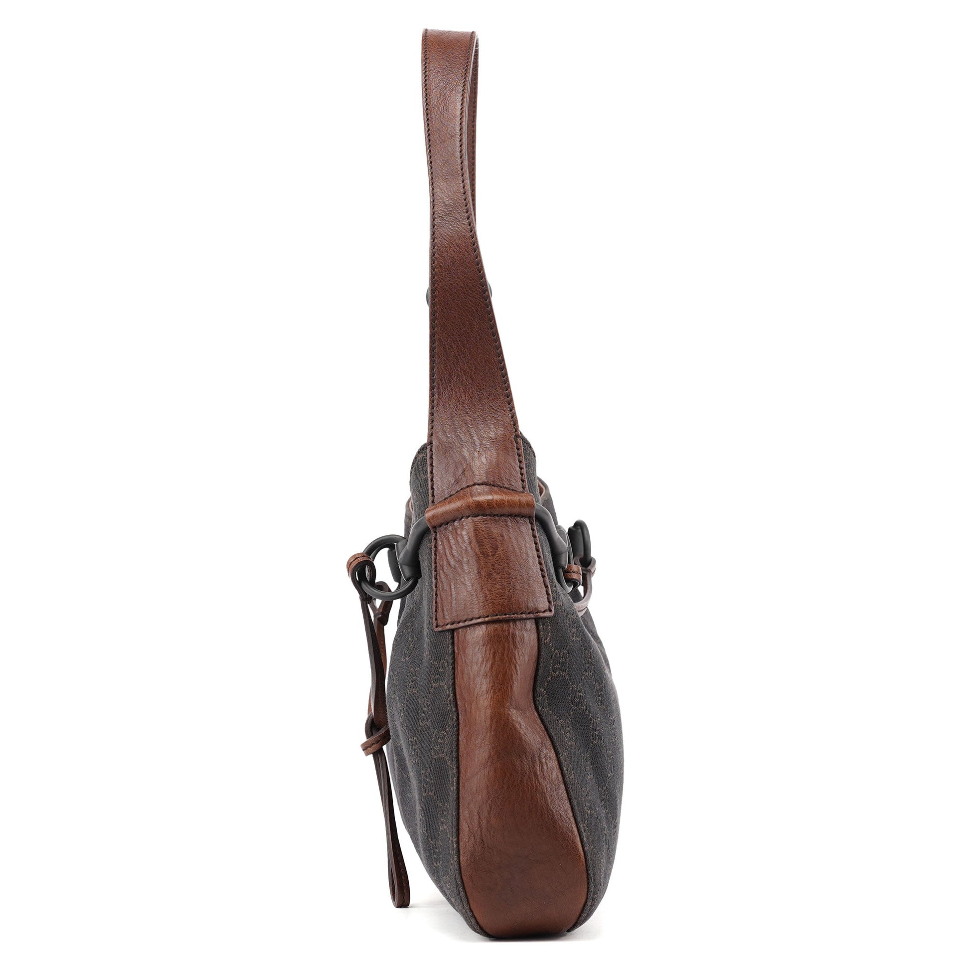 Designed by Tom Ford in the early 2000s, the Gucci GG Horsebit shoulder bag is crafted from brown GG monogram canvas with anthracite horsebit hardware. A belt detail on the handle adds distinction, while the magnetic closure secures a cotton-lined interior with a zipper pocket.