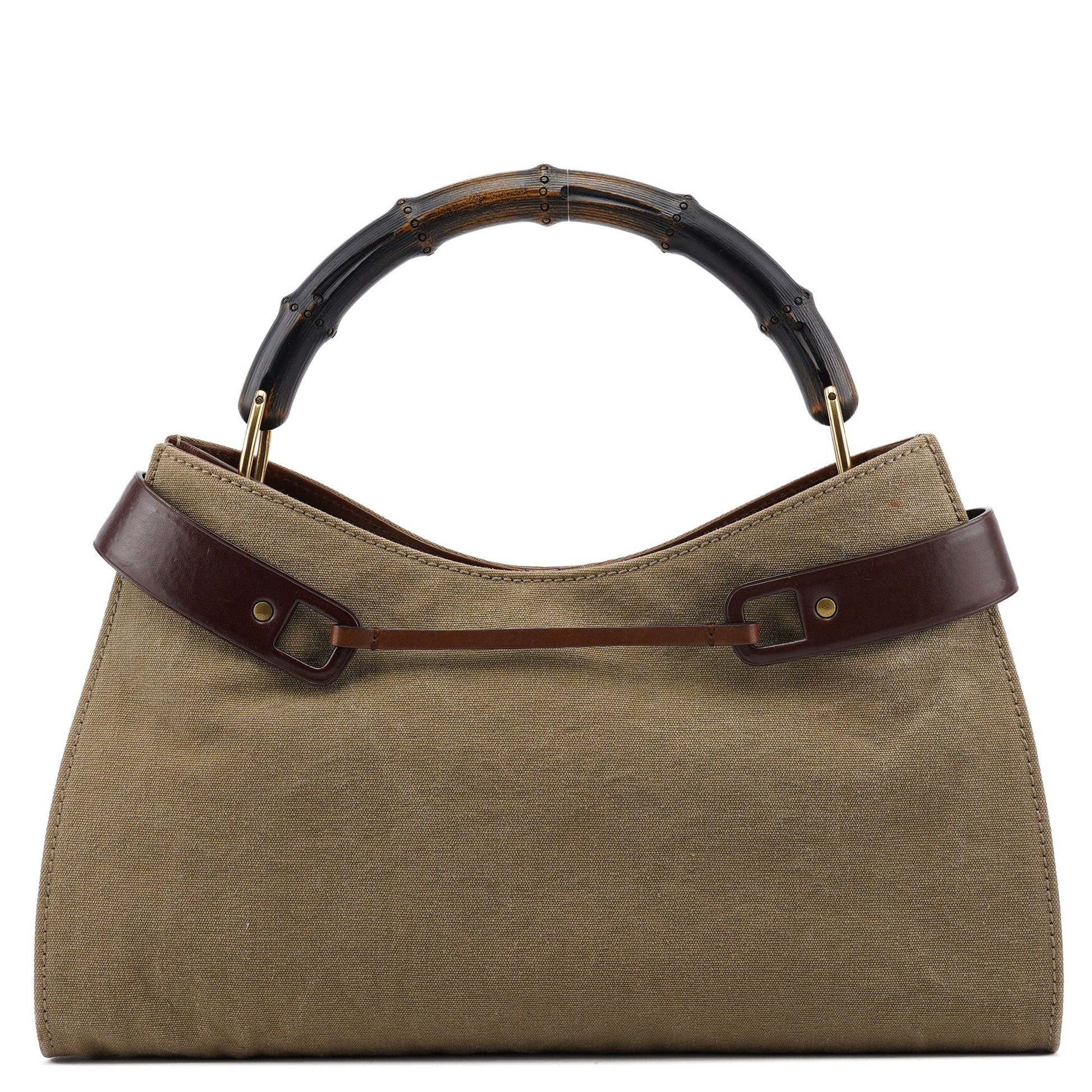 109136 Khaki Canvas Bamboo Top Handle Bag