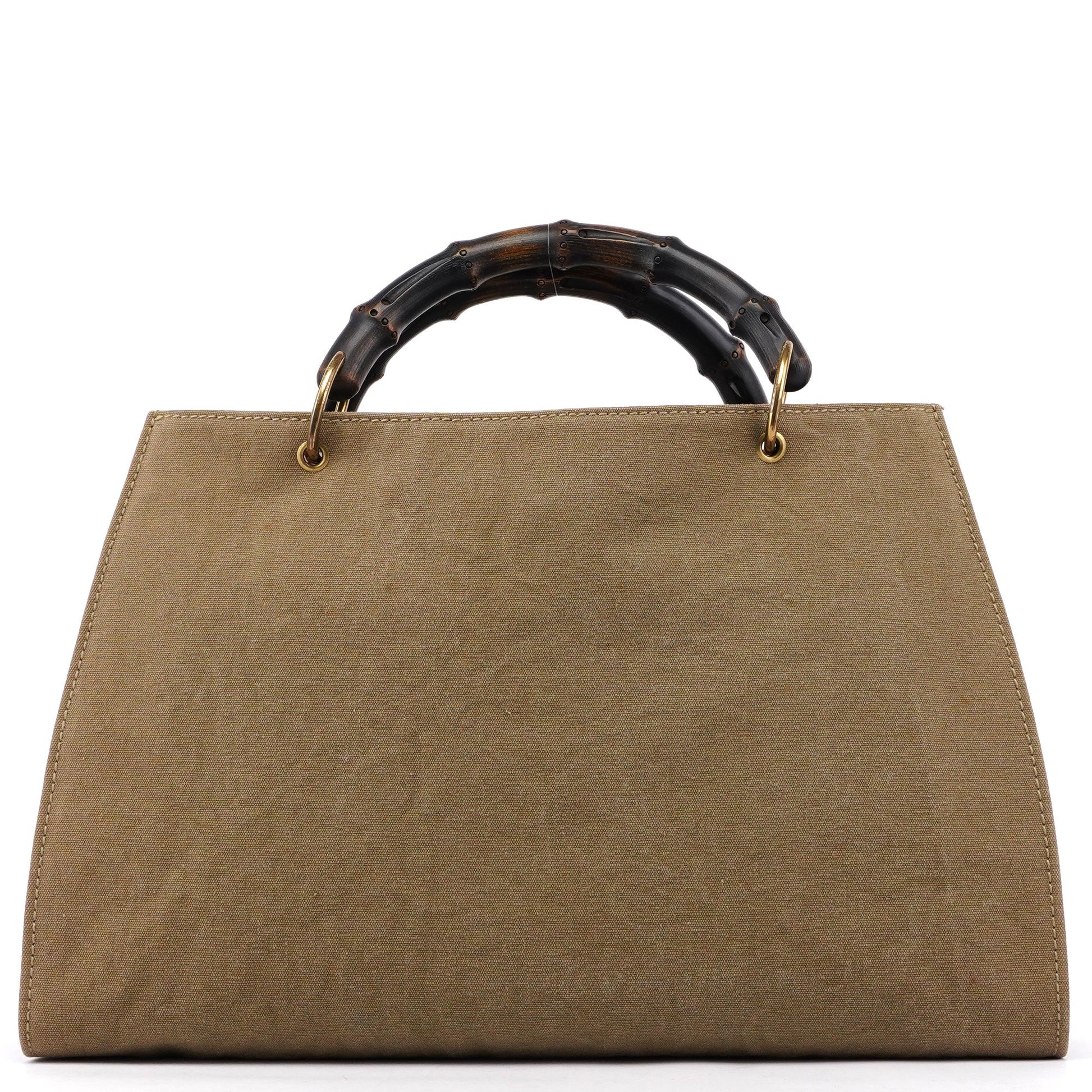 109138 Beige Canvas Bamboo Dual Handle Bag