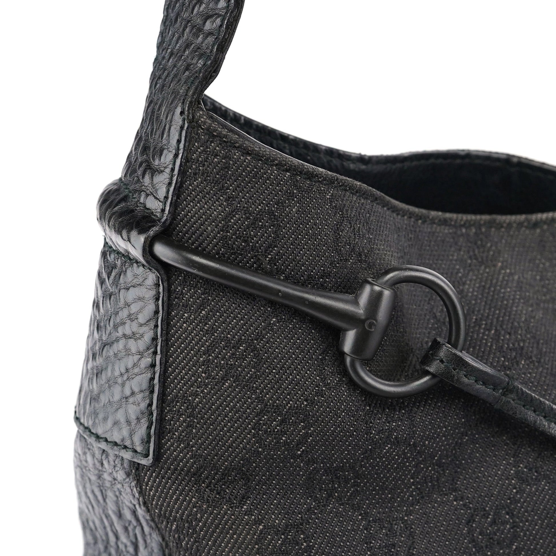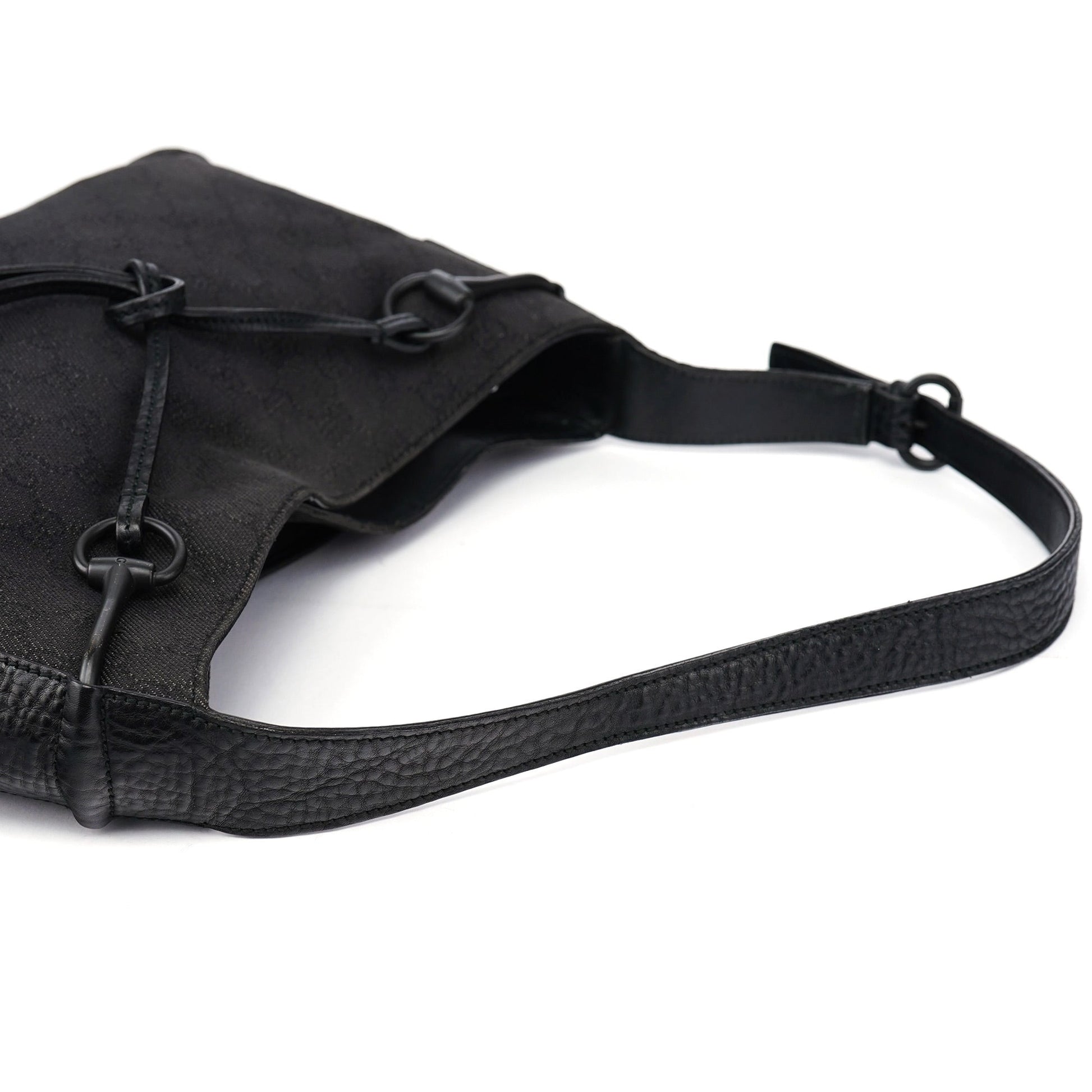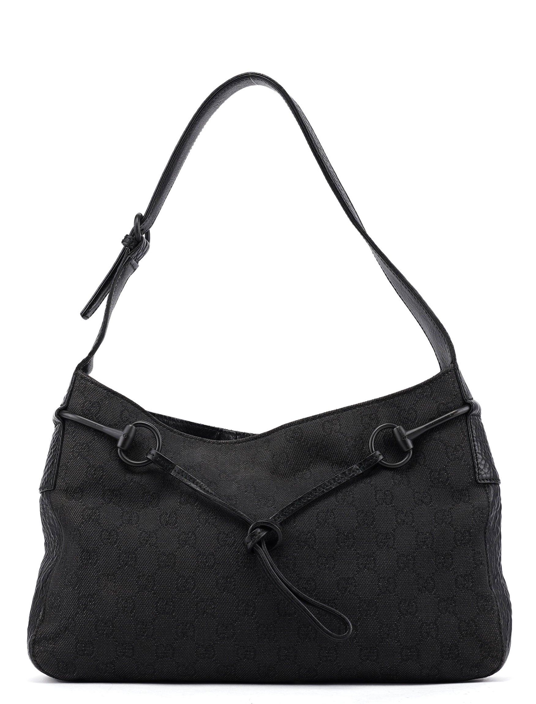 Designed by Tom Ford in the late 1990s, the Gucci GG Horsebit shoulder bag is handcrafted from anthracite GG monogram canvas and accented with tonal Horsebit hardware. A belt detail on the handle adds a distinctive touch, while the magnetic closure ensures easy access. The cotton-lined interior features a zipper pocket for added functionality.