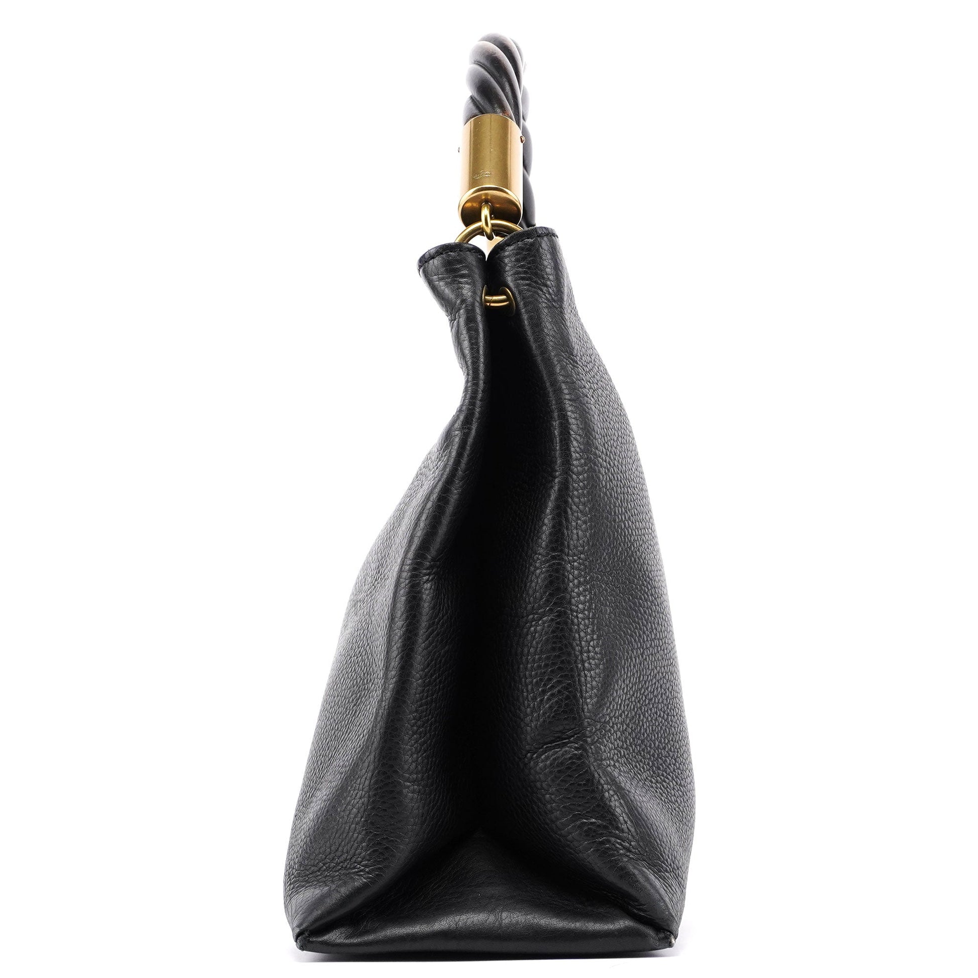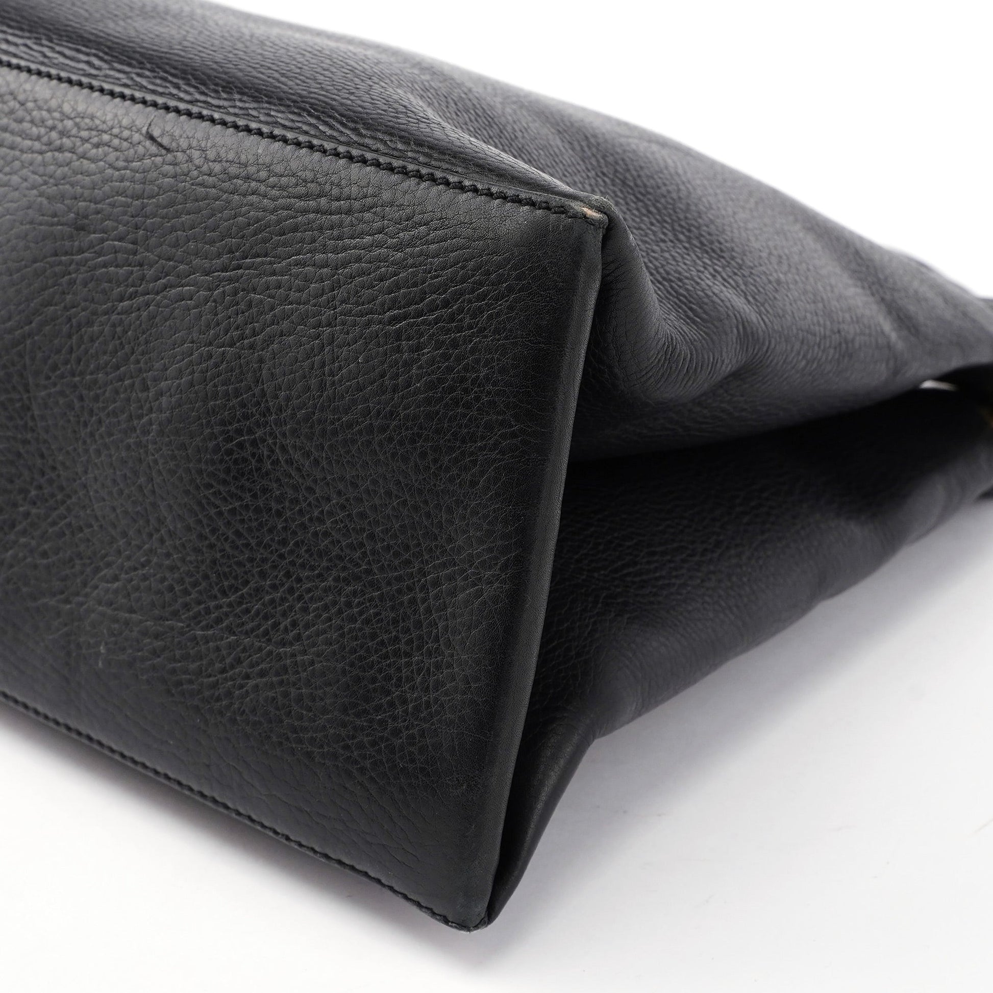 110177 Black Calfskin Knot Handle Bag