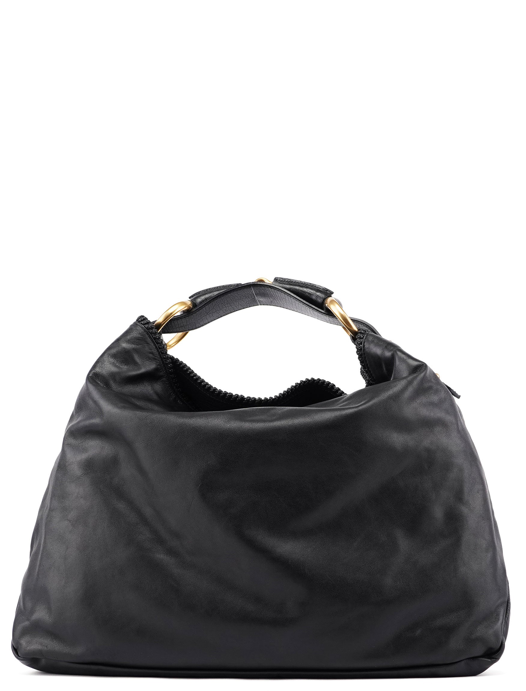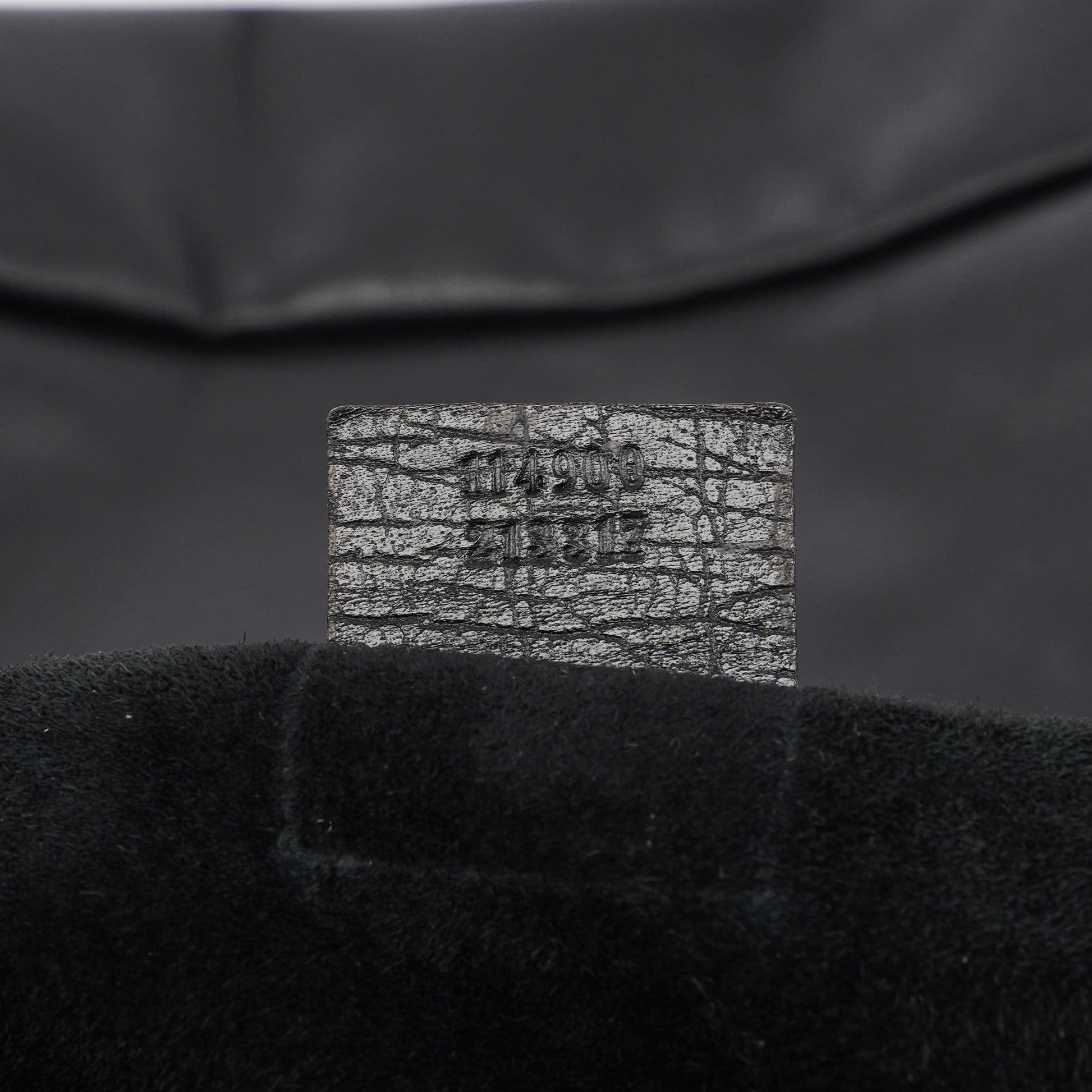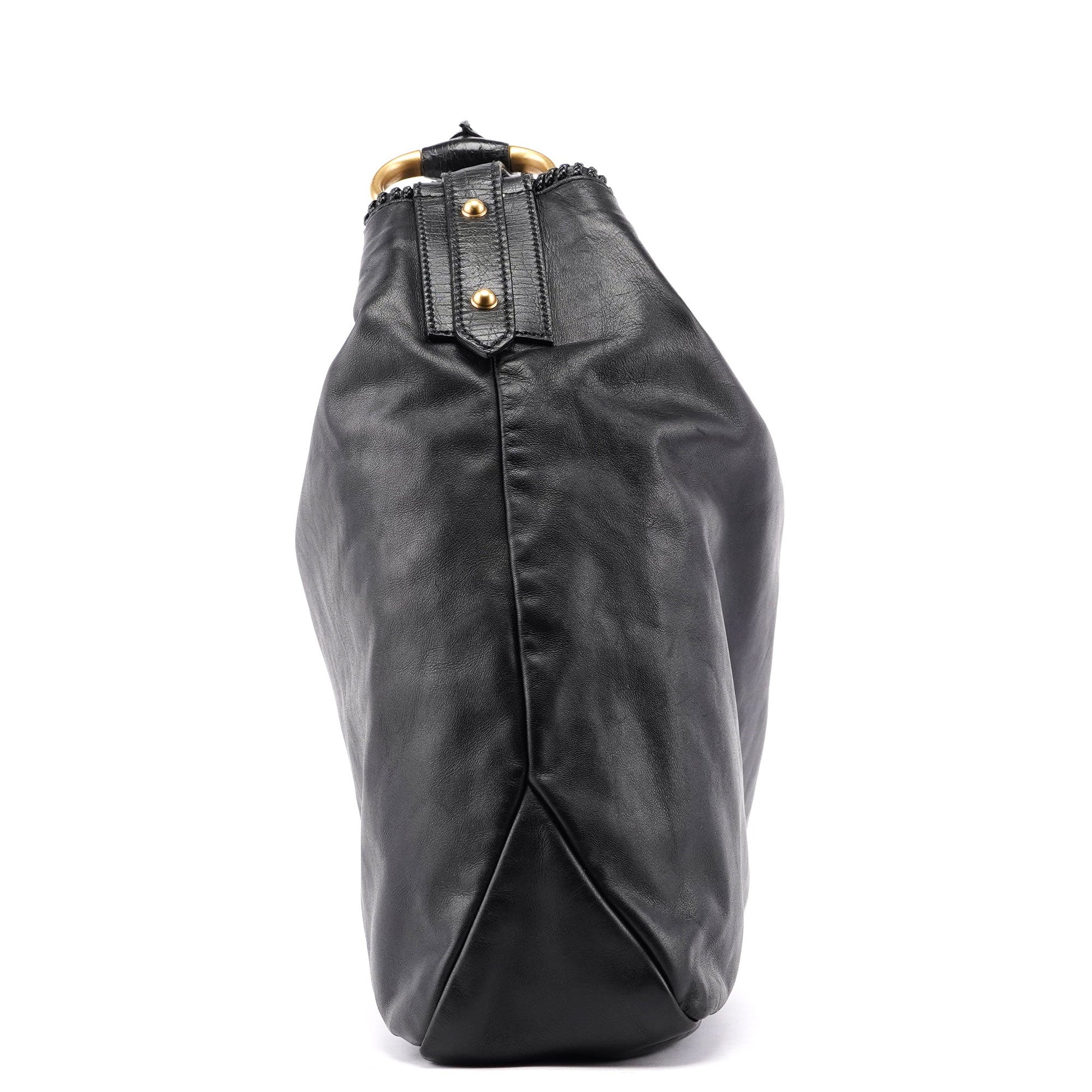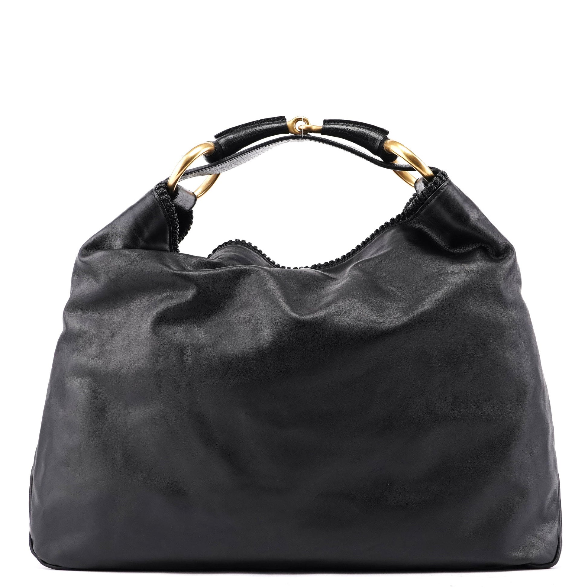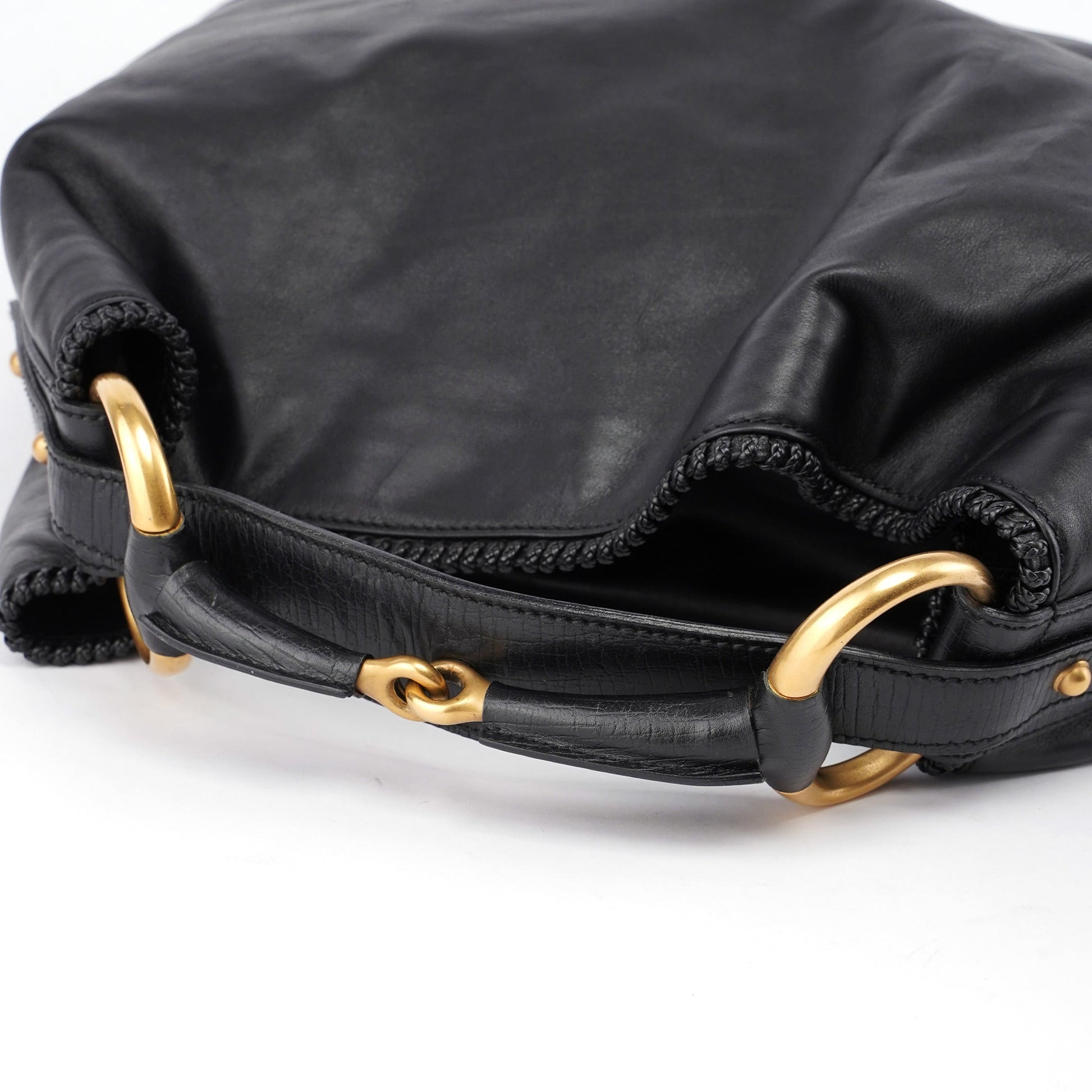The original large Gucci Horsebit hobo bag, designed by Tom Ford in the late 1990s, now being re-released due to its enduring popularity. Handcrafted from black calfskin leather with brushed gold-tone hardware, it features a black suede-lined interior with an interior zipper pocket, offering a perfect blend of timeless luxury and functionality.