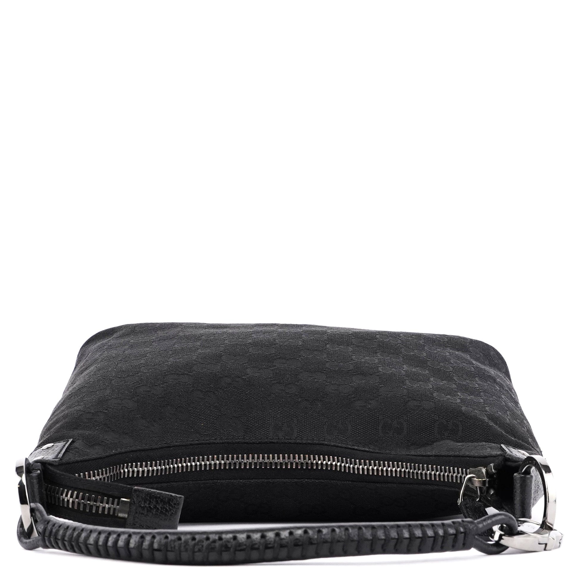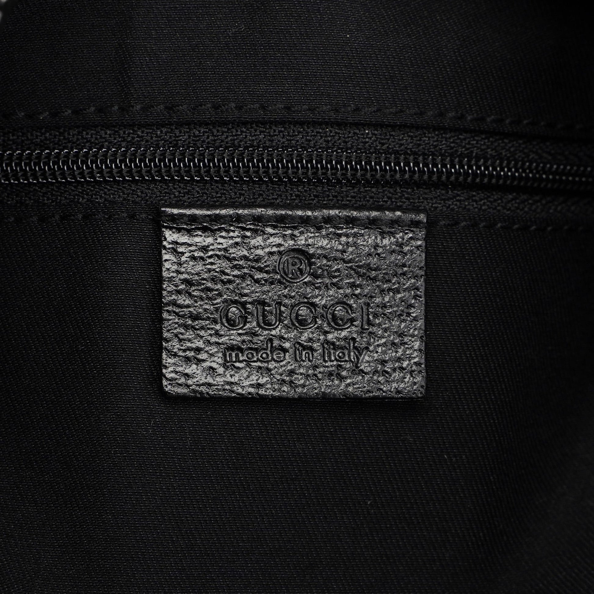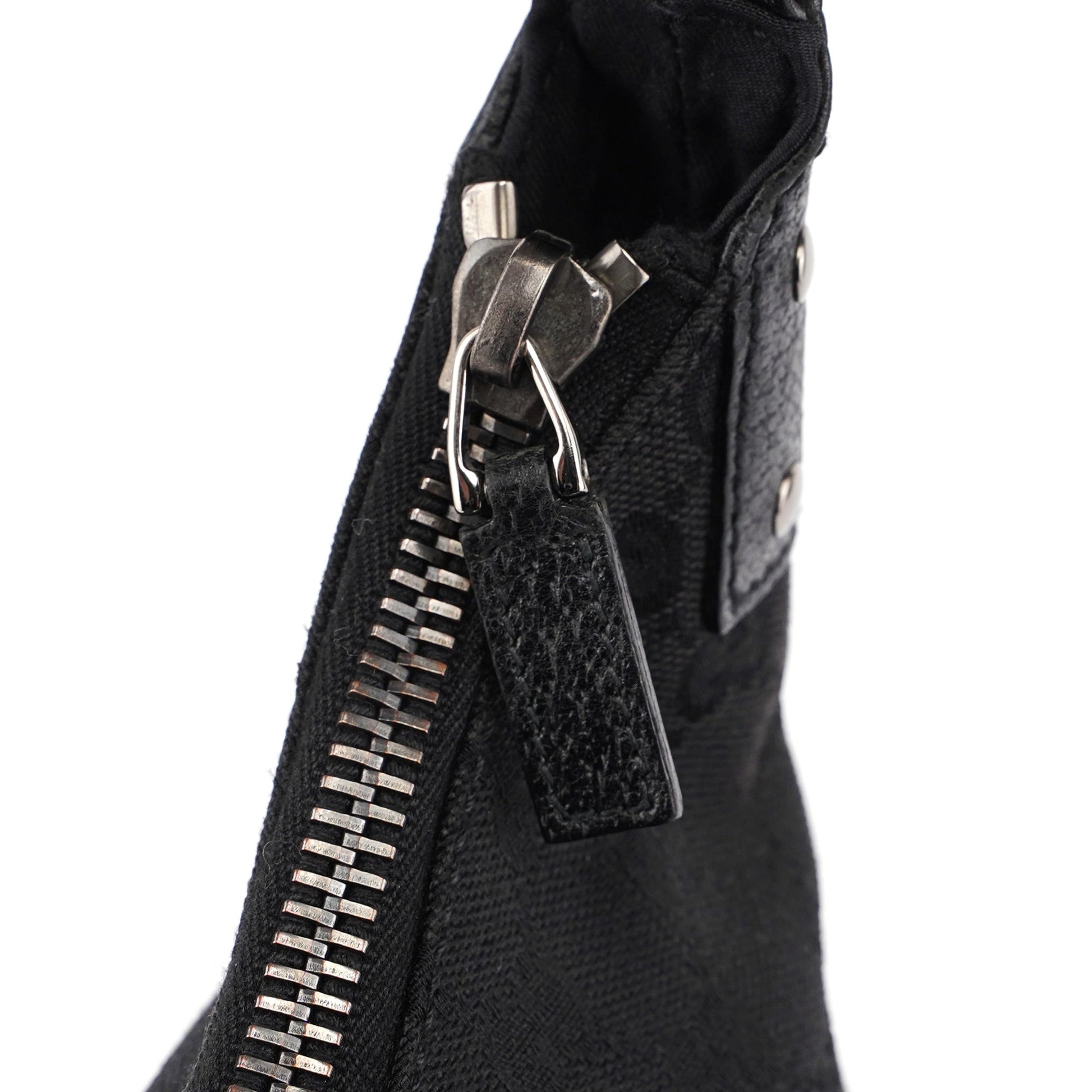 Designed by Tom Ford in the late '90s, this Gucci GG monogram bag is handcrafted from black GG canvas with tonal leather trim and silver-tone hardware engraved with the Gucci logo. It features a zipper closure, a cotton-lined interior, and an interior zipper pocket, showcasing timeless style and functional elegance.