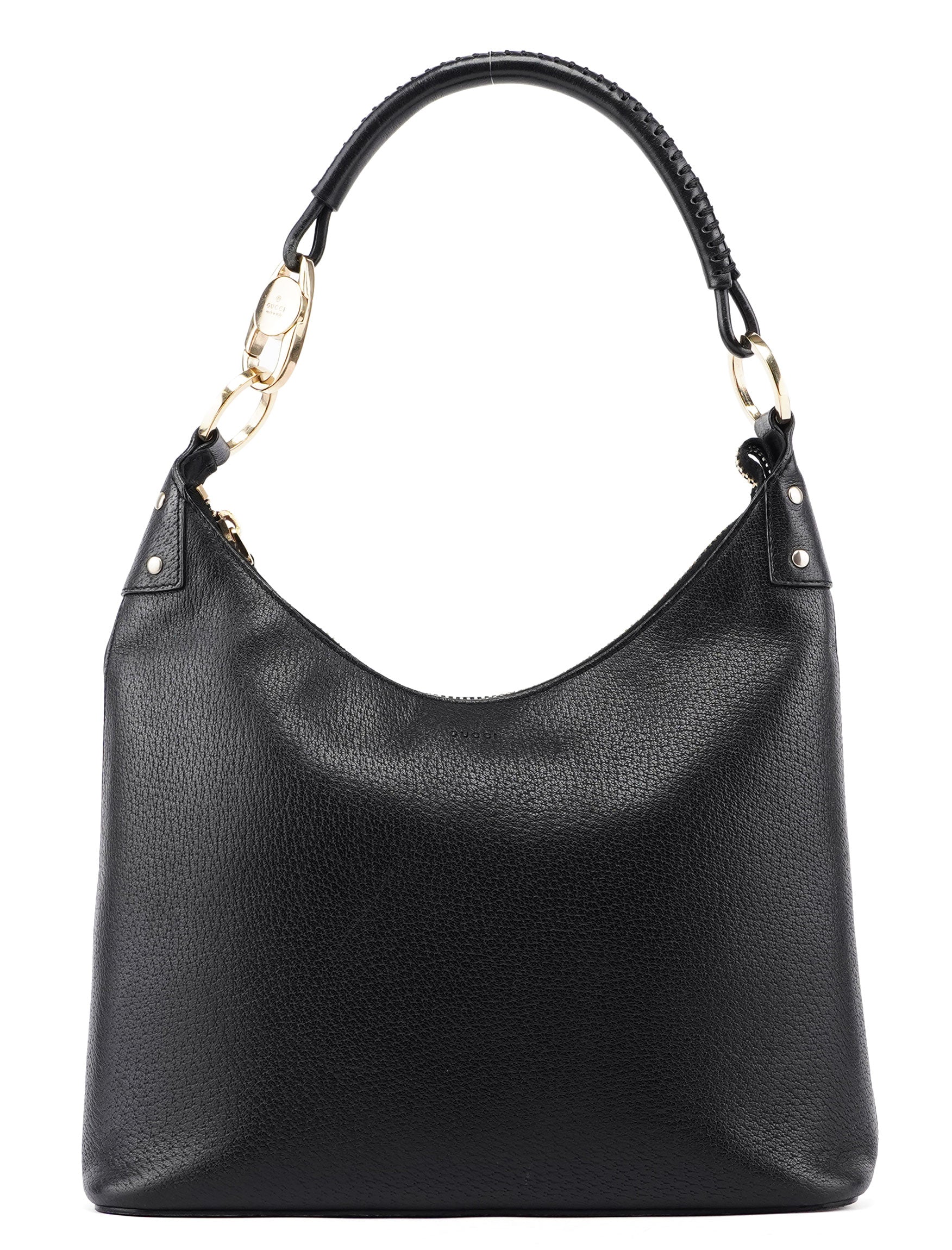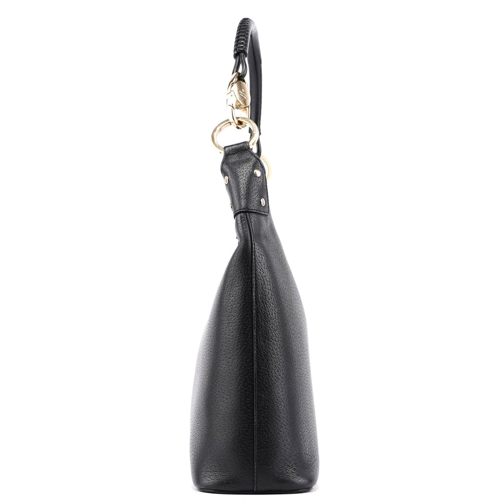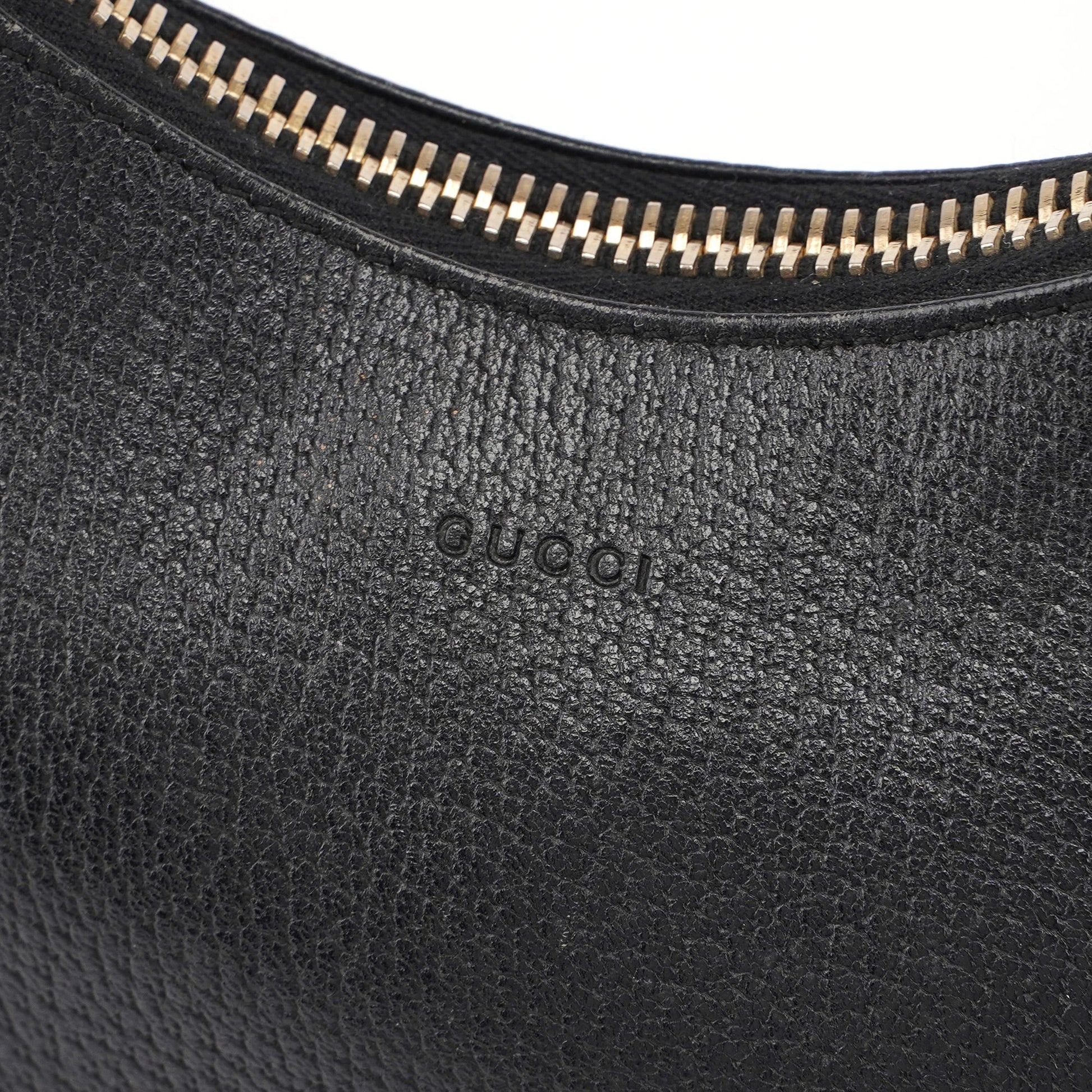 Designed by Tom Ford in the late '90s, this Gucci shoulder bag is handcrafted from black pebble leather with silver-tone hardware engraved with the Gucci logo. It features a zipper closure, a cotton-lined interior, and an interior zipper pocket, showcasing timeless style and functional elegance. The Gucci logo is subtly embossed on the front.