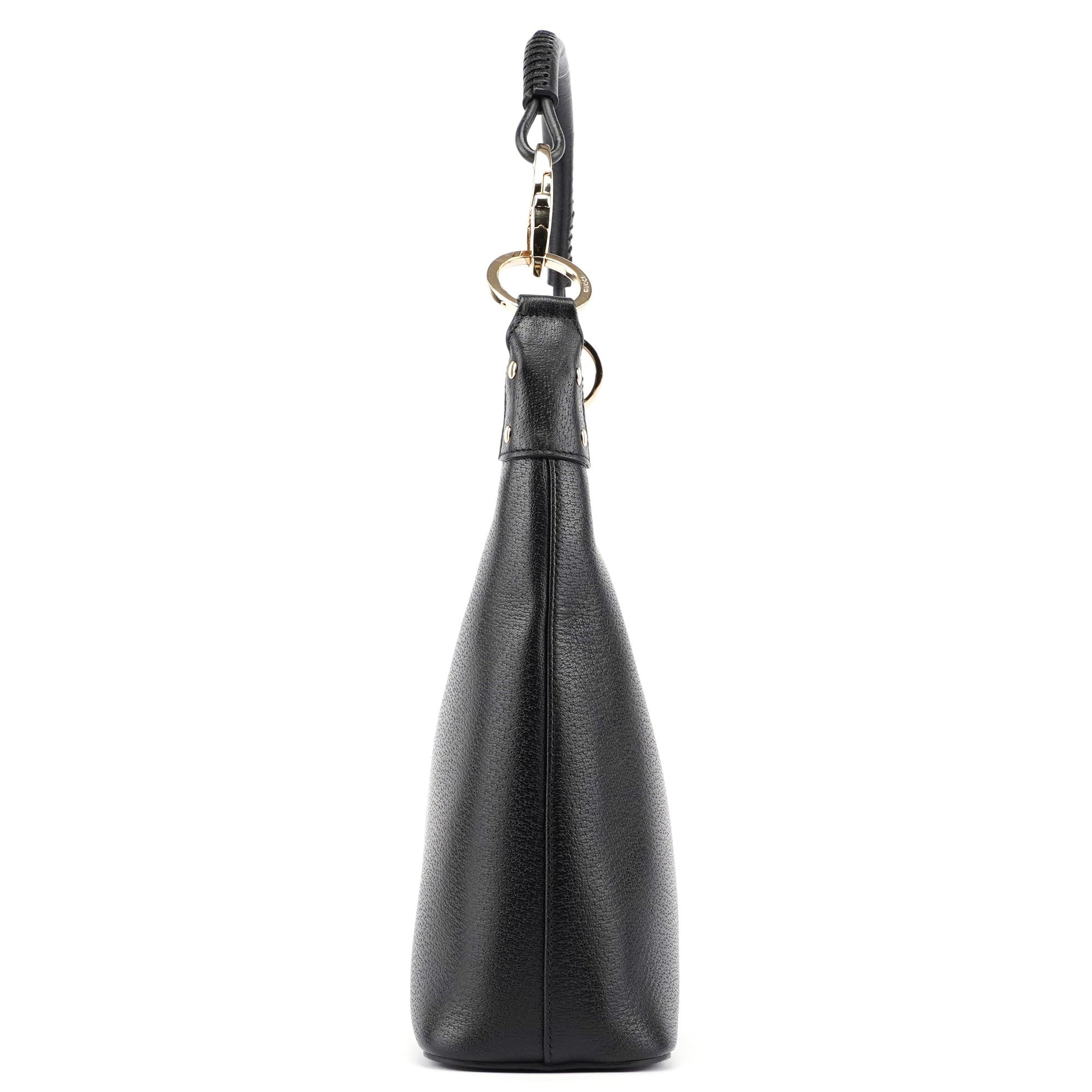 Designed by Tom Ford in the late '90s, this Gucci shoulder bag is handcrafted from black pebble leather with silver-tone hardware engraved with the Gucci logo. It features a zipper closure, a cotton-lined interior, and an interior zipper pocket, showcasing timeless style and functional elegance. The Gucci logo is subtly embossed on the front.
