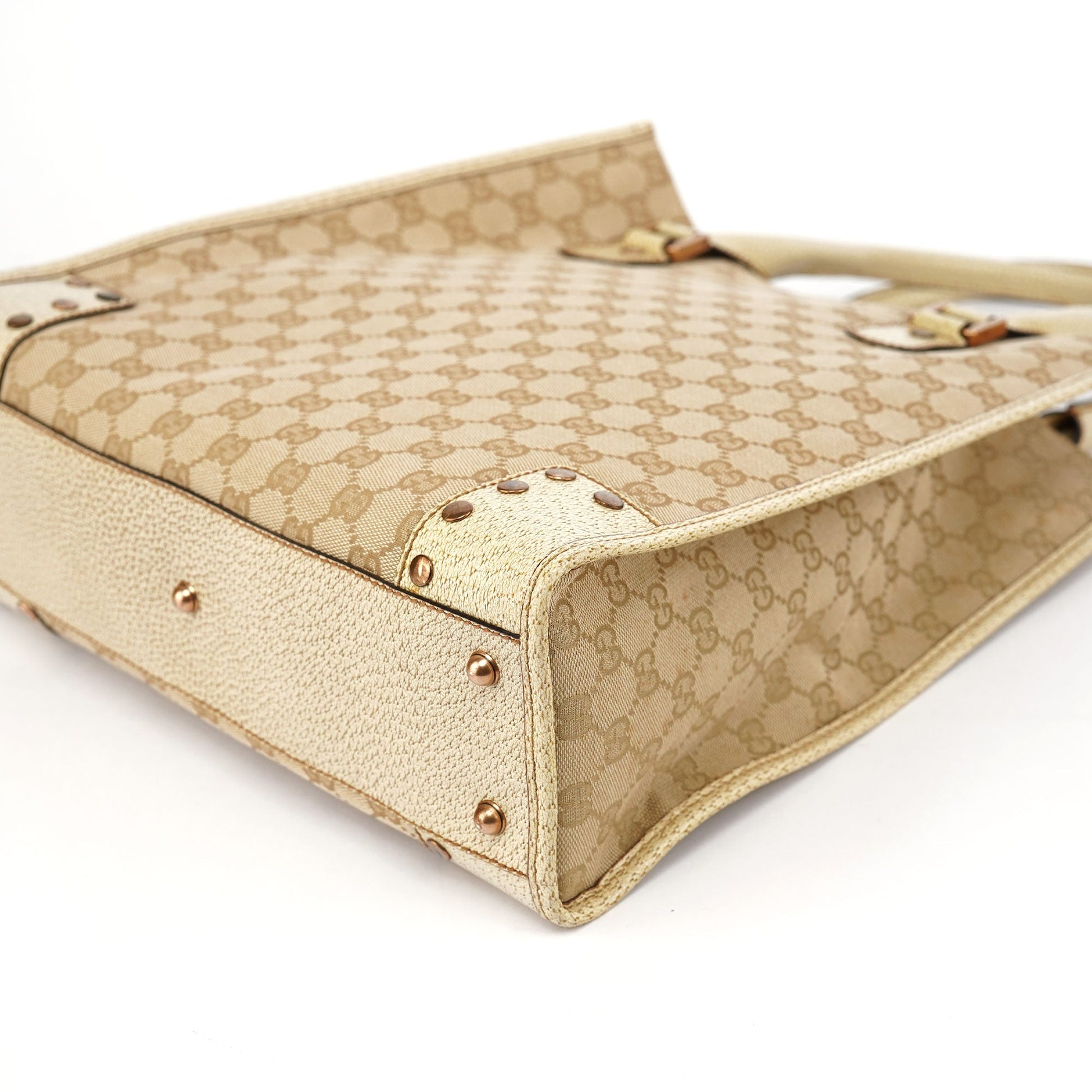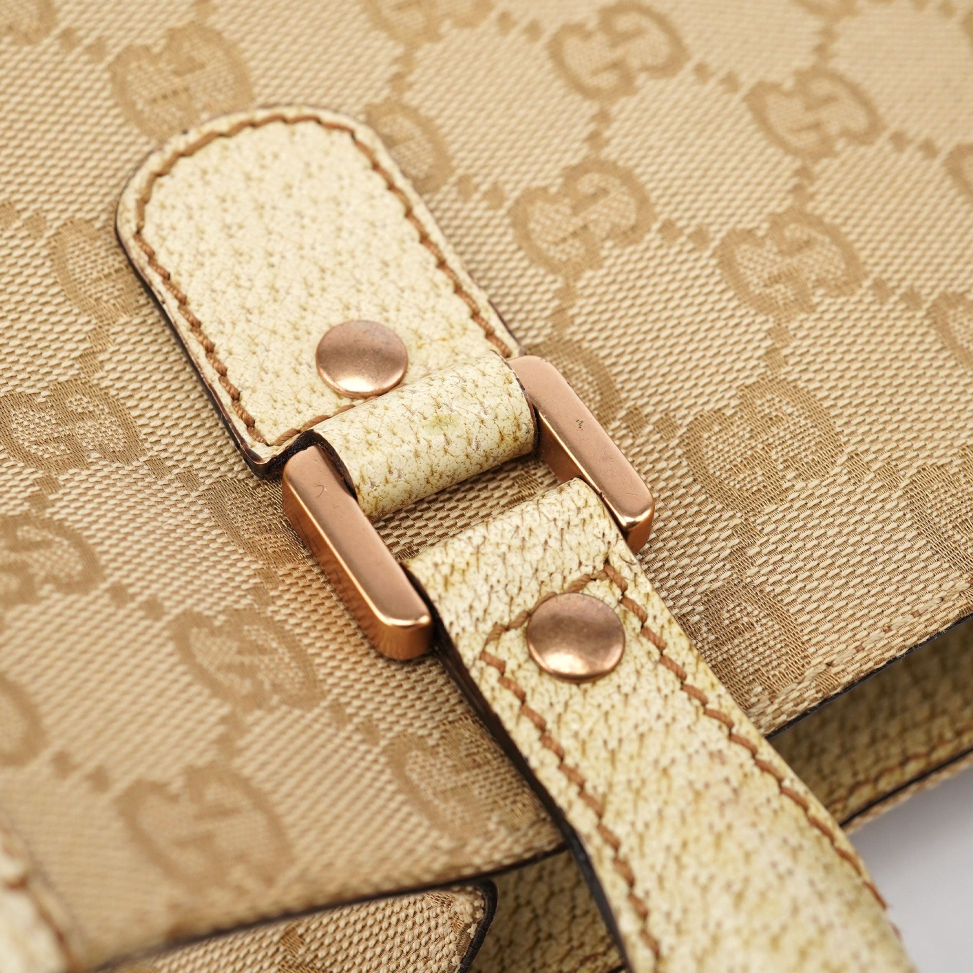 Designed by Tom Ford in the late 1990's, this Gucci GG Monogram shoulder bag is handcrafted in beige GG monogram canvas with tonal leather trim and handles. The bag features gold-tone hardware and inside, the cotton-lined interior houses a practical zipper pocket for organization.