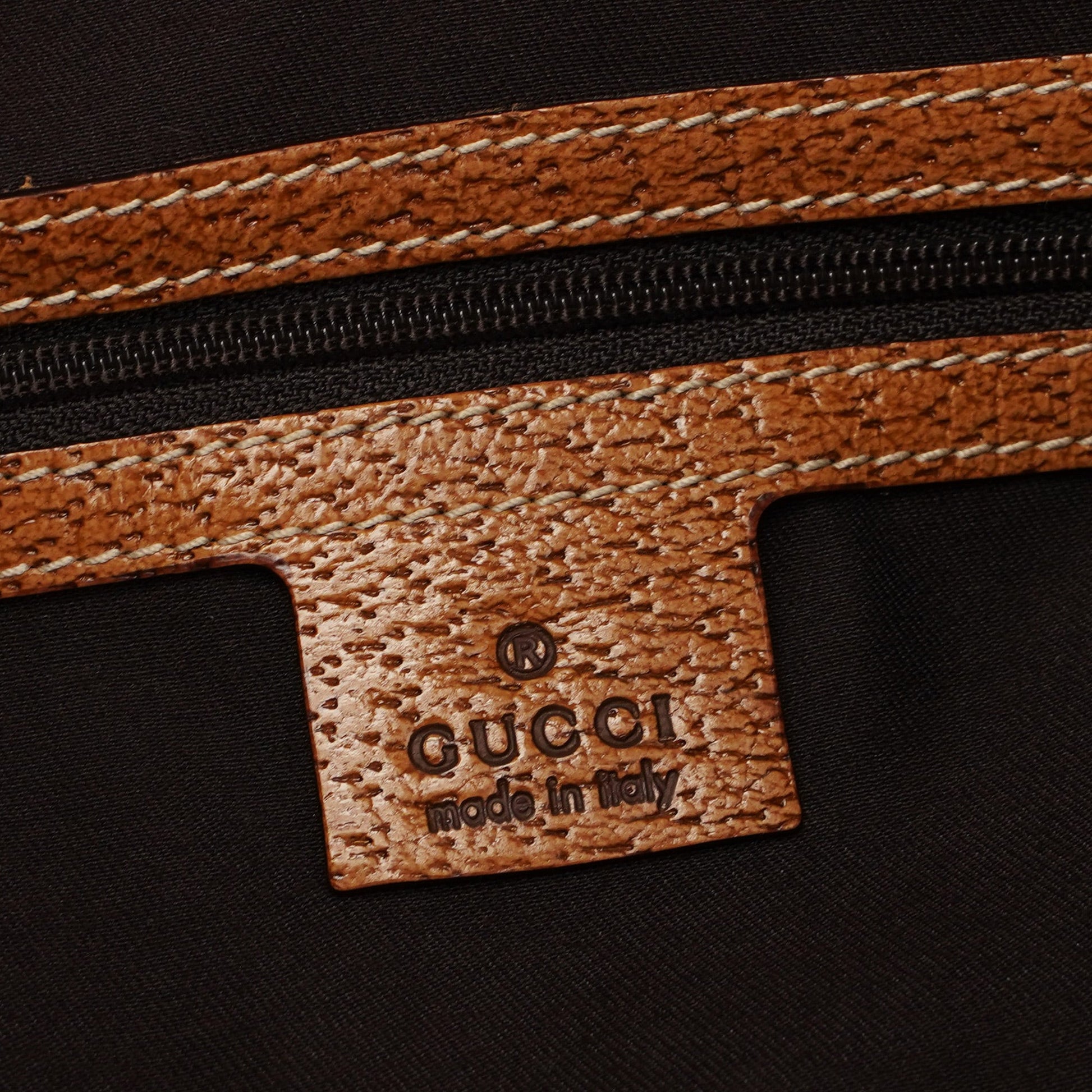 Designed by Tom Ford in the late 1990s, the Gucci GG Hobo shoulder bag is handcrafted from beige GG monogram canvas with light brown leather trim and white contrast stitching. It features silver-tone hardware, a zipper closure, and a satin-lined interior with an interior zipper pocket, showcasing timeless elegance.