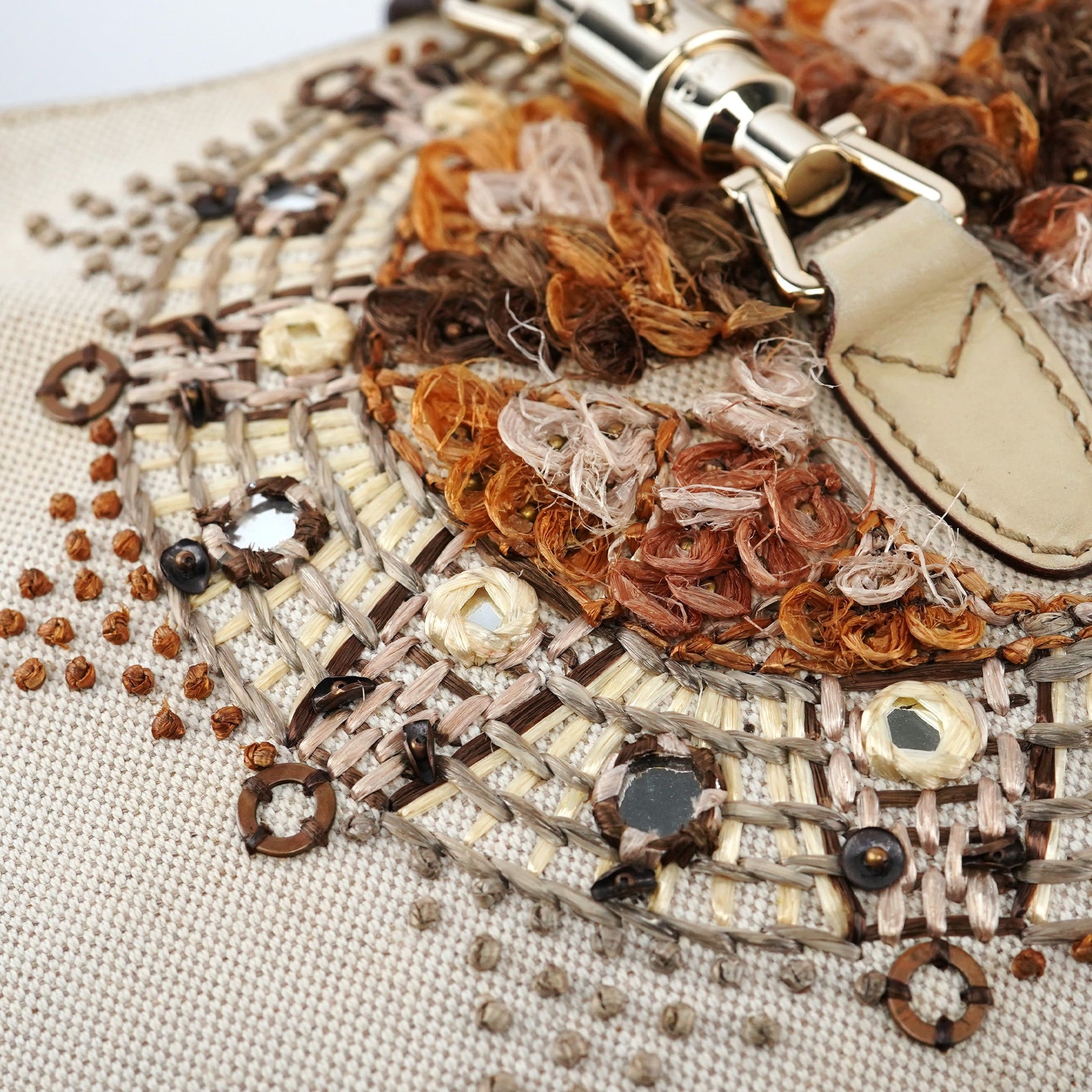 140040 Beige Canvas Sequin Jackie Shoulder Bag