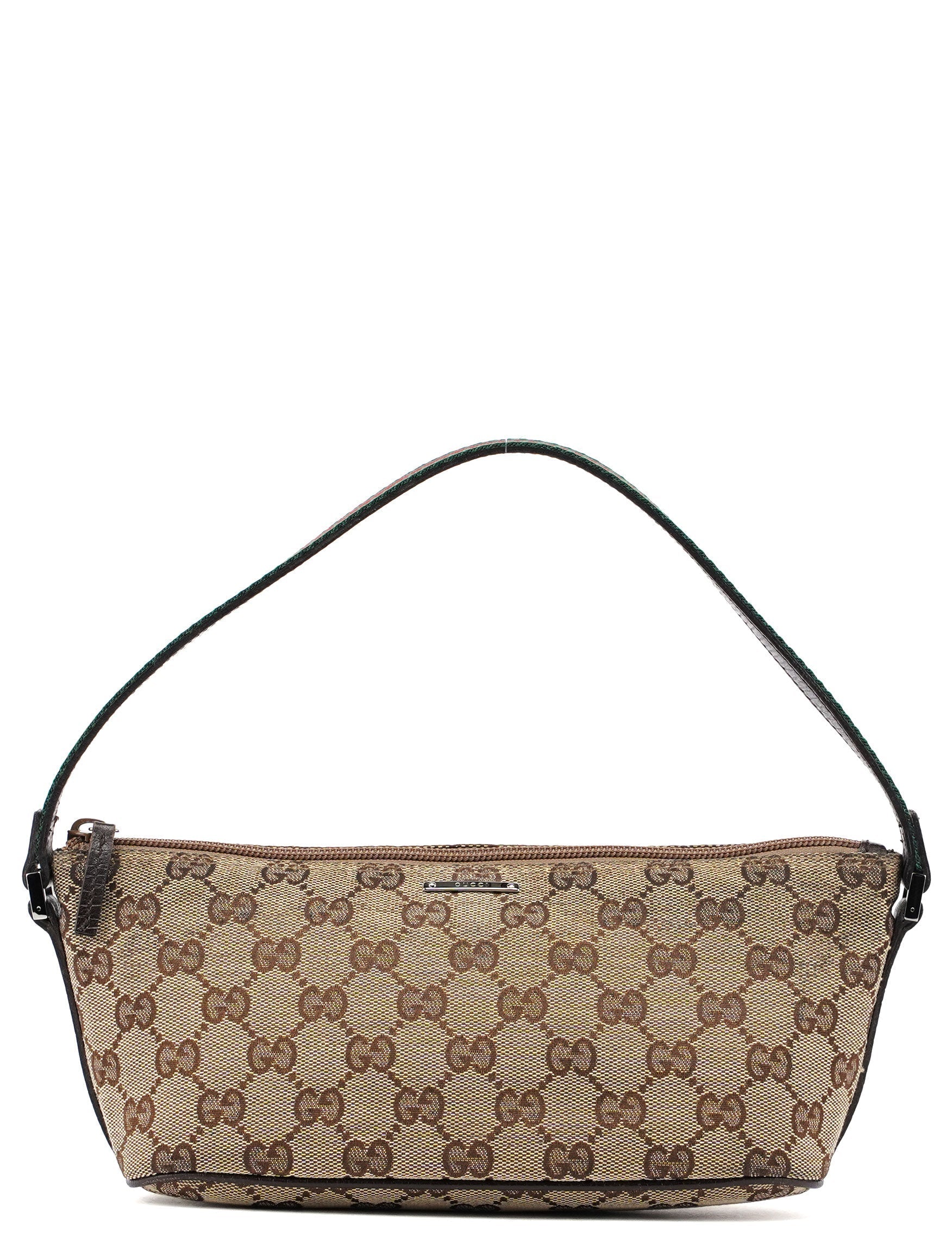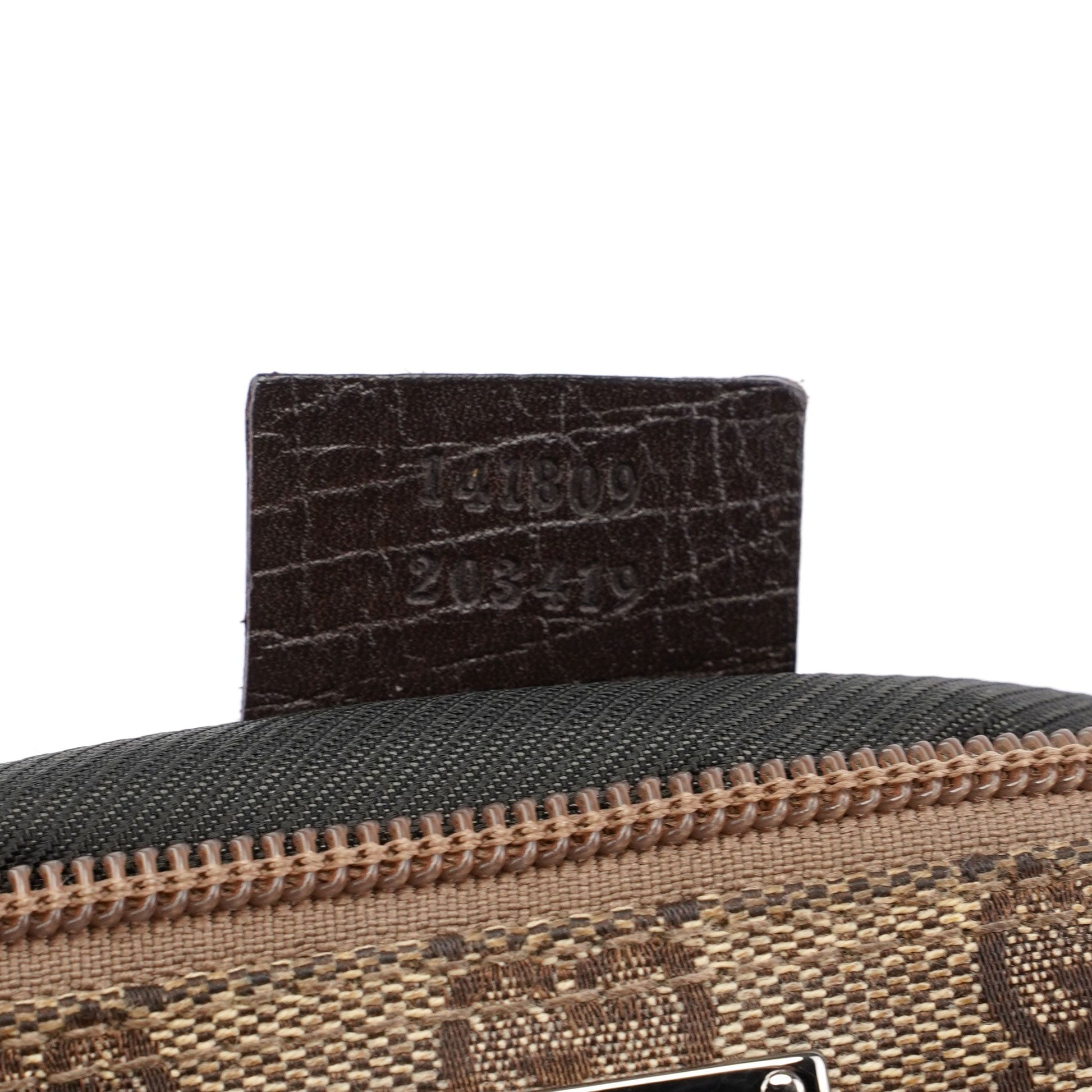 Explore timeless elegance with the Gucci GG Boat Pochette by Tom Ford, circa late 1990s. This exquisite piece combines beige GG canvas with brown leather trim, red and green canvas handle and silver-tone hardware. Its secure zip closure and satin-lined interior offer luxury and practicality, while the subtle Gucci plaque adds a touch of heritage. A perfect blend of vintage charm and sophistication.