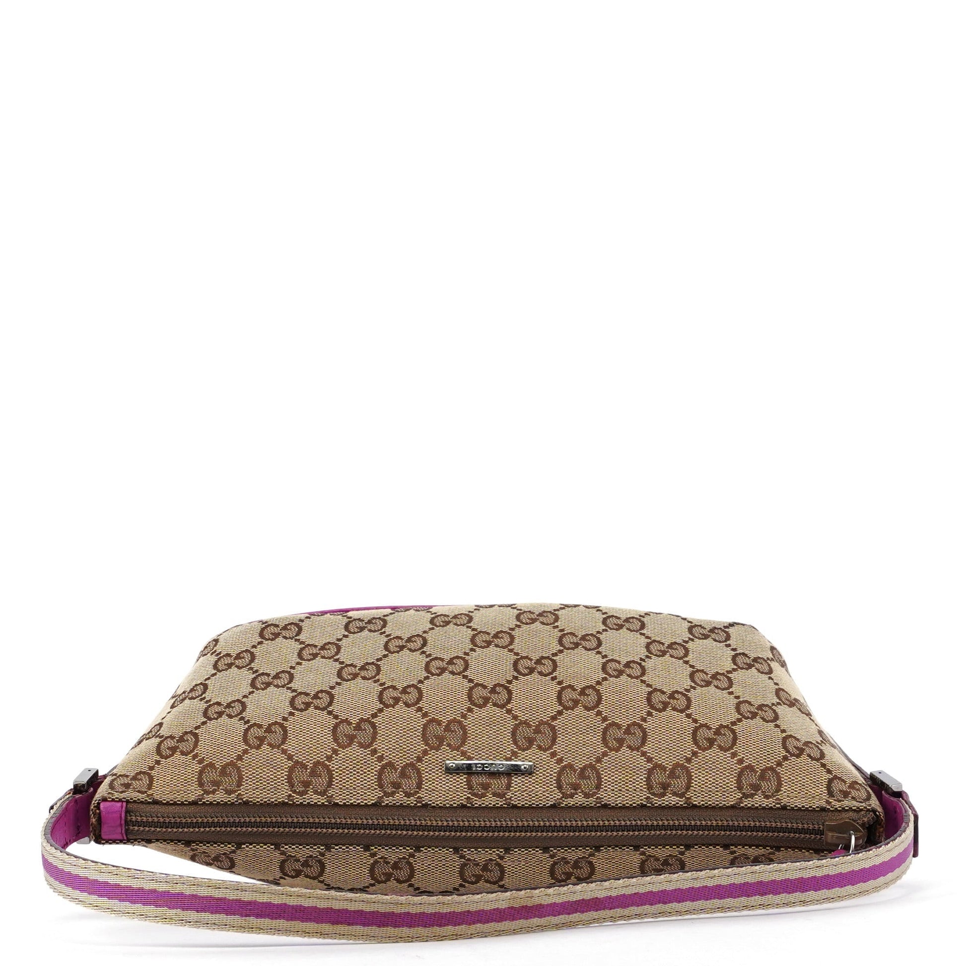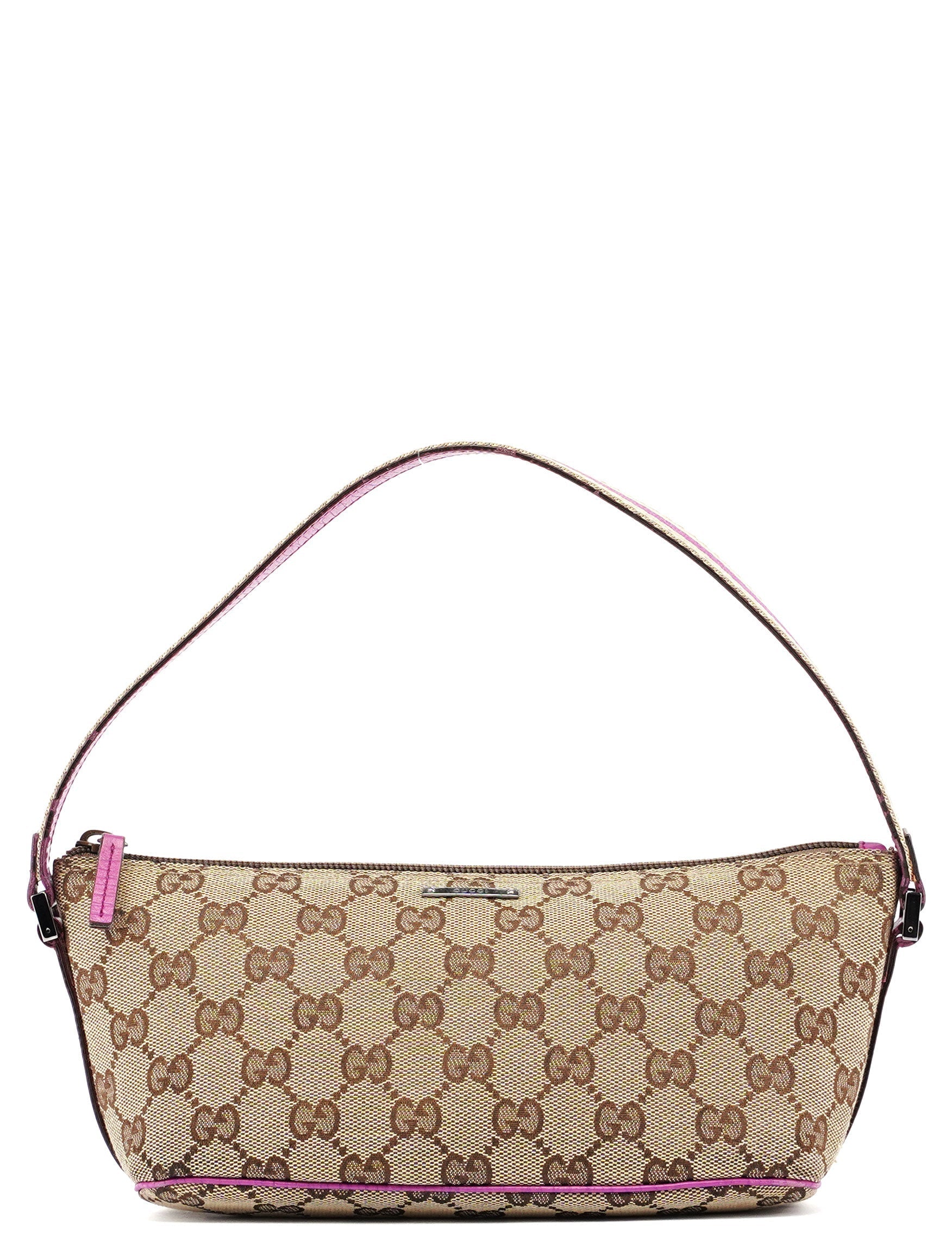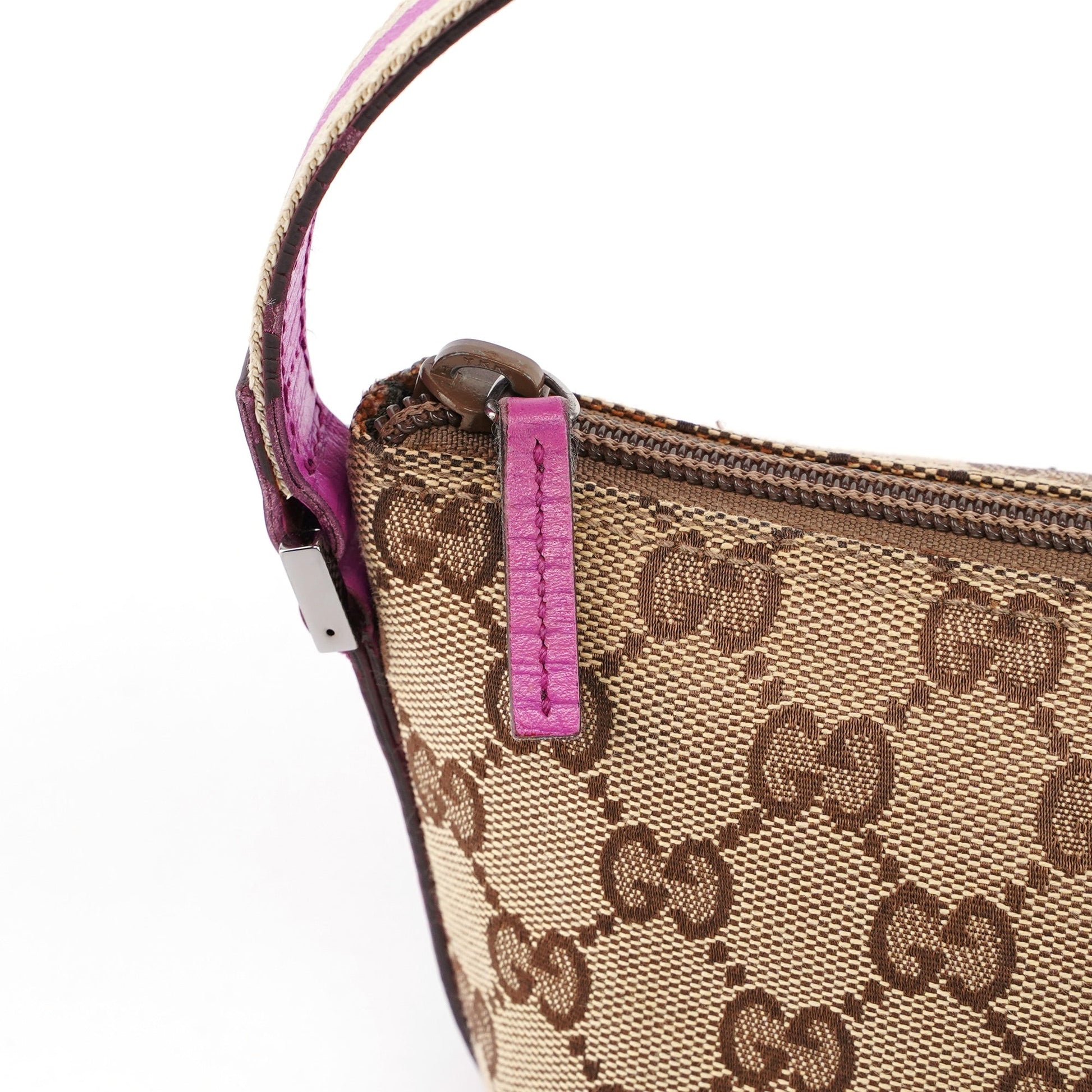 Explore timeless elegance with the Gucci GG Boat Pochette by Tom Ford, circa late 1990s. This exquisite piece combines beige GG canvas with pink leather trim and silver-tone hardware. Its secure zip closure and satin-lined interior offer luxury and practicality, while the subtle Gucci plaque adds a touch of heritage. A perfect blend of vintage charm and sophistication.